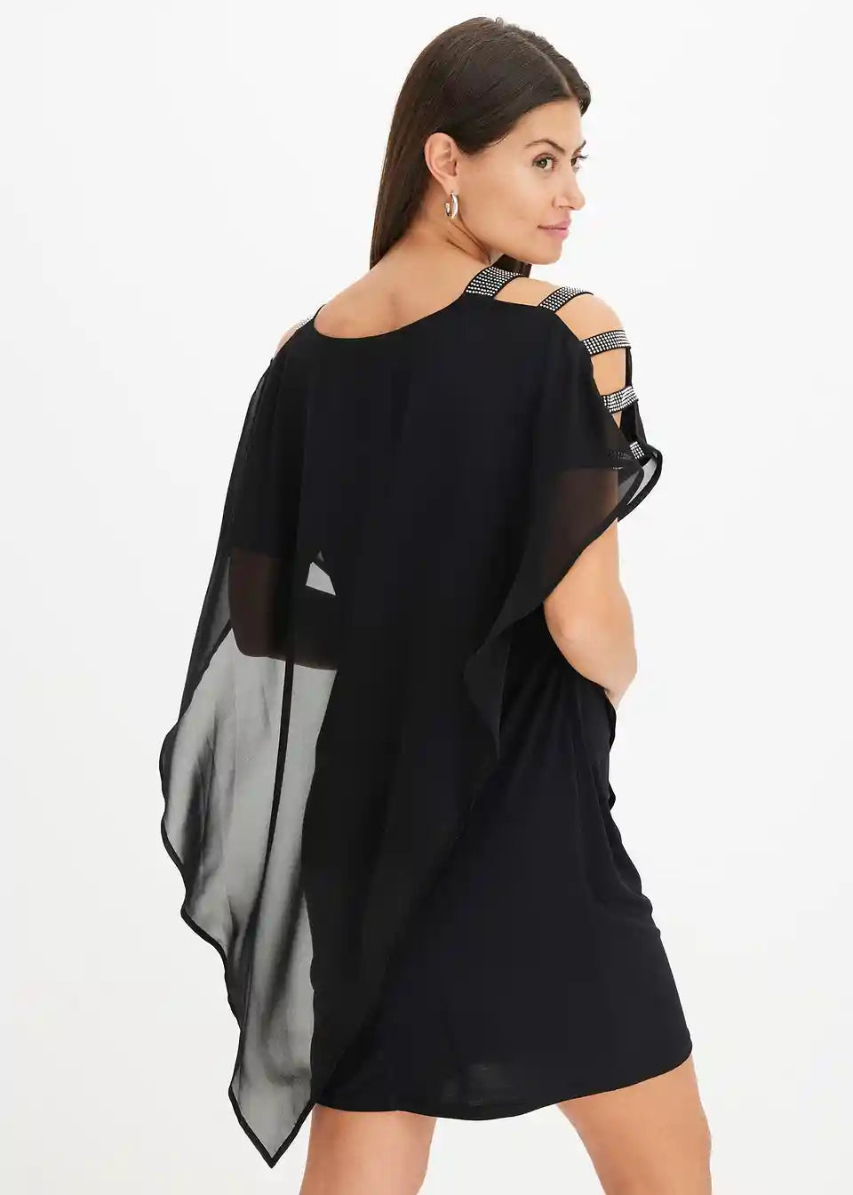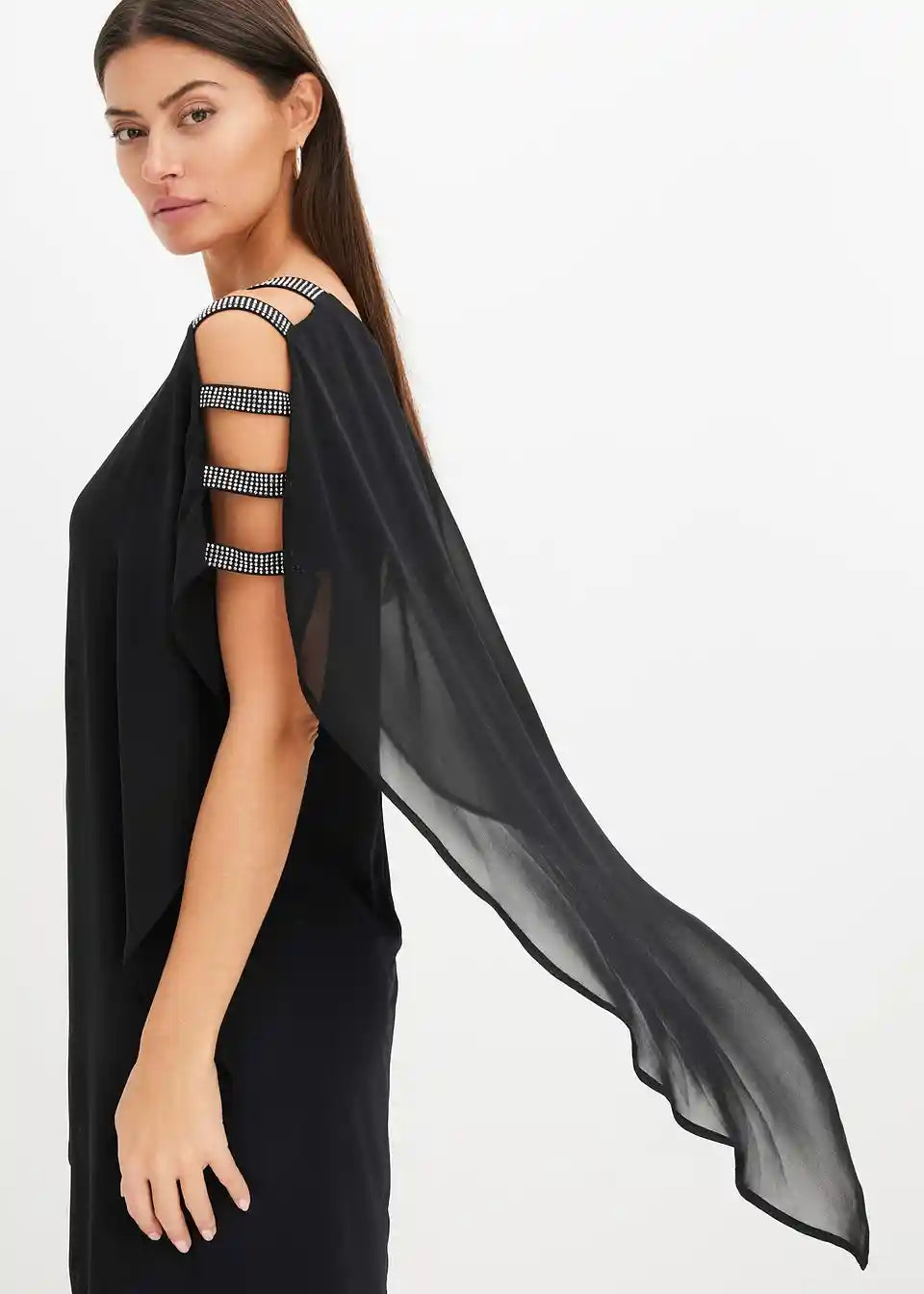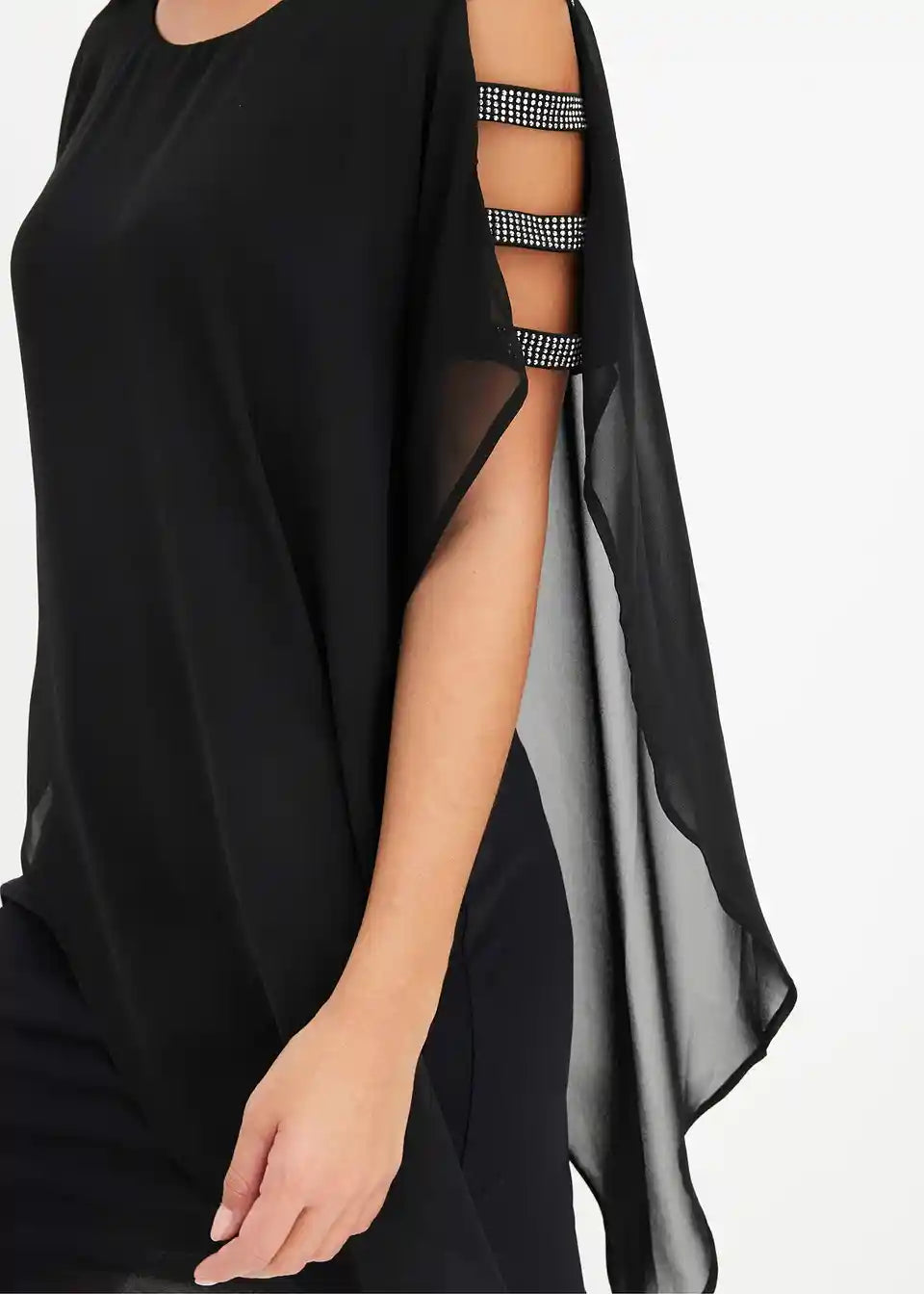 Kratka jersey haljina s laganim slojem finog šifona i izrezima na rukavima s ukrasima od svjetlucavog kamenja