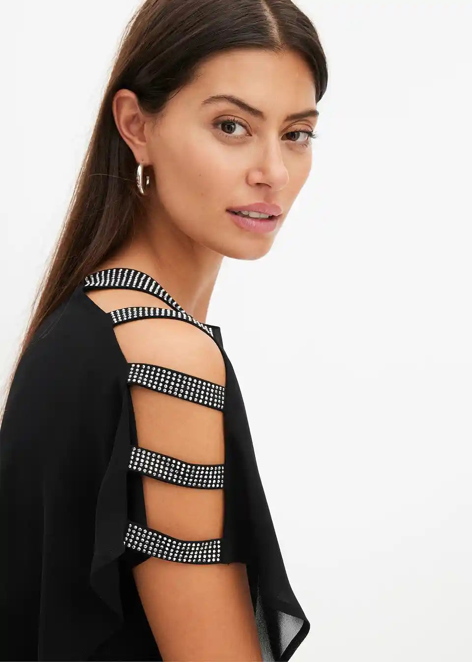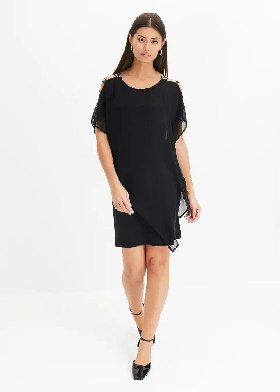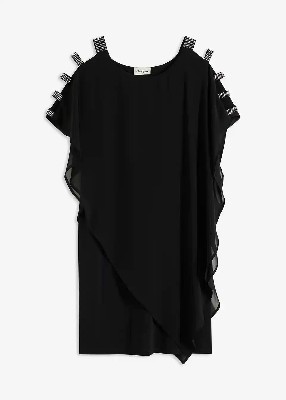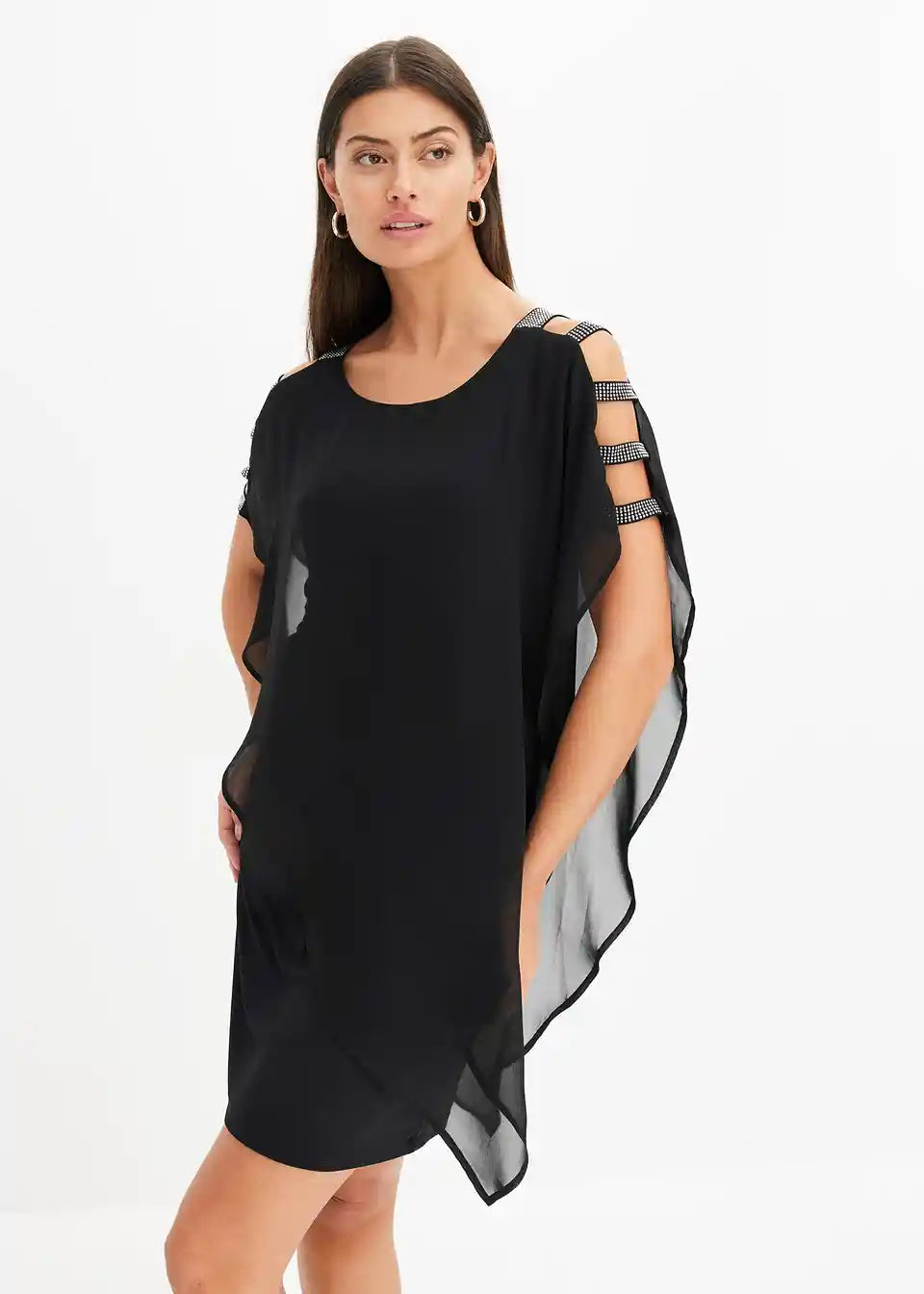 Kratka jersey haljina s laganim slojem finog šifona i izrezima na rukavima s ukrasima od svjetlucavog kamenja