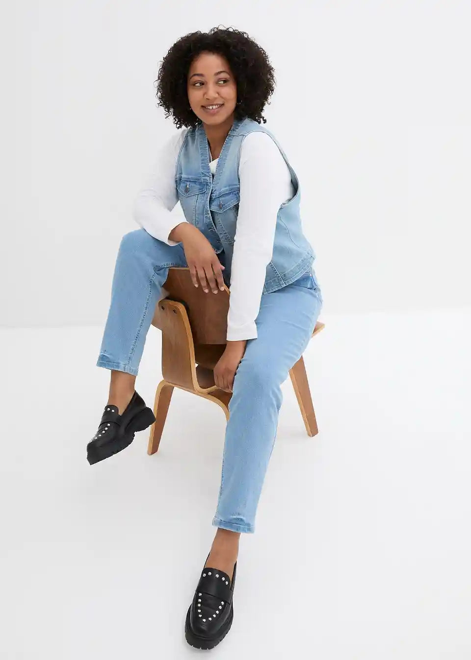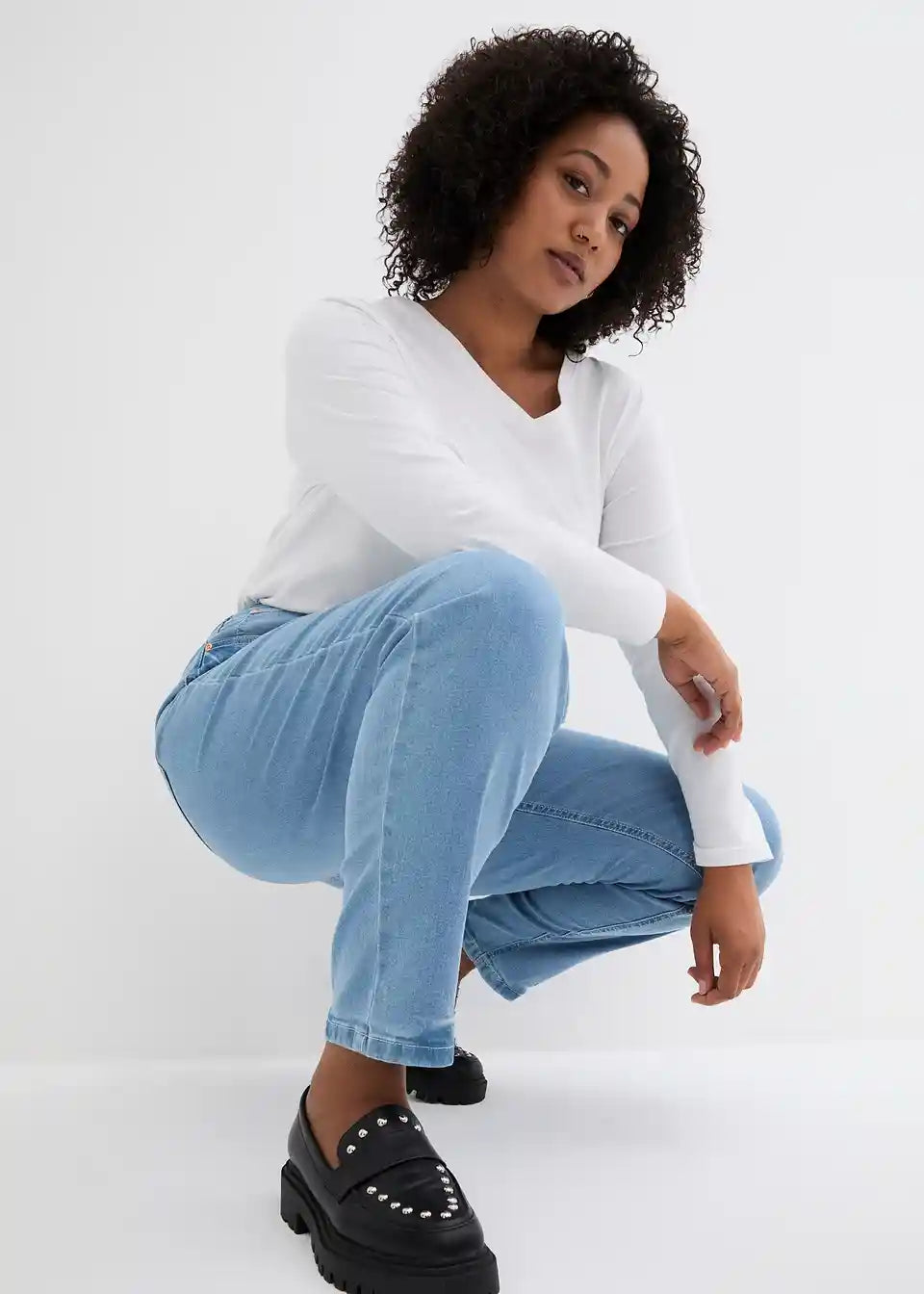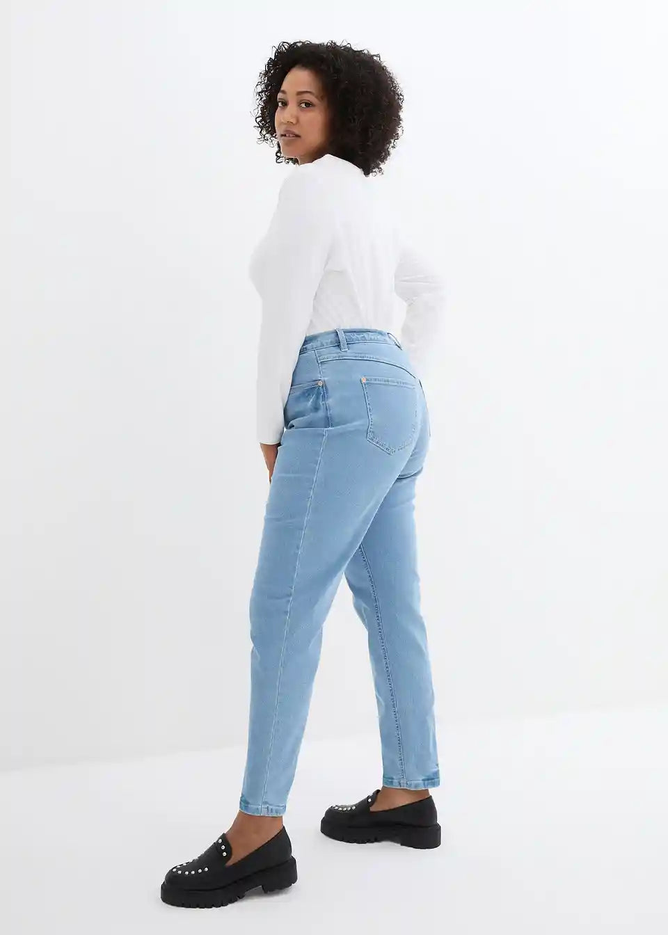 Mom traperice s vrlo visokim komotnim strukom od stretch materijala