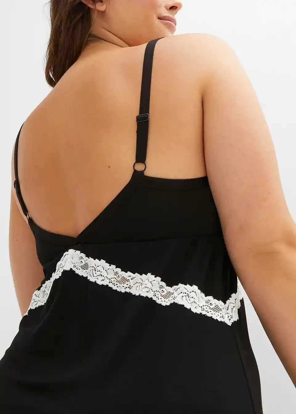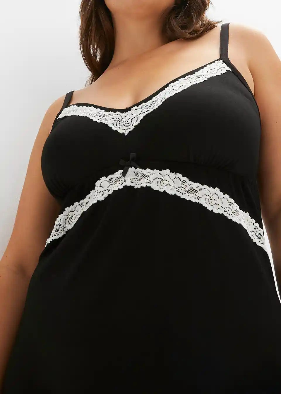 Ovo negliže brenda BODYFLIRT impresionira svojim senzualnim dizajnom. Pripijeni gornji dio i duboki izrez zavodljivo ističu dekolte. Od struka naniže, negliže s nježnim, podesivim tankim naramenicama lijepo pada i nježno prati žensku figuru. Mala satenska mašna između košarica i romantični čipkasti detalji na izrezu, donjem dijelu grudi i leđima dodatno naglašavaju prekrasan izgled.