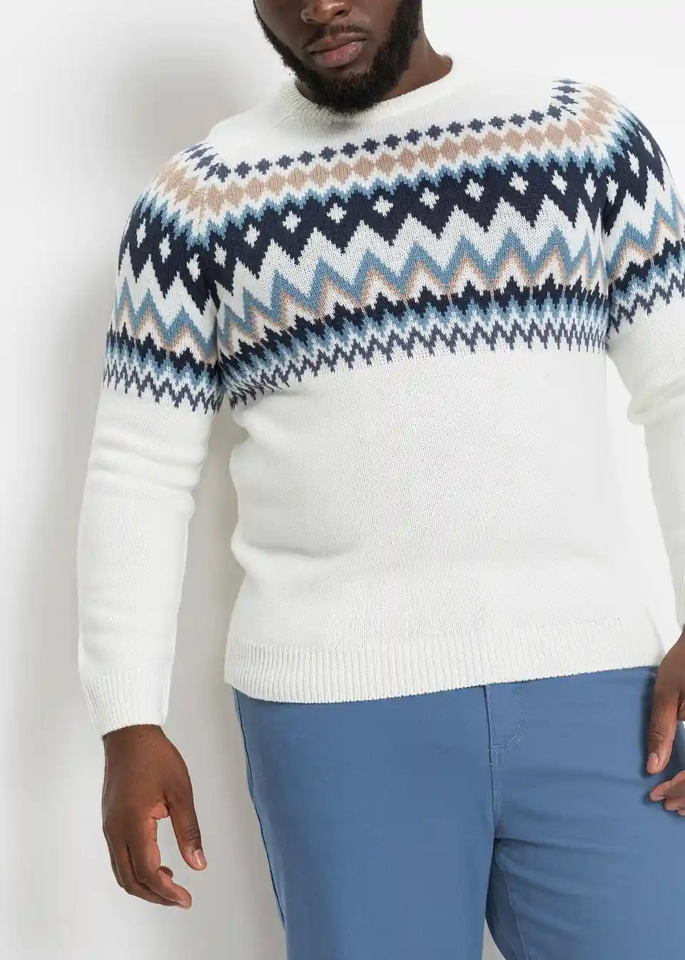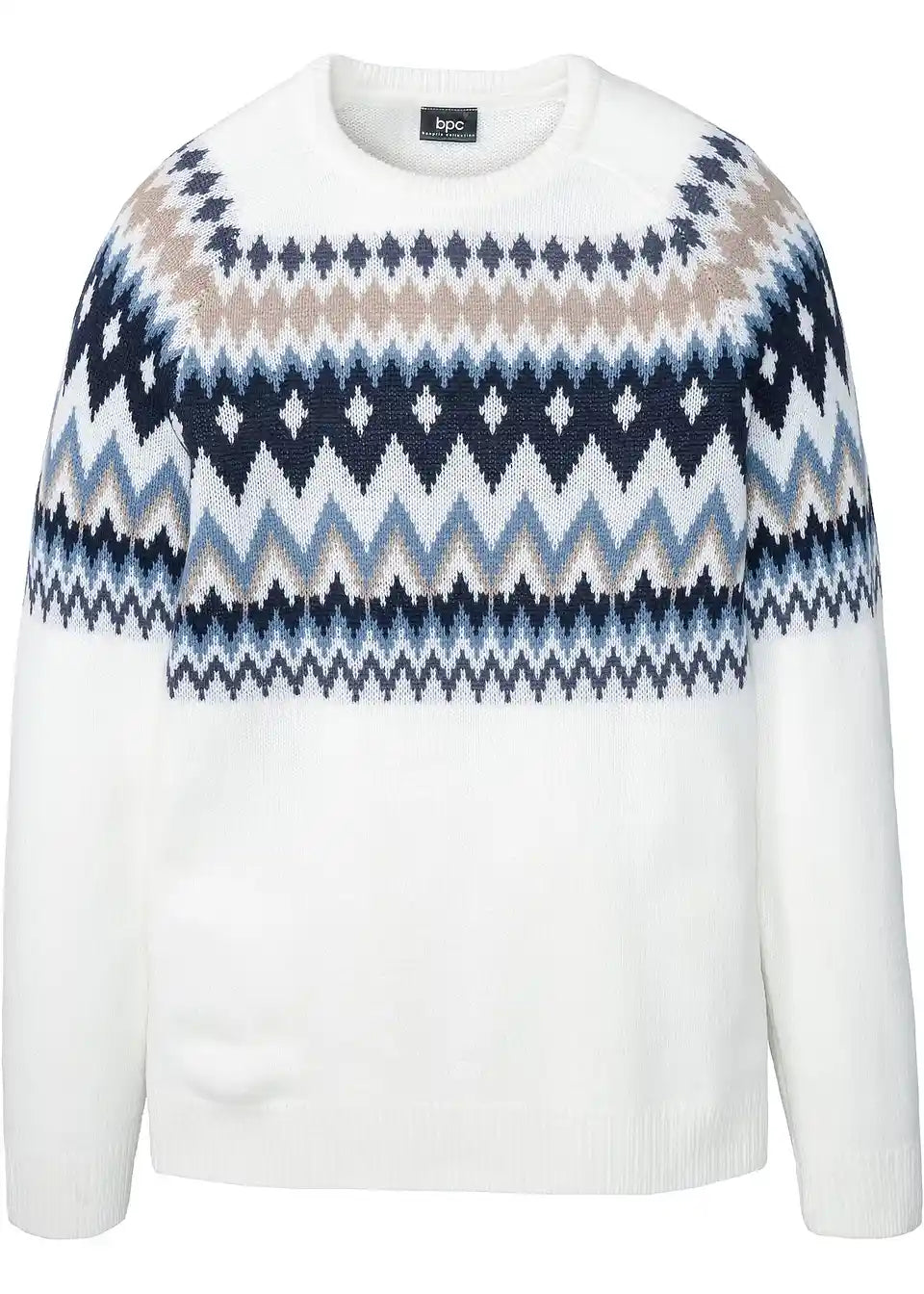 Prekrasan norveški pulover s okruglim izrezom i rebrastim manžetama, periv u perilici