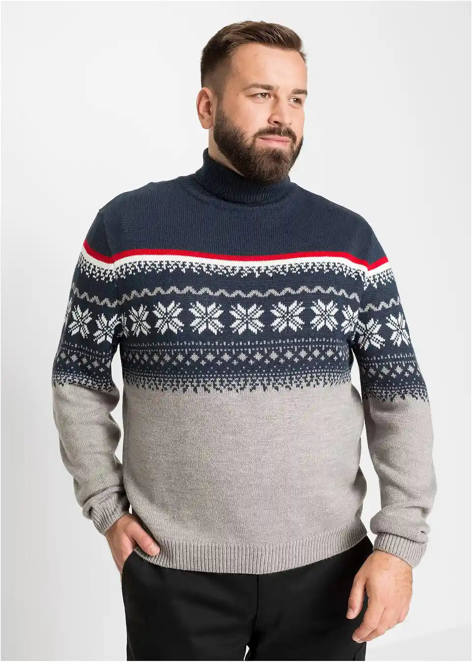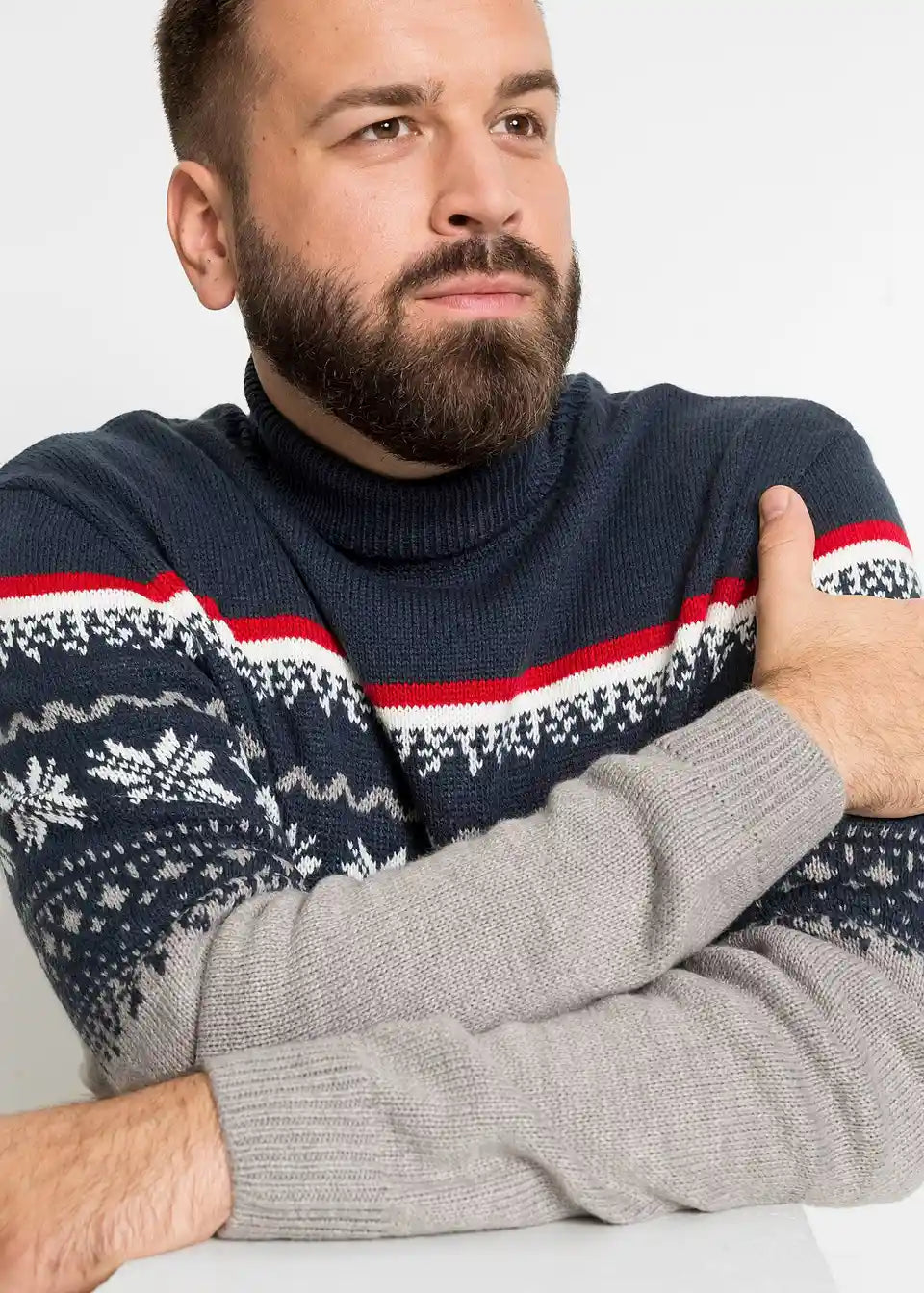 Moderan muški pulover s visokim ovratnikom i norveškim uzorkom