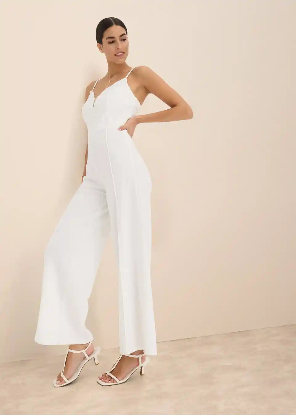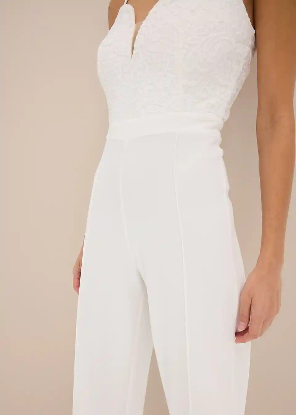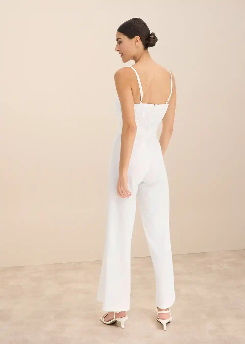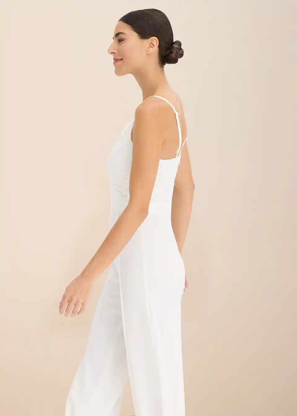 Moderan i ženstven: Overall s naramenicama od strukturiranog krepa u donjem dijelu i čipkom u gornjem dijelu