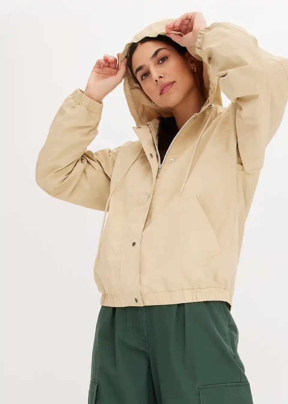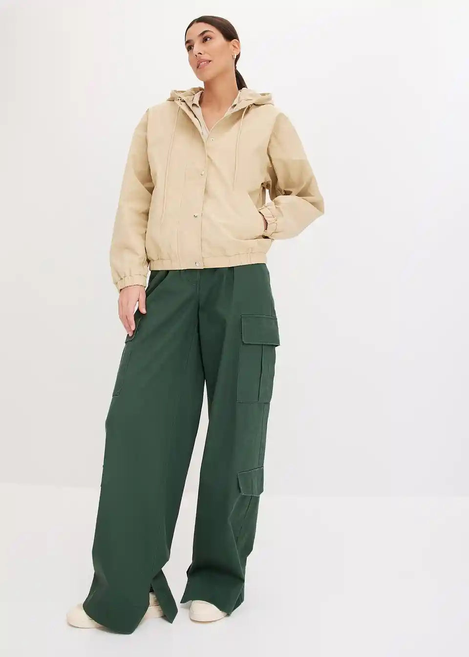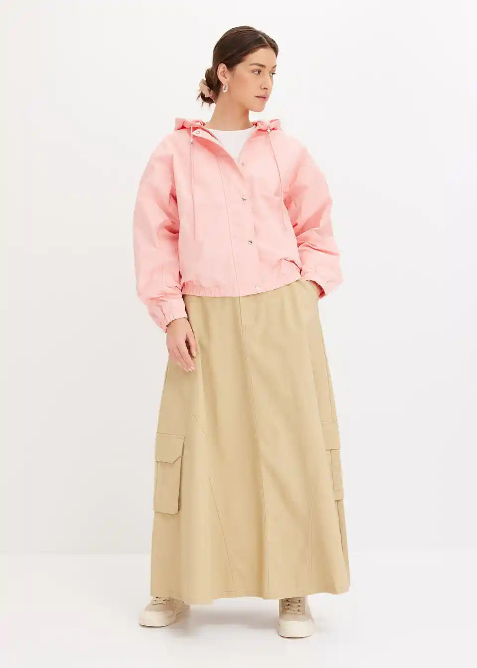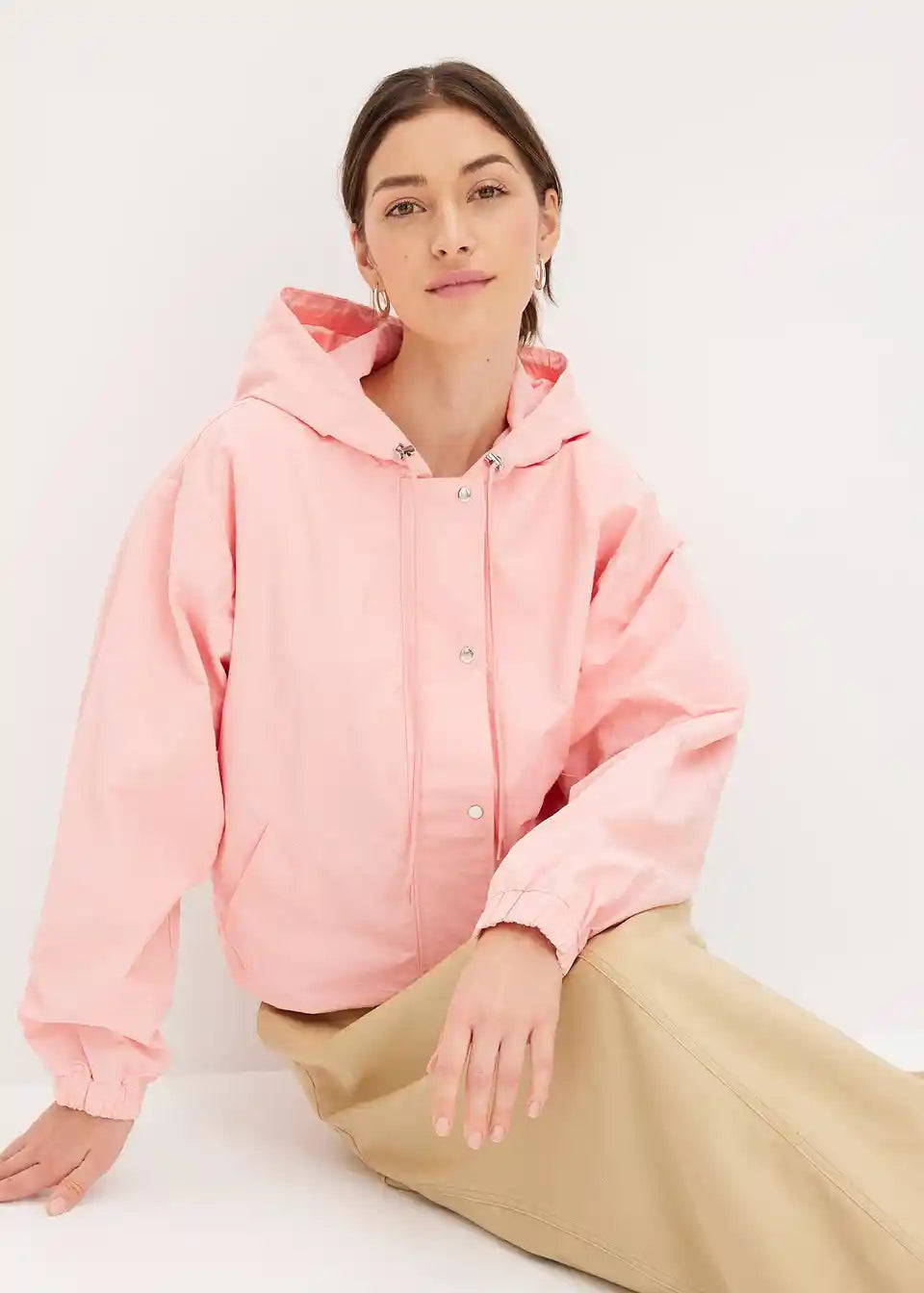 Oversize Blouson balonastog kroja s dva prednja kosa džepa i toplom kapuljačom s uzicom