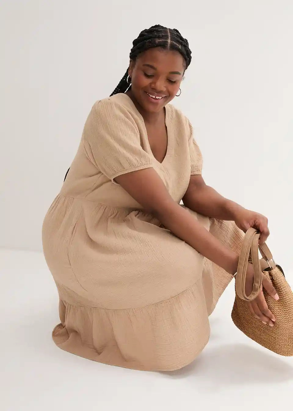 Značajka kroja:ističe dekolte, u dužini preko bokova, pruži komfor, olakšava kretanje zbog rastezljivog umetka, s V izrezom za vitak izgled, sakrije puniji trbuh, stražnjicu, šire bokove, nadlakticu i šira bedra