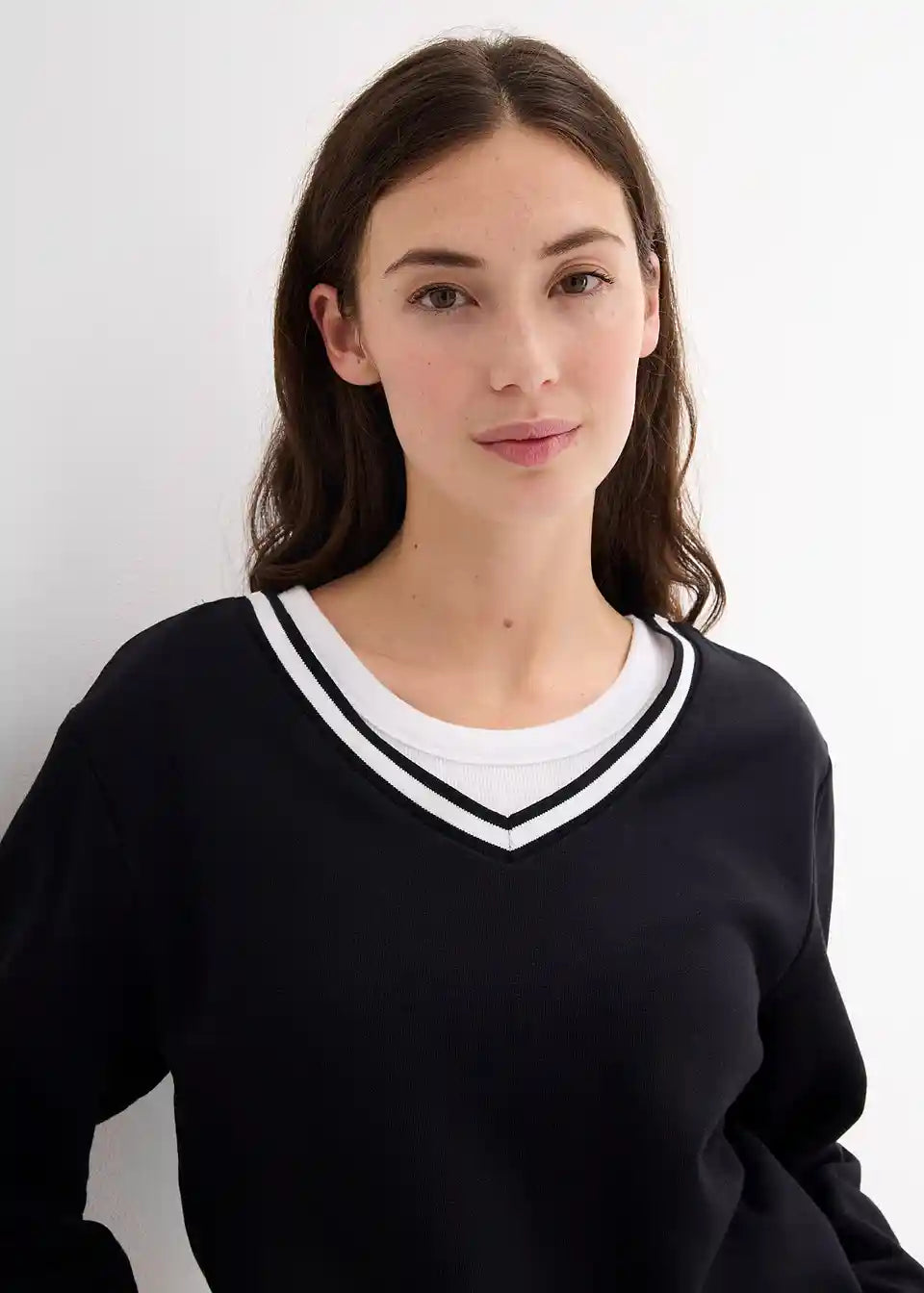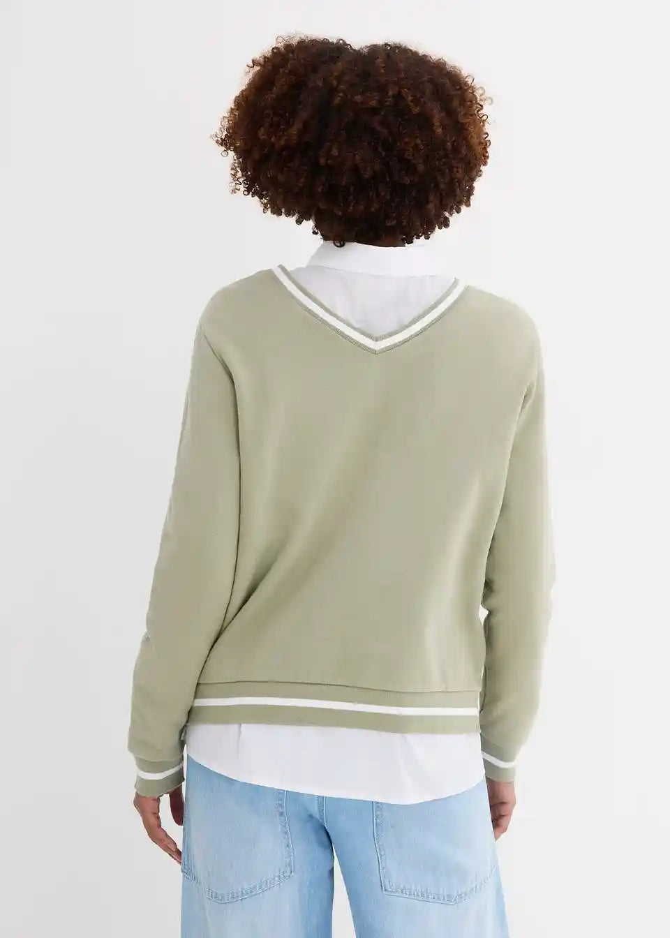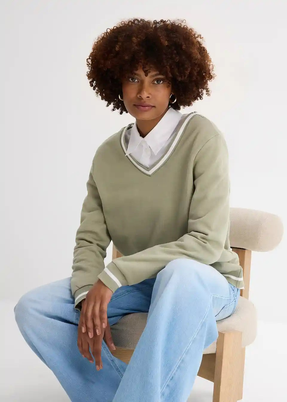 Ležeran Sweatshirt od čiste organski uzgojene pamuka s dubokim V-izrezom