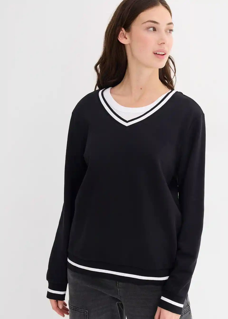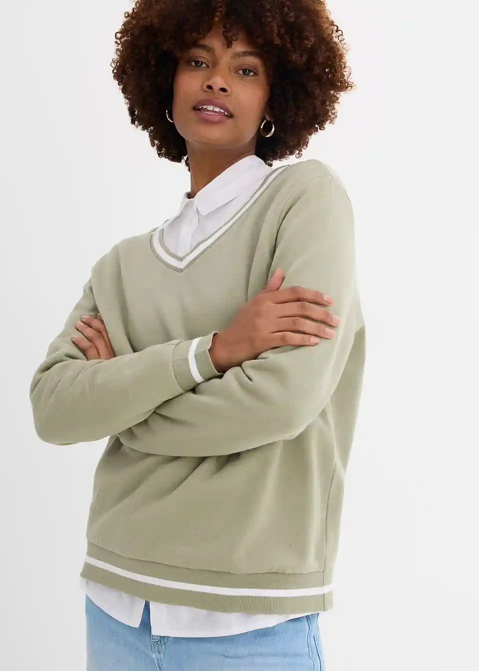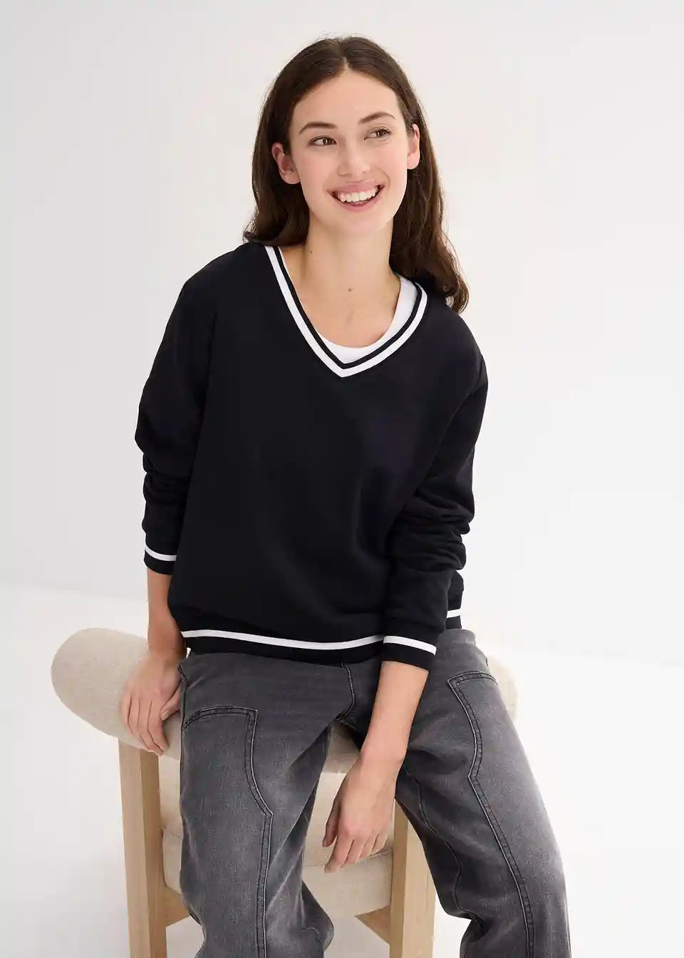 Ležeran Sweatshirt od čiste organski uzgojene pamuka s dubokim V-izrezom