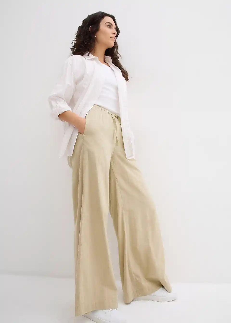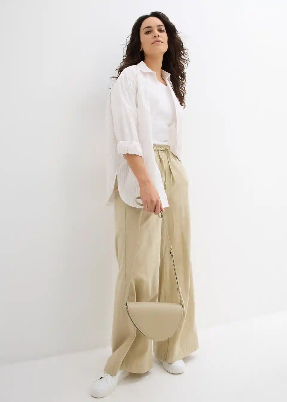 Moderne hlače od fine pamučne tkanine sa širokim nogavicama
