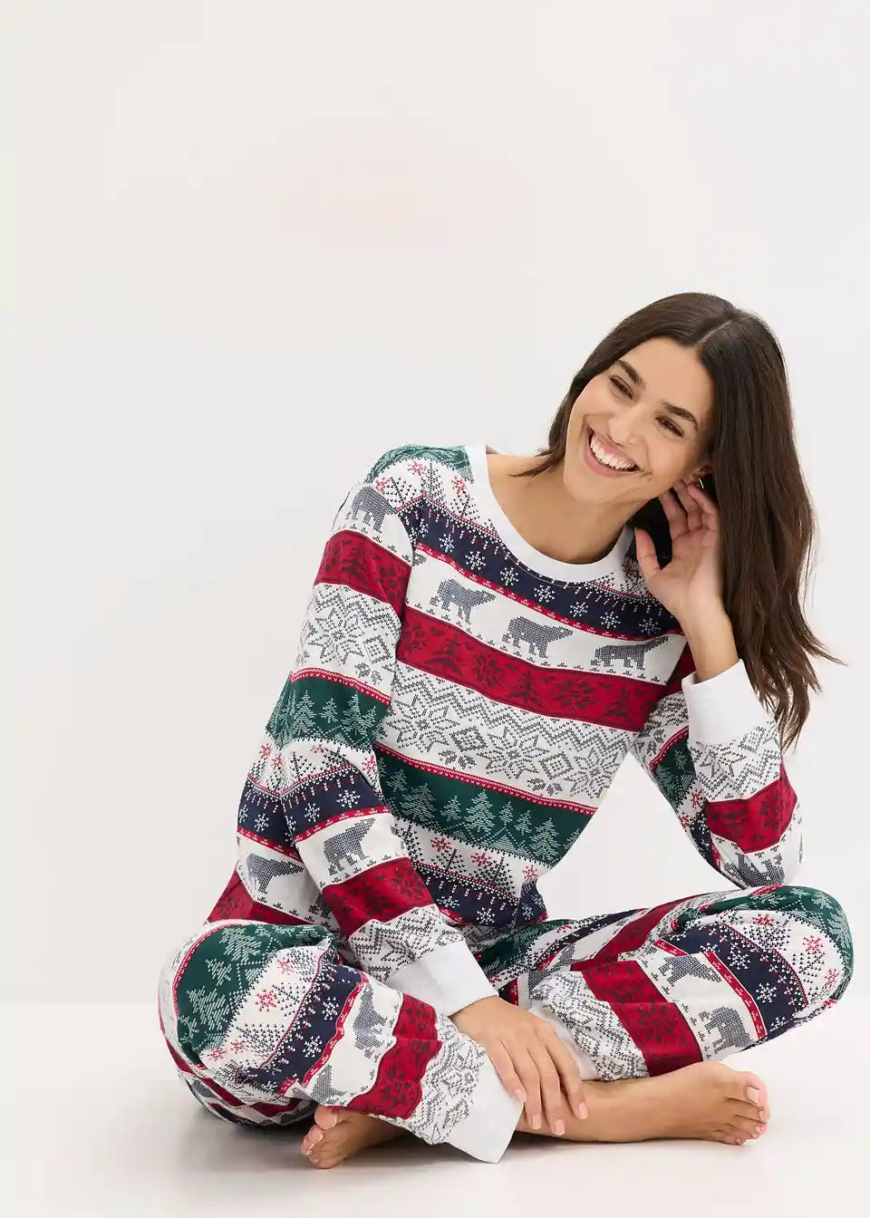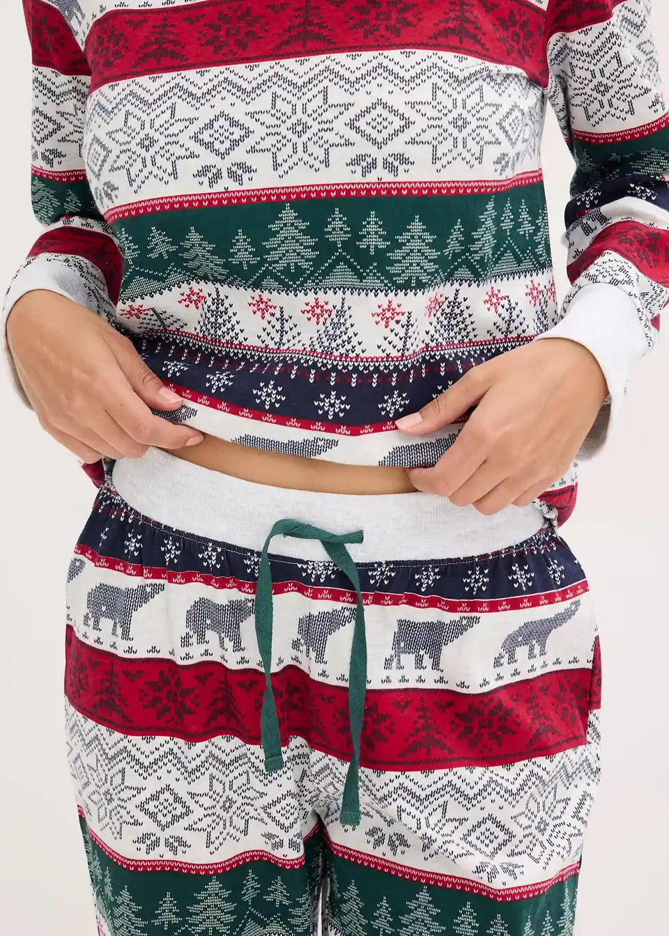 Udobna pidžama s norveškim uzorkom s majicom dugih rukava s visokim ovratnikom i ležerno krojenim hlačama s bočnim džepovima