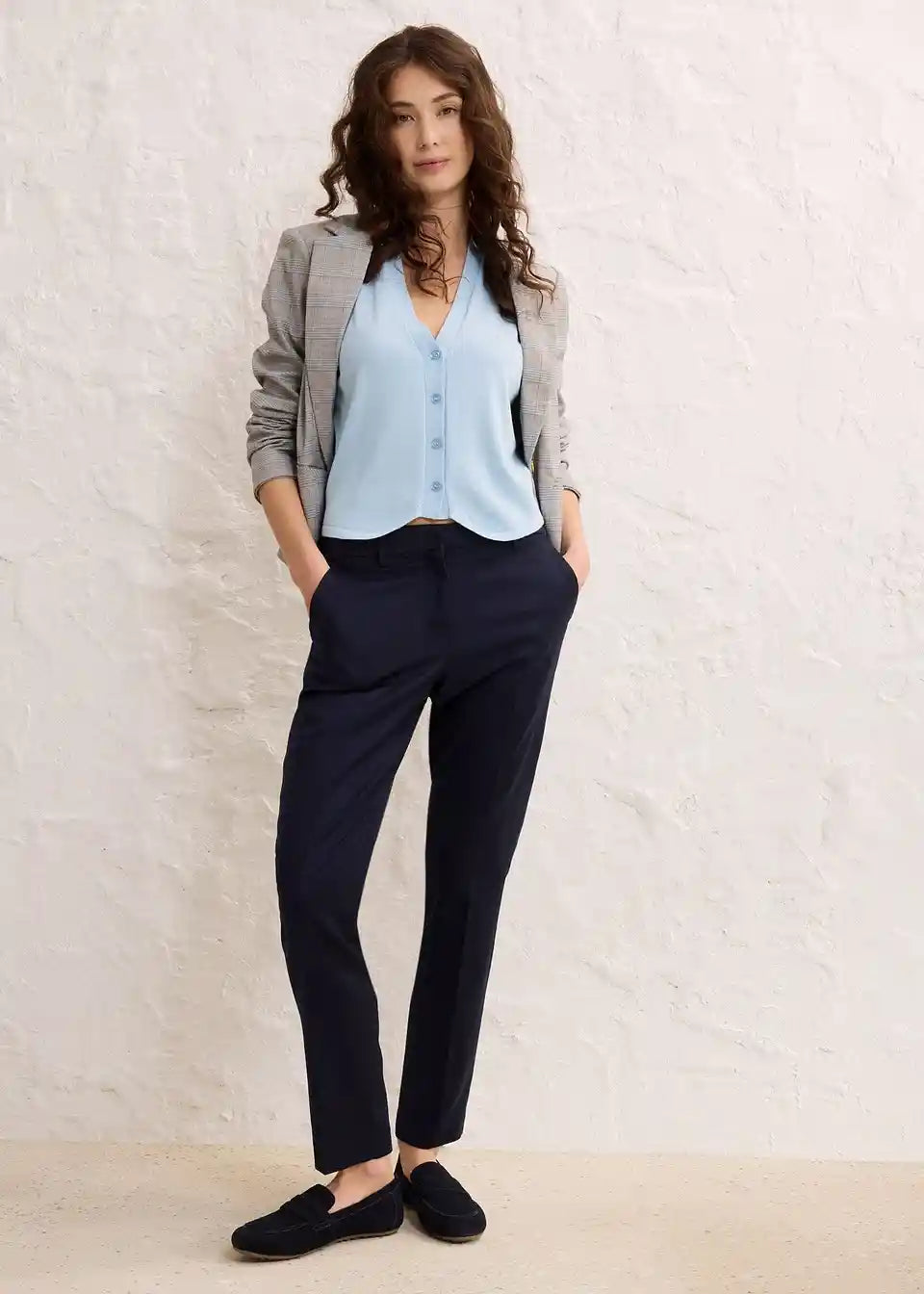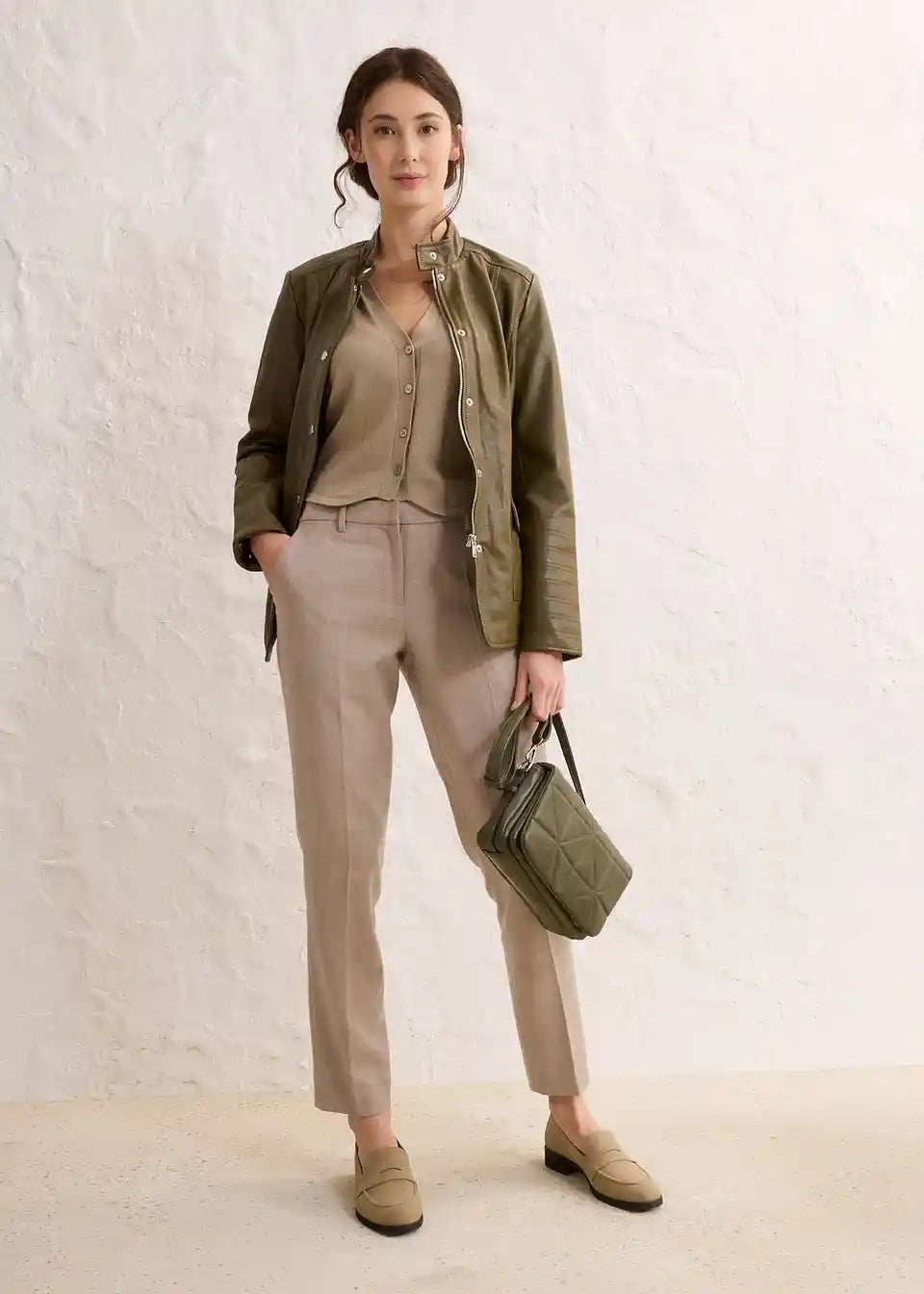 Fina, strukturirana tkanina sastoji se od glatke, luksuzne svile i tople vune kako bi ti pružila izvanredan osjećaj nošenja.