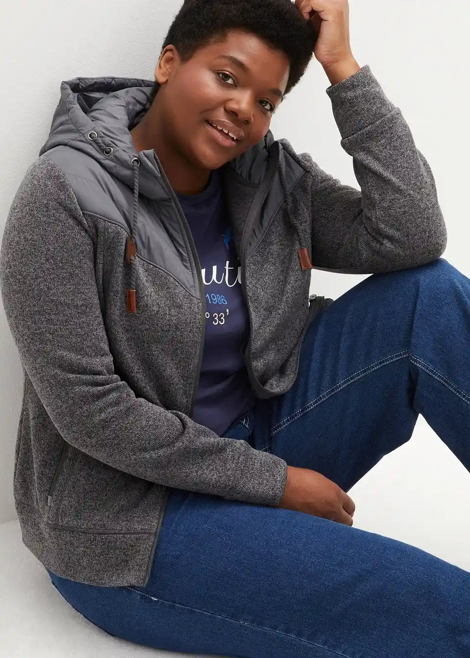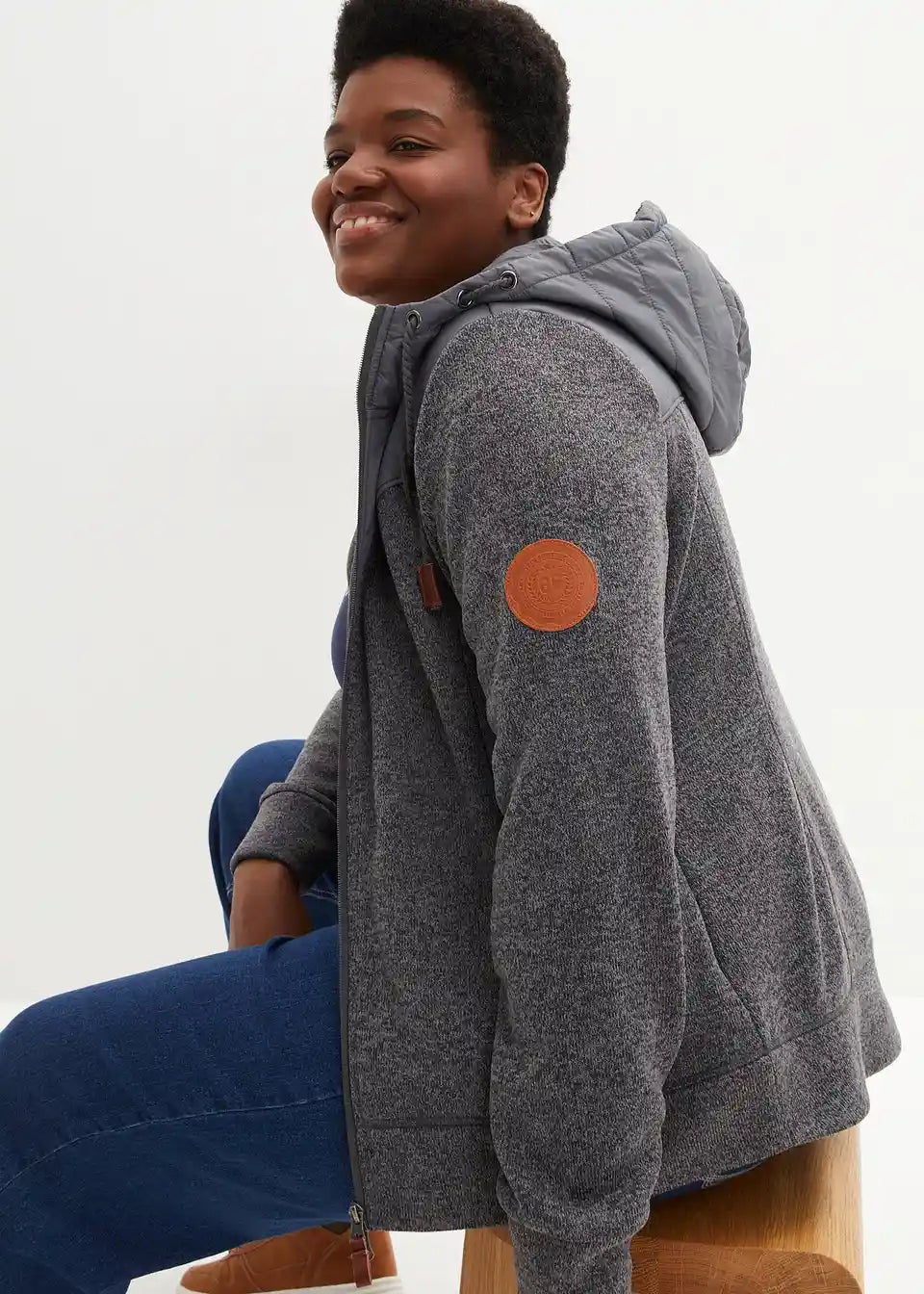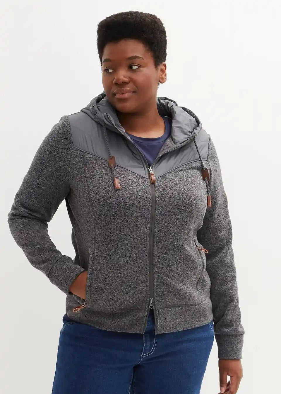 Udobna pletena flis jakna s kapuljačom i džepovima na zatvaranje