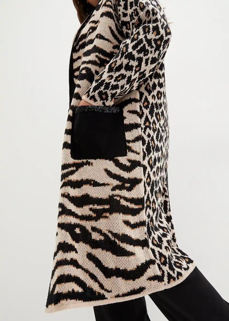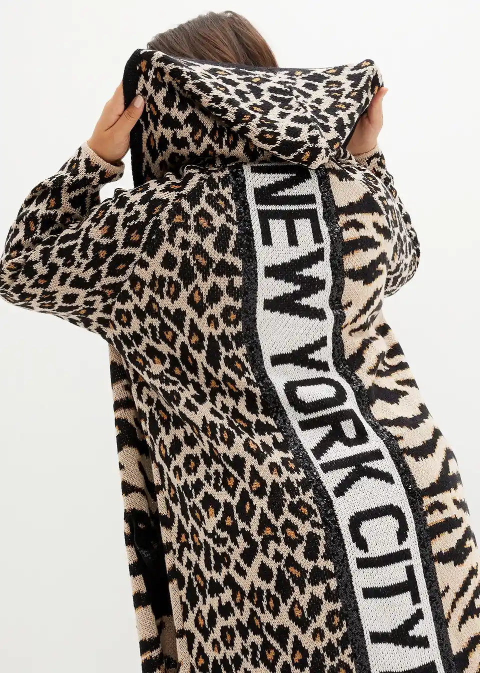 Moderan pleteni kaput s Pailletten i kapuljačom