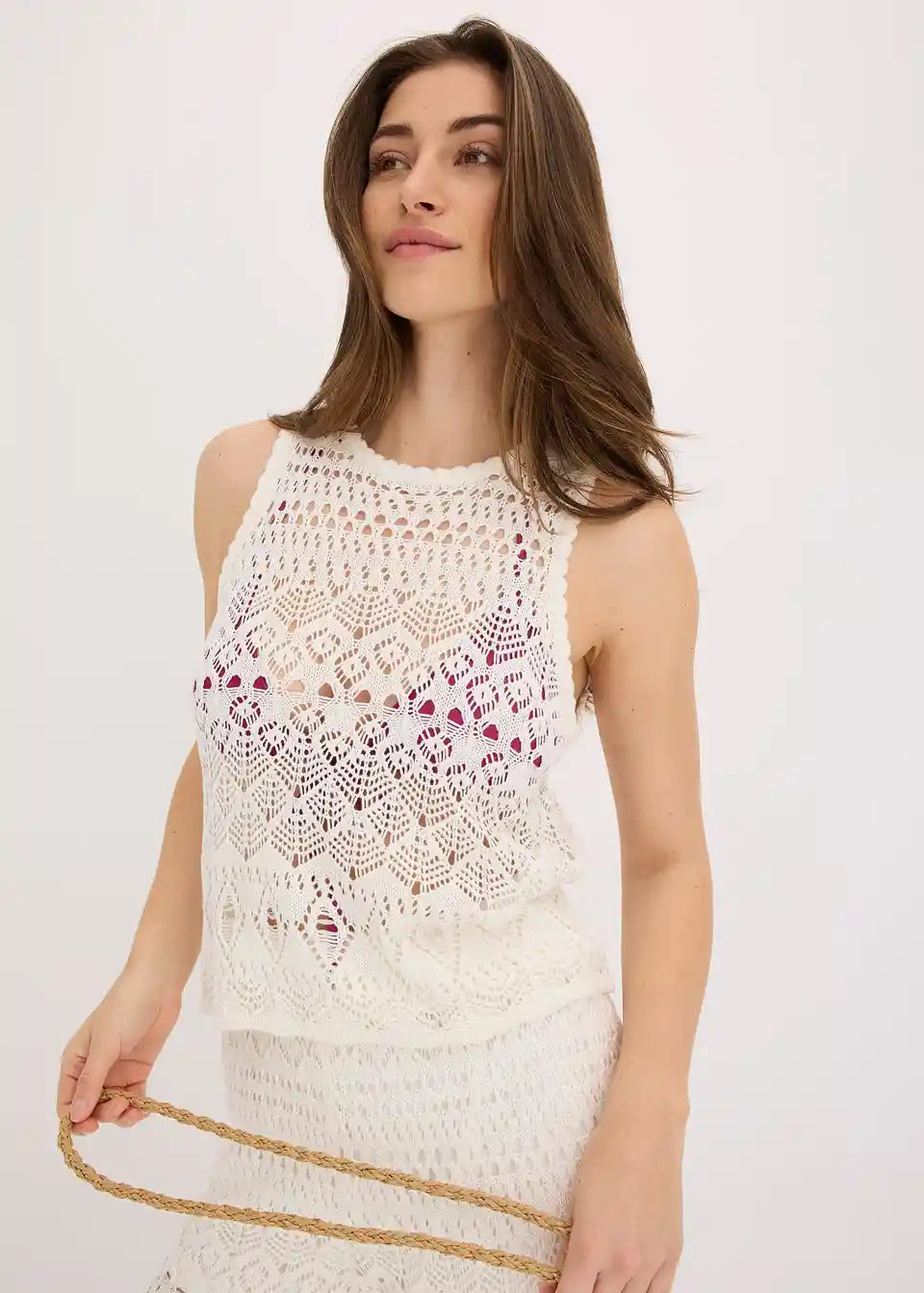 Lagani pleteni prsluk s rupičastim pletenim uzorkom