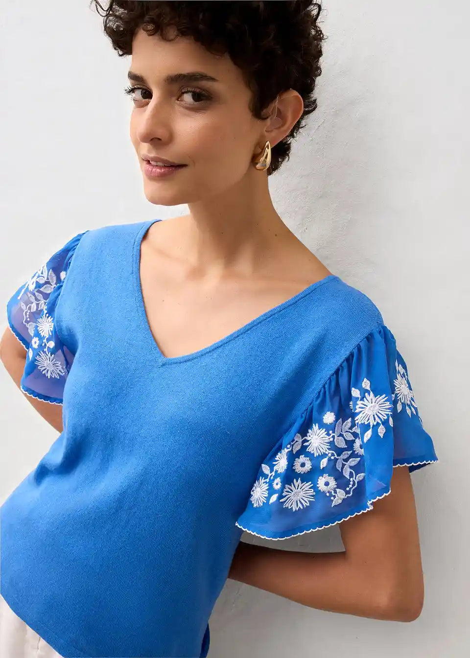 ljetni premium pleteni top s ukrasnim vezom na rukavima