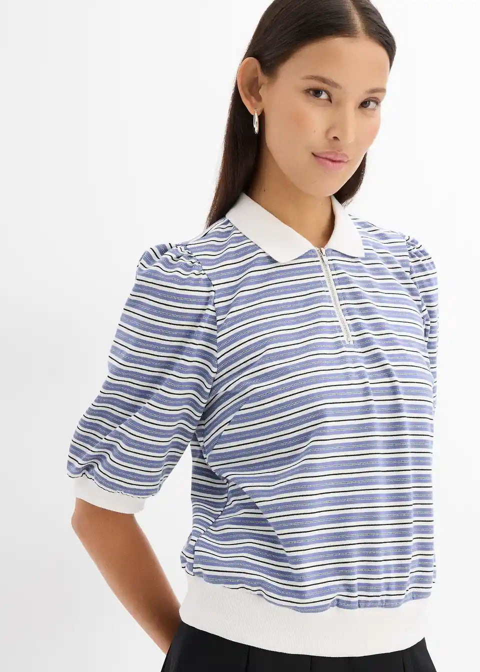Moderna polokošulja s patentnim zatvaračem i kratkim rukavima, prugasta