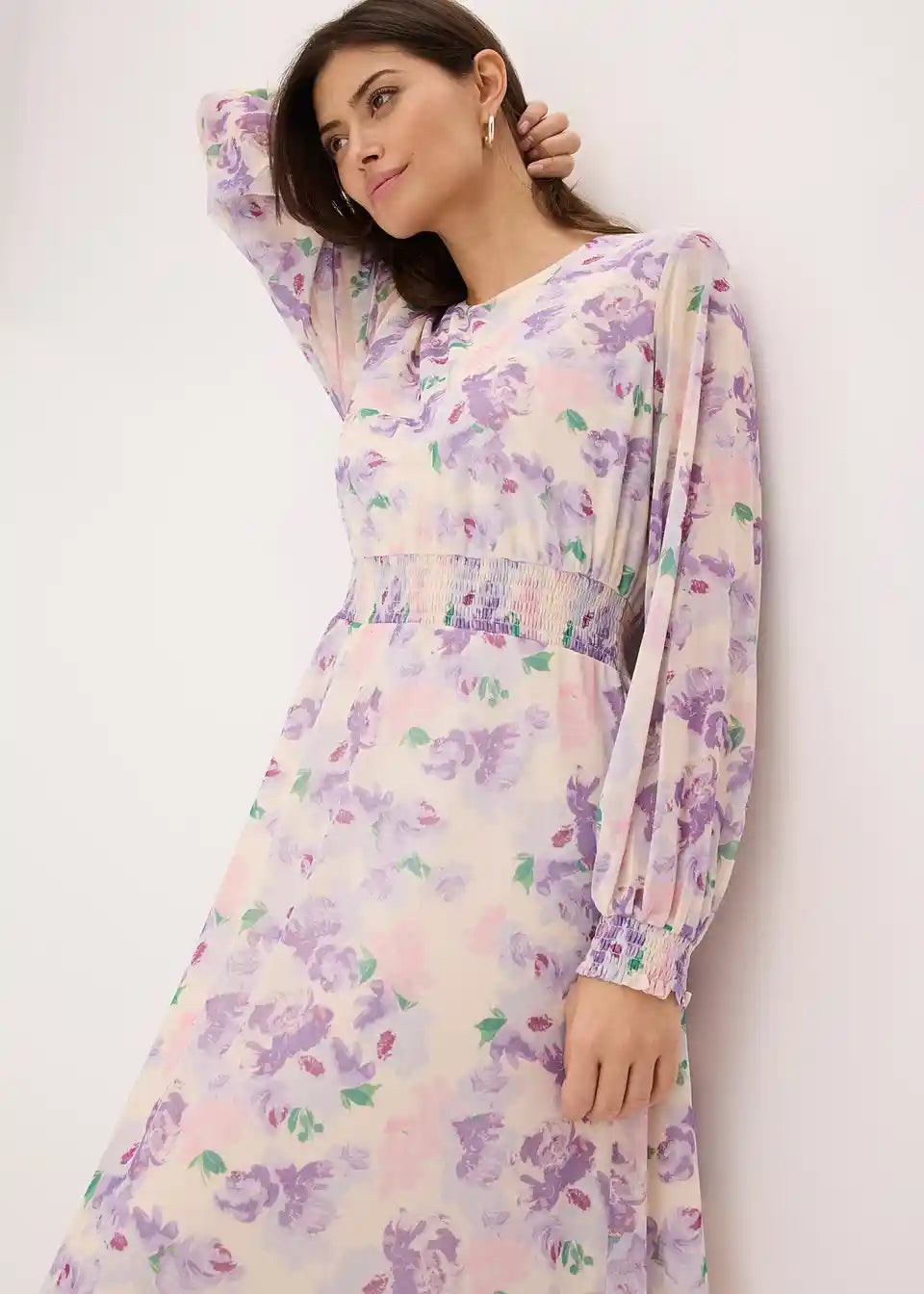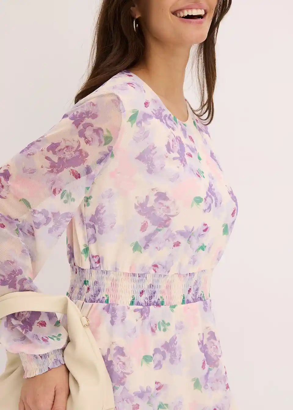 Ljetna haljina sa smock detaljem u struku i na rukavima
