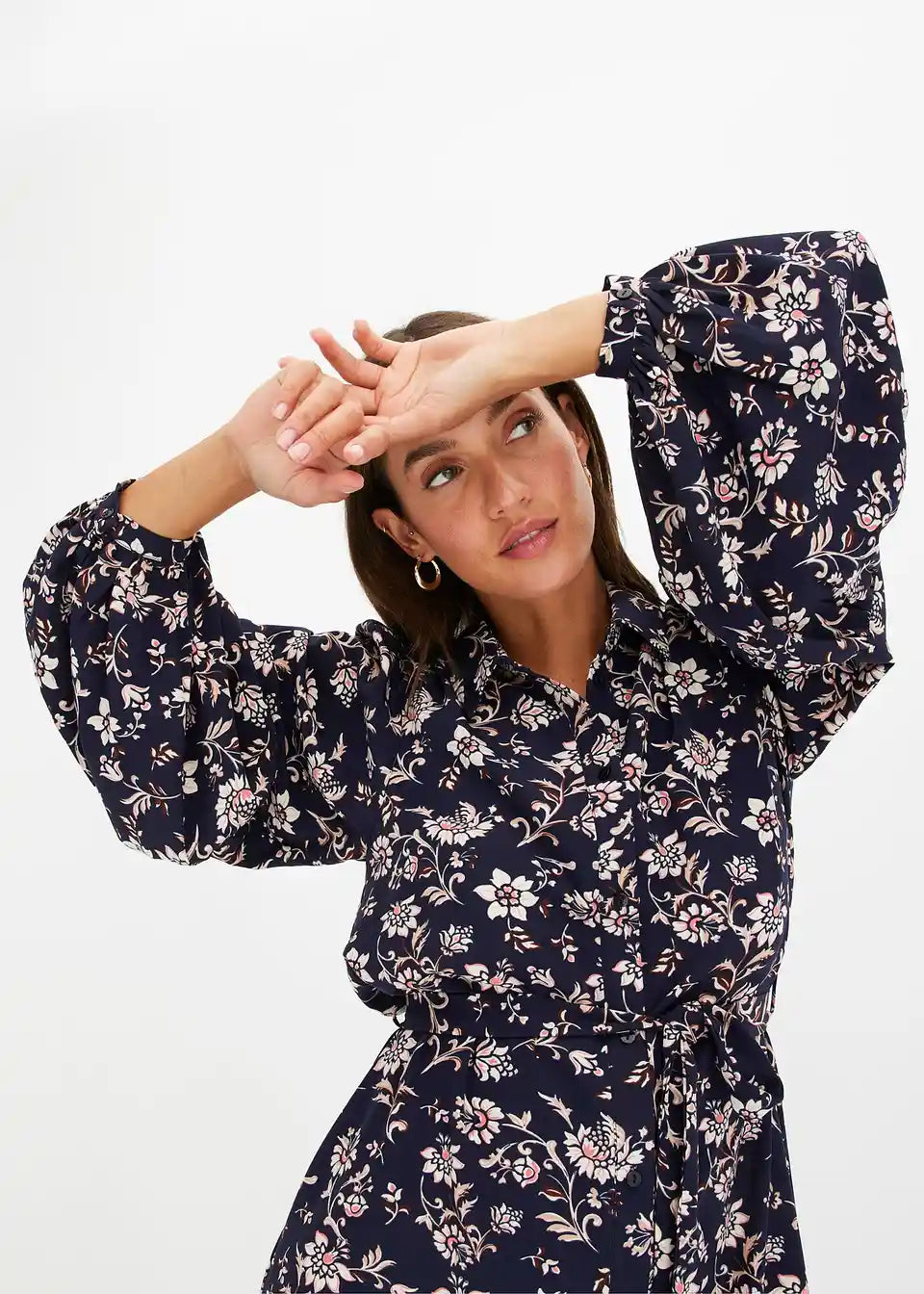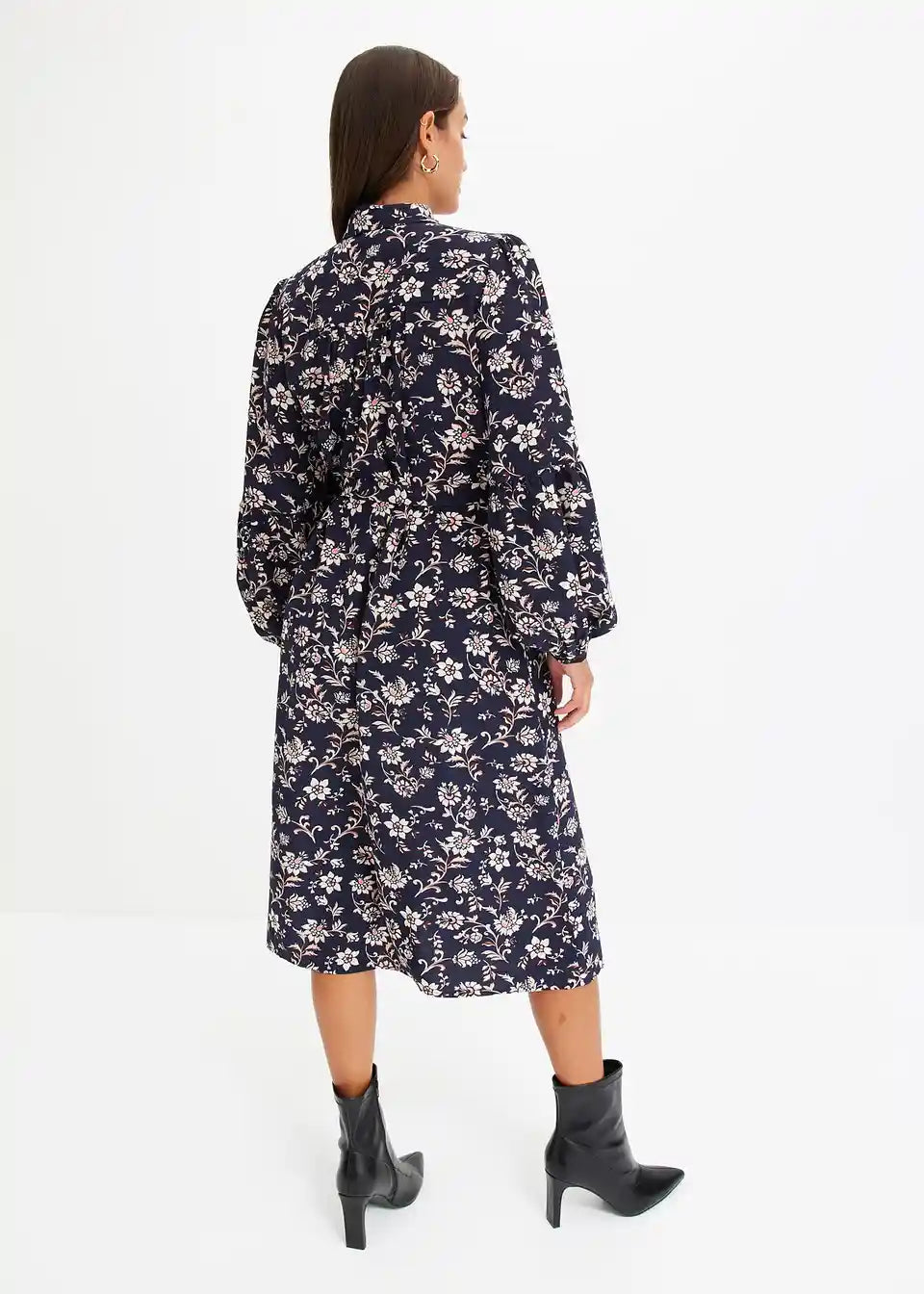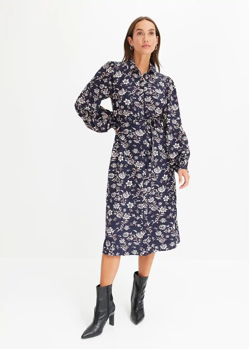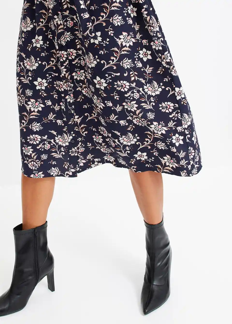 cvjetno printana midi haljina s prednjim kopčanjem na gumbe.