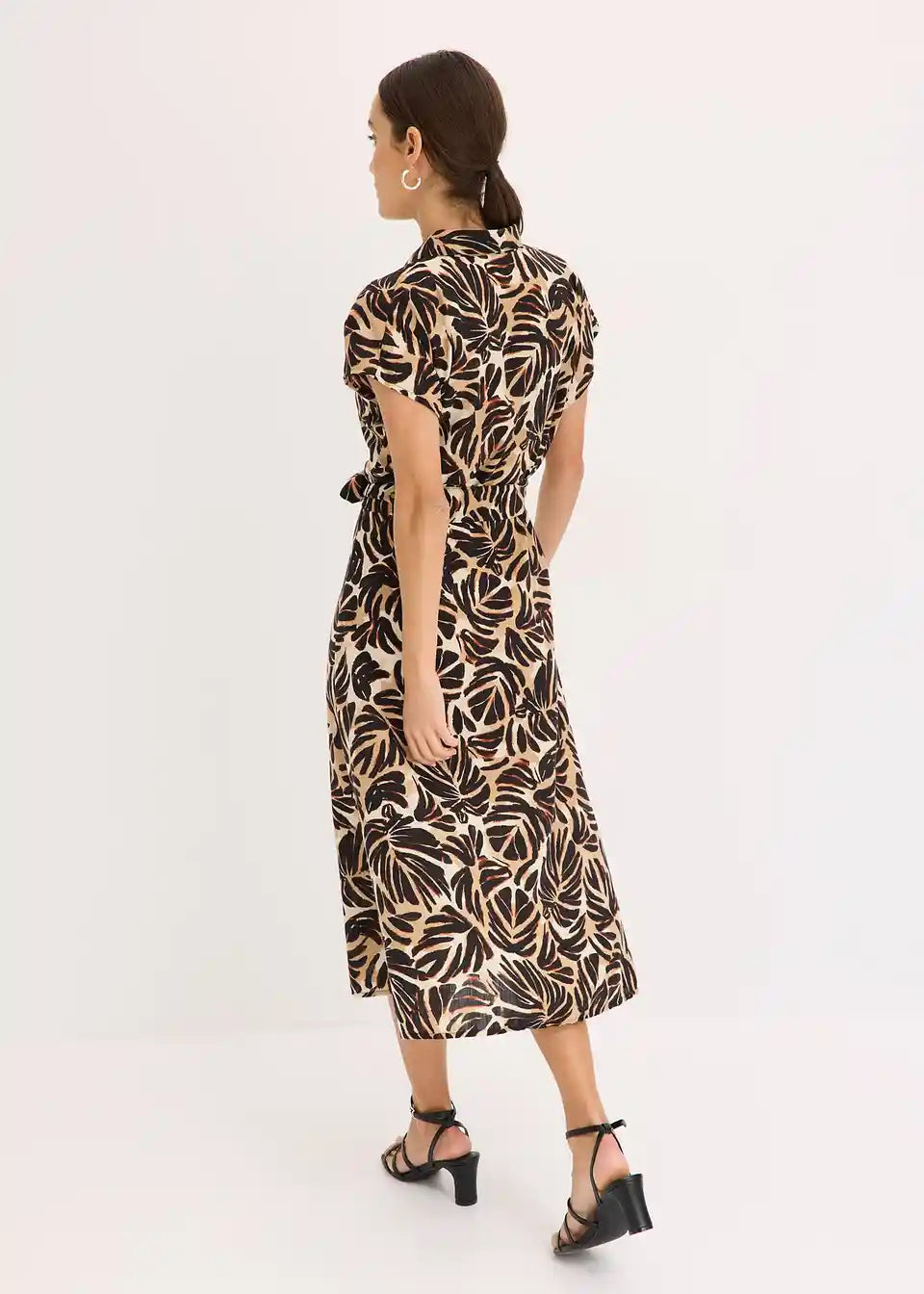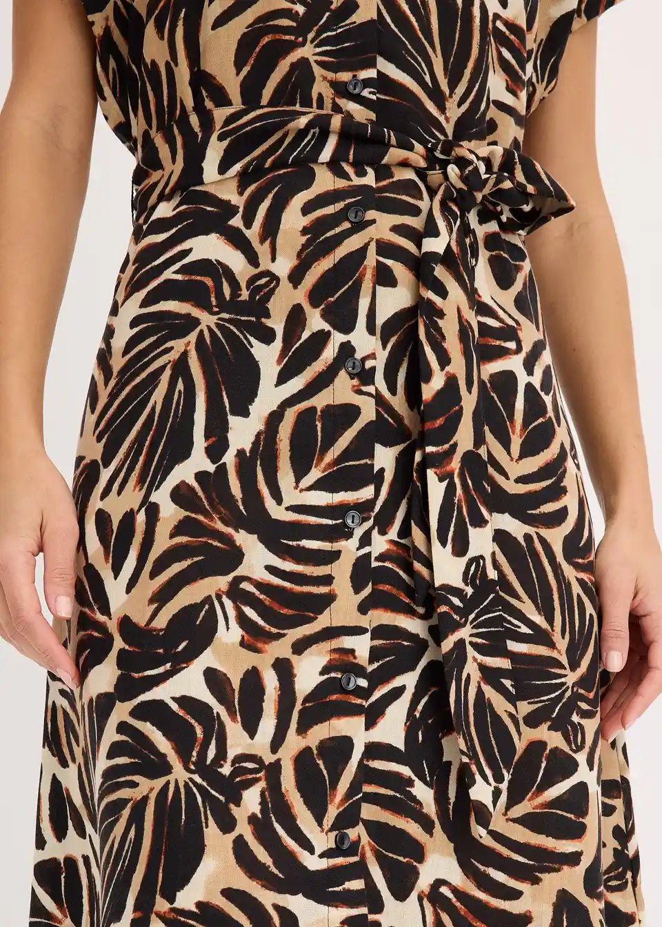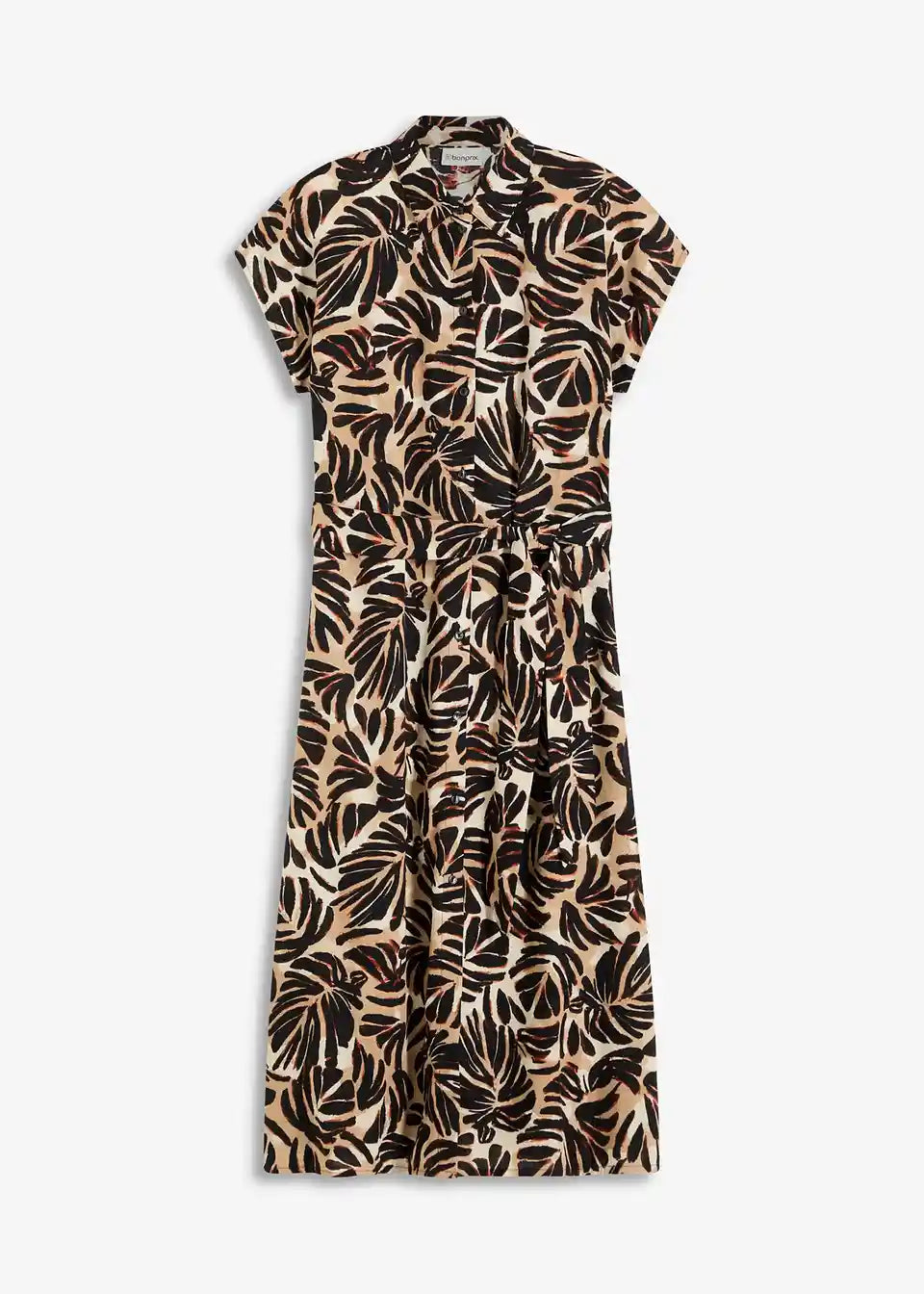 printana midihaljina s gumbima sprijeda i vezicom u struku