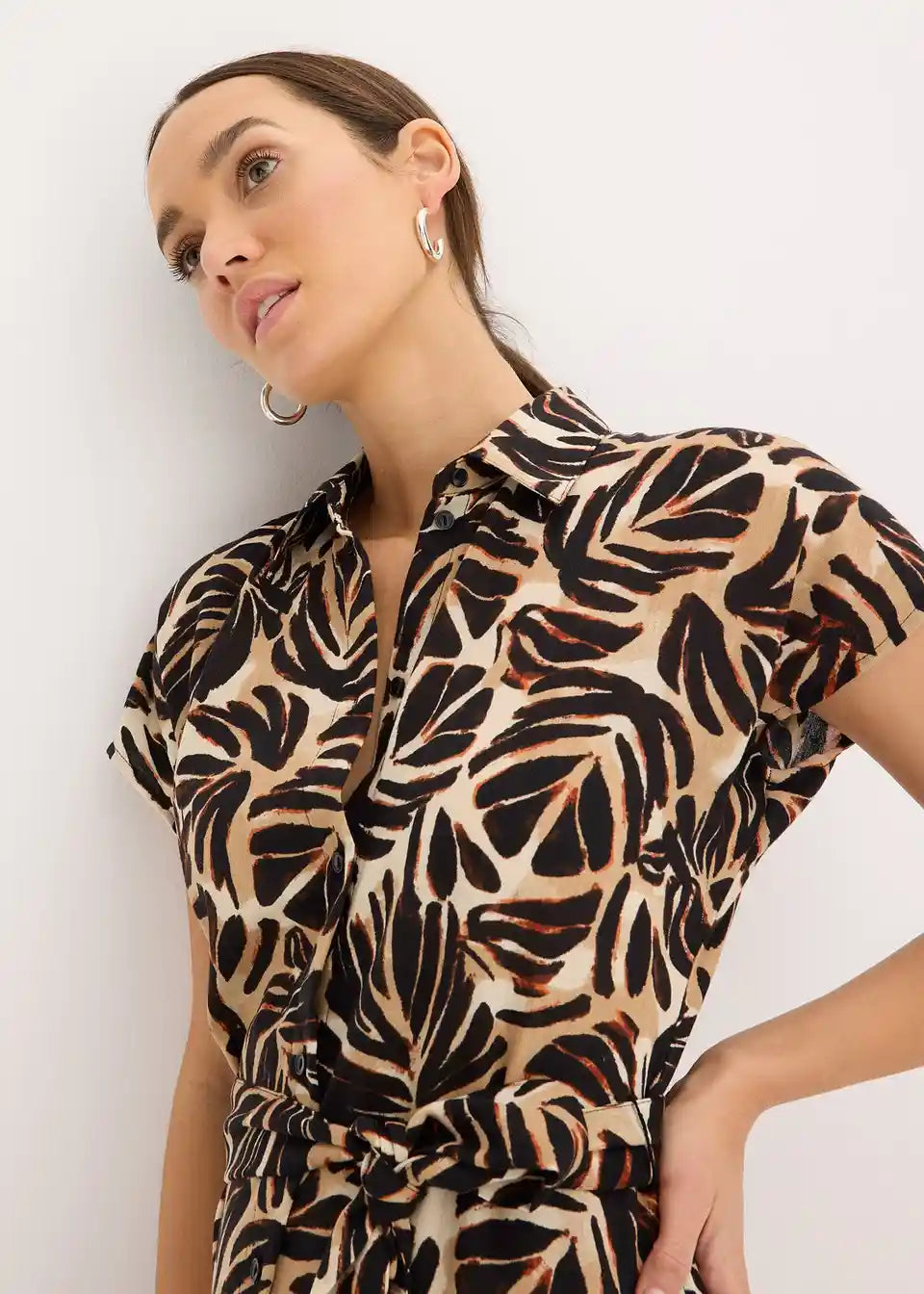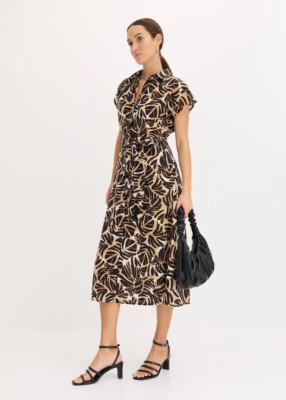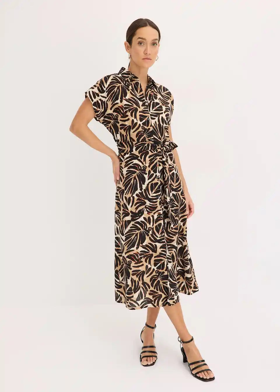 printana midihaljina s gumbima sprijeda i vezicom u struku