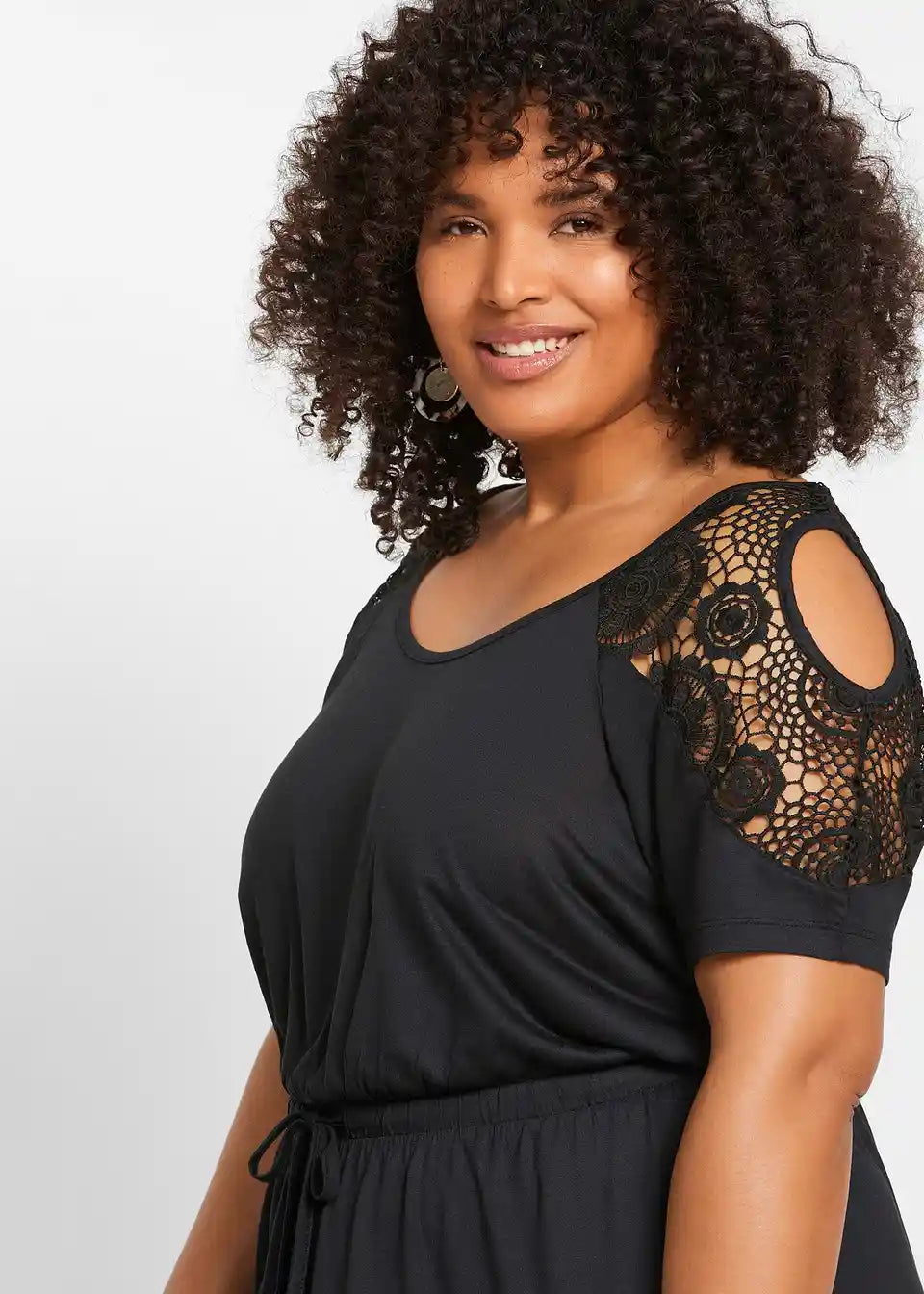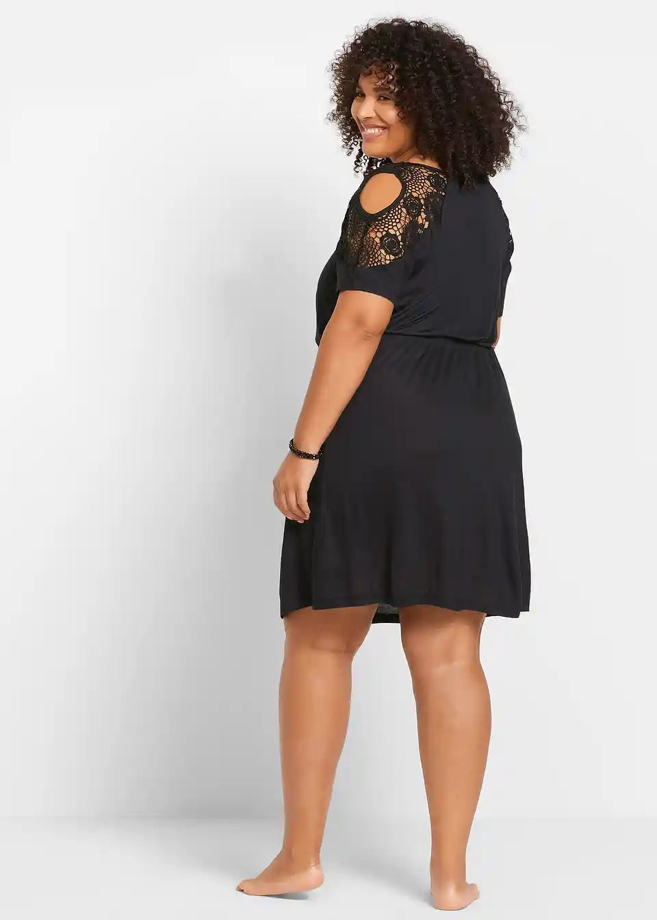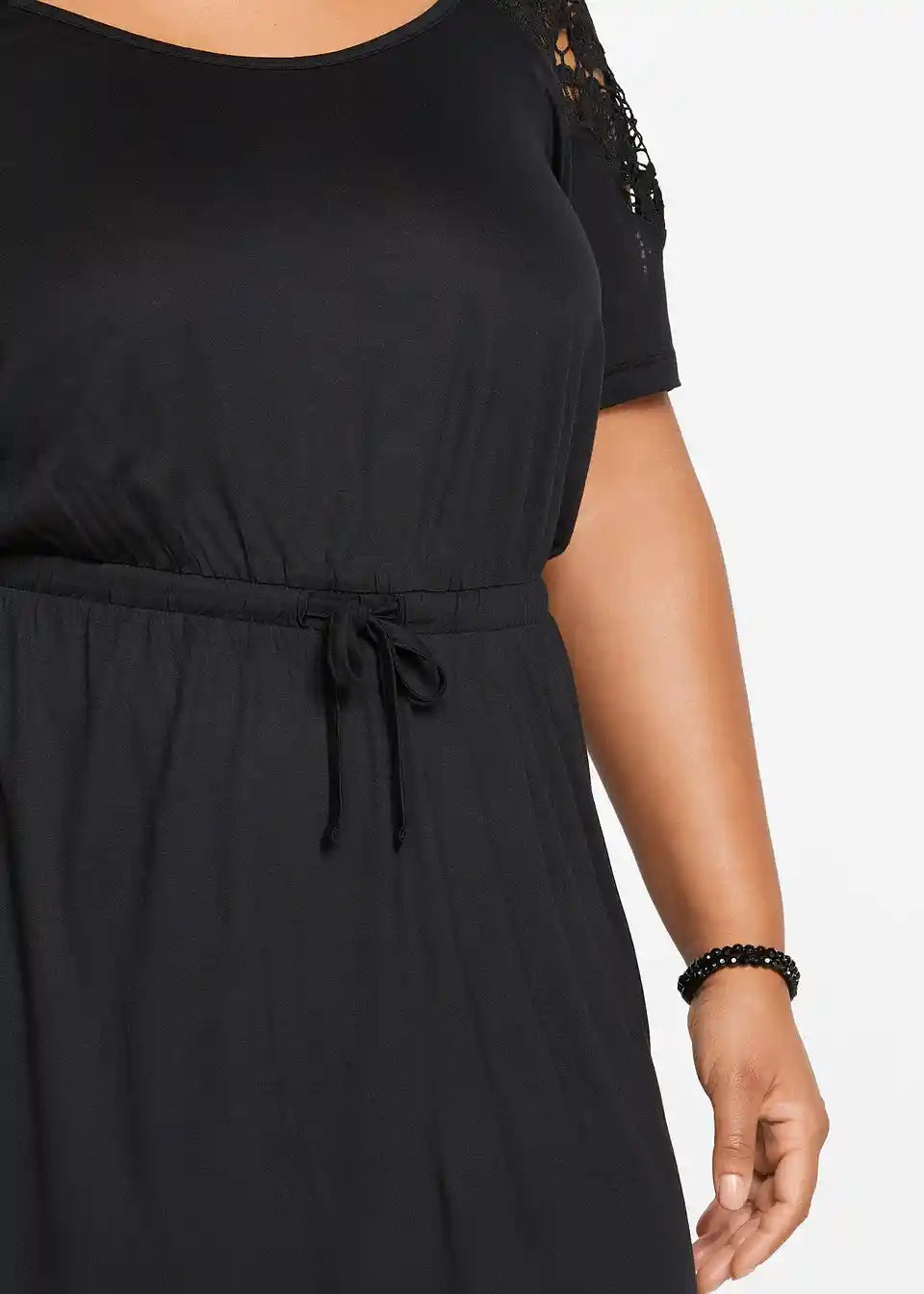 Lagano prozirna haljina za plažu s gumom i trakama za vezanje u struku.
