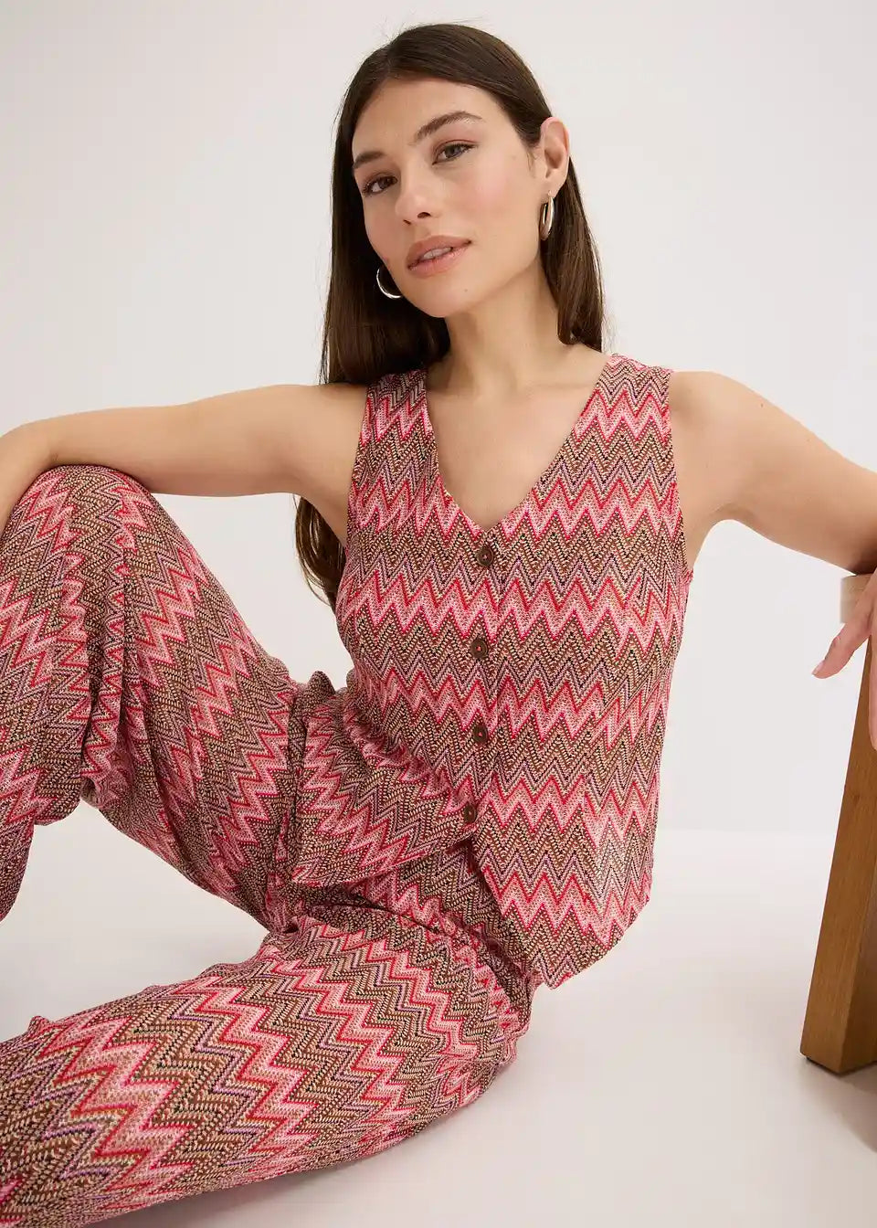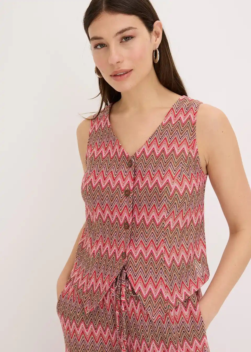 moderan prsluk od jerseya s kukičanim uzorkom i gumbima sprijeda