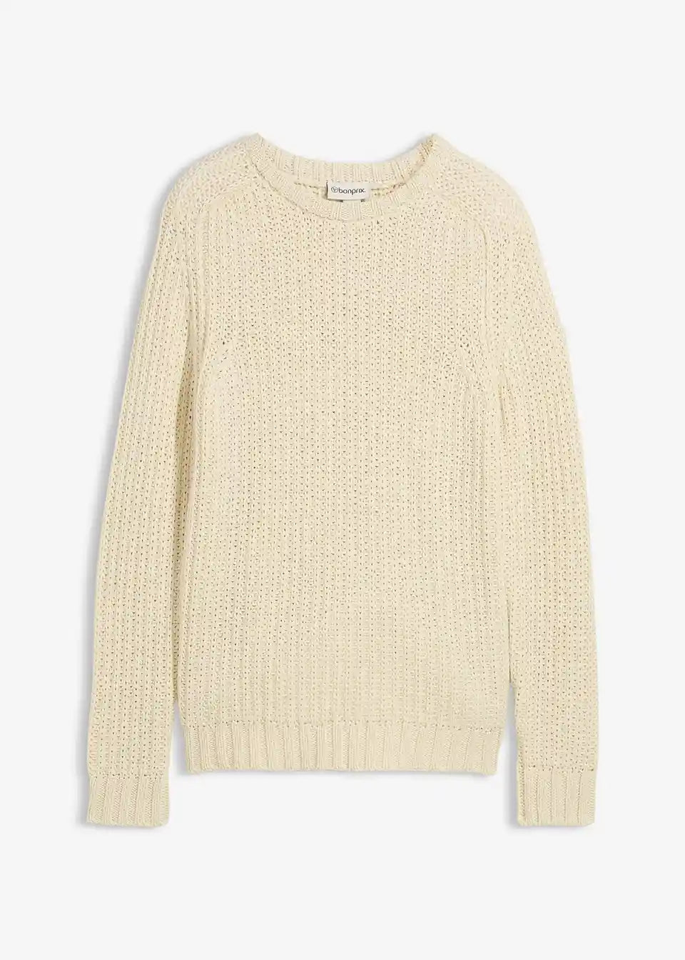 Trendi pulover od grubog pletiva s okruglim izrezom i rebrastim rubovima