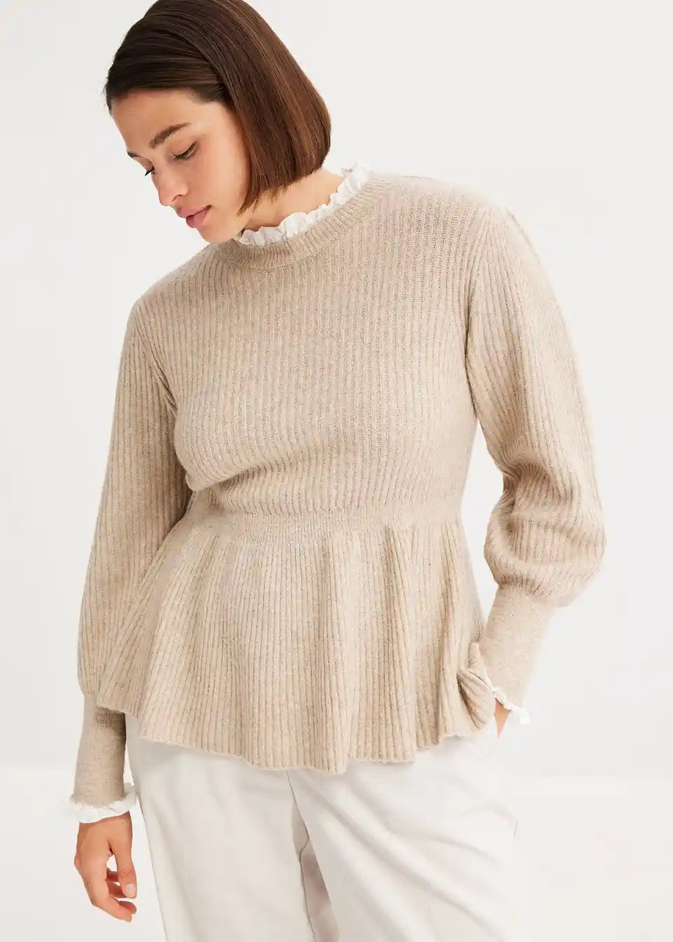 ženstveni pulover s bluznim umetkom