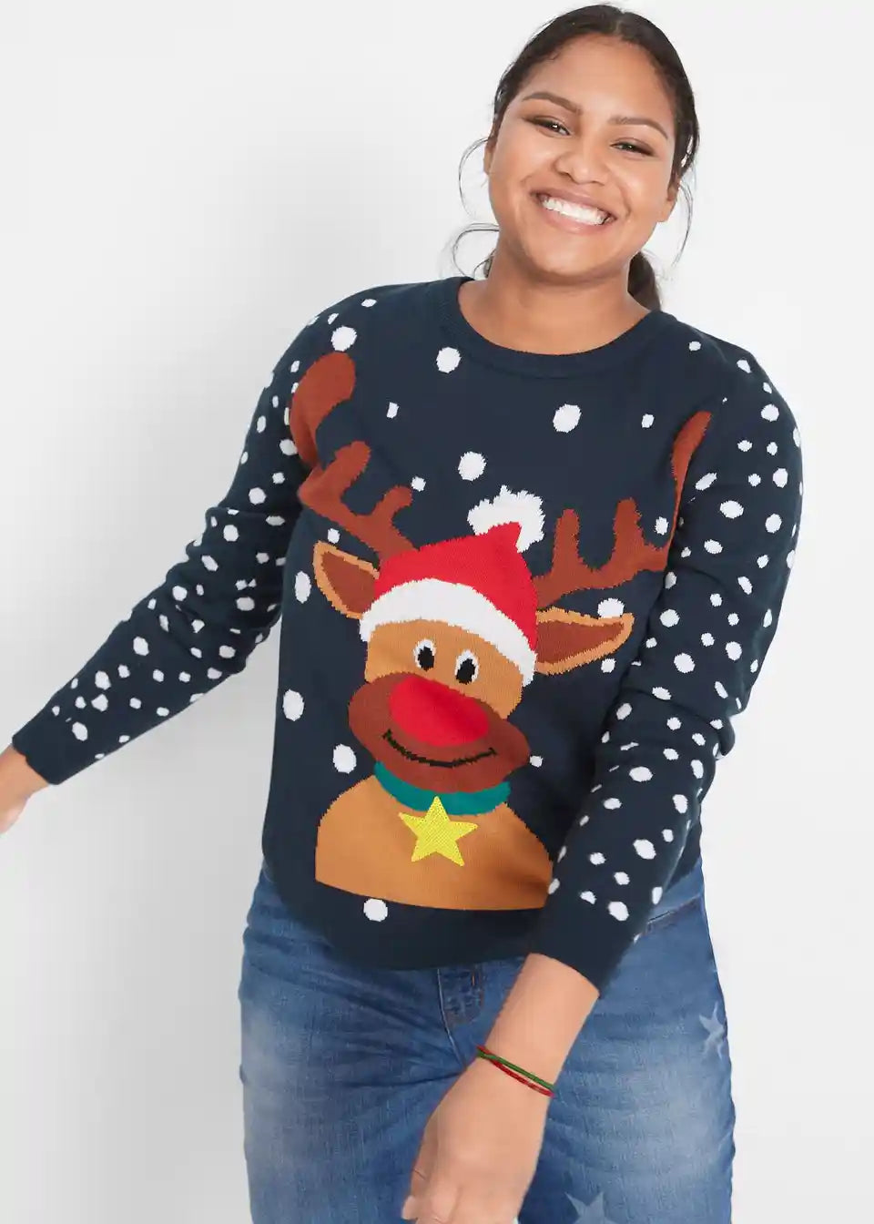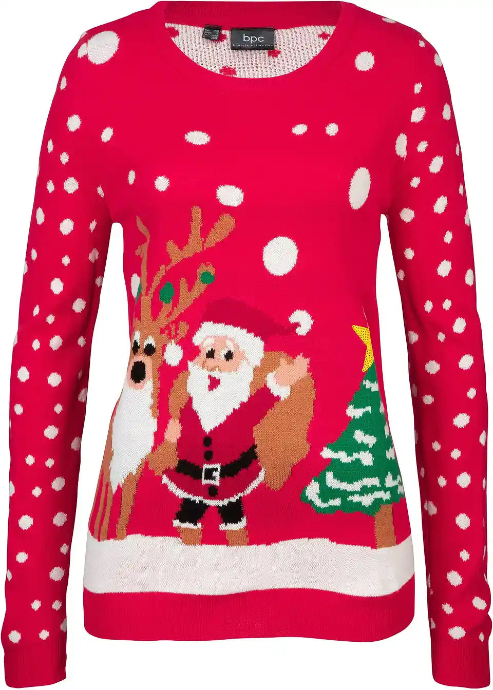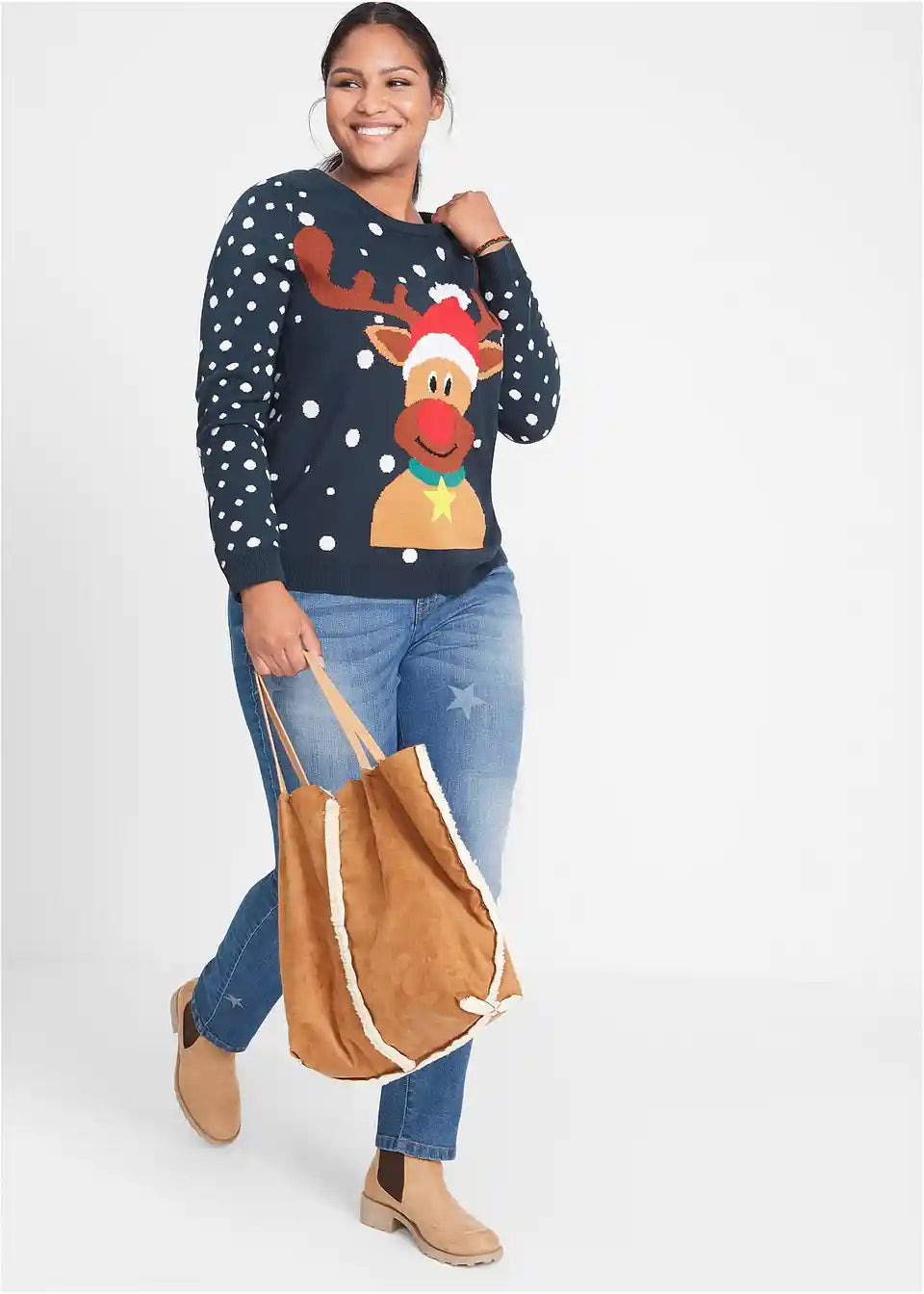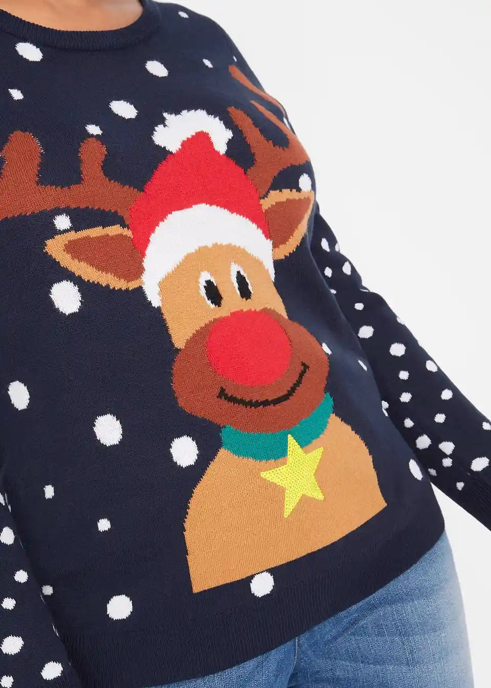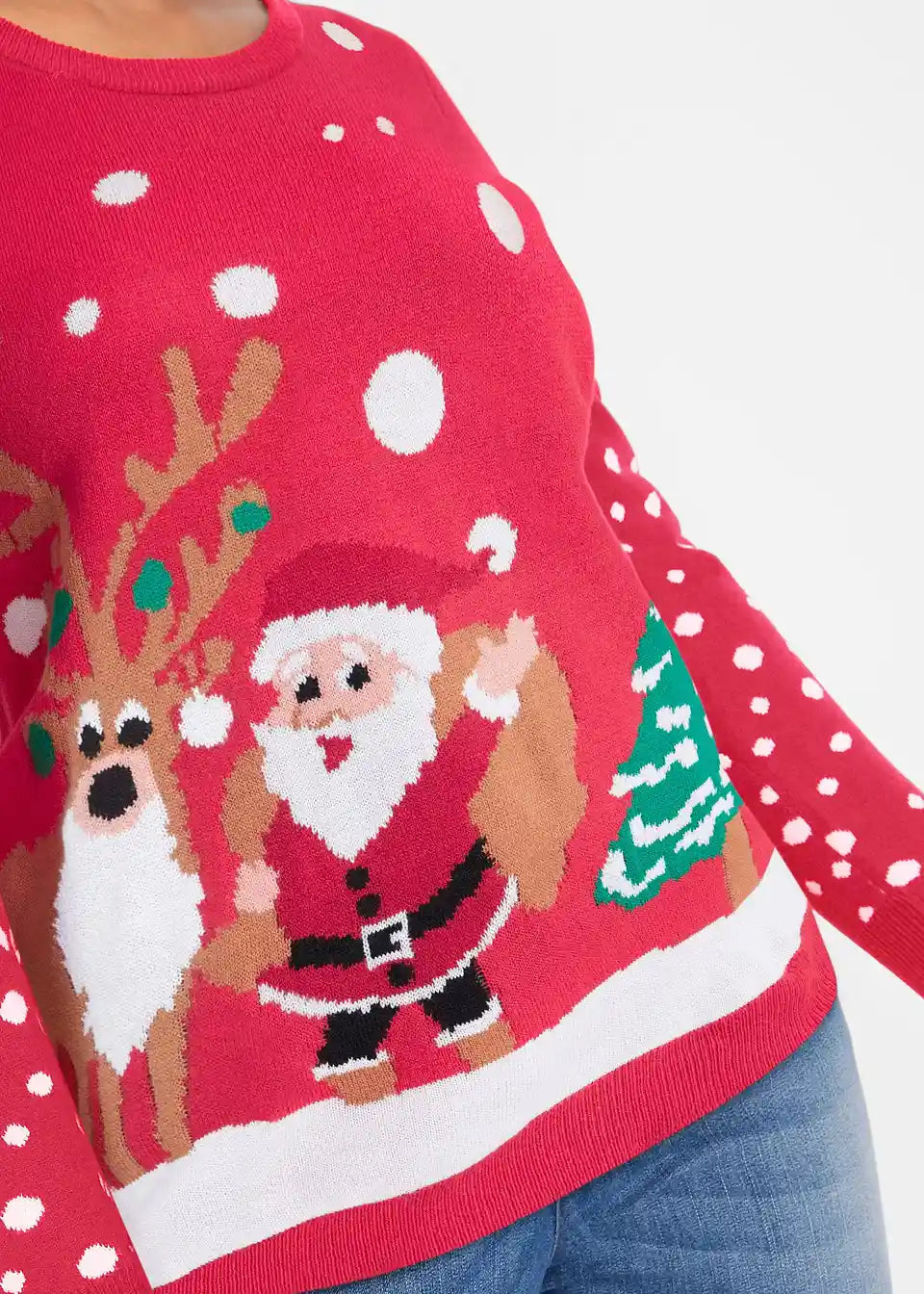 Pleteni pulover s Božićnim motivom i okruglim izrezom