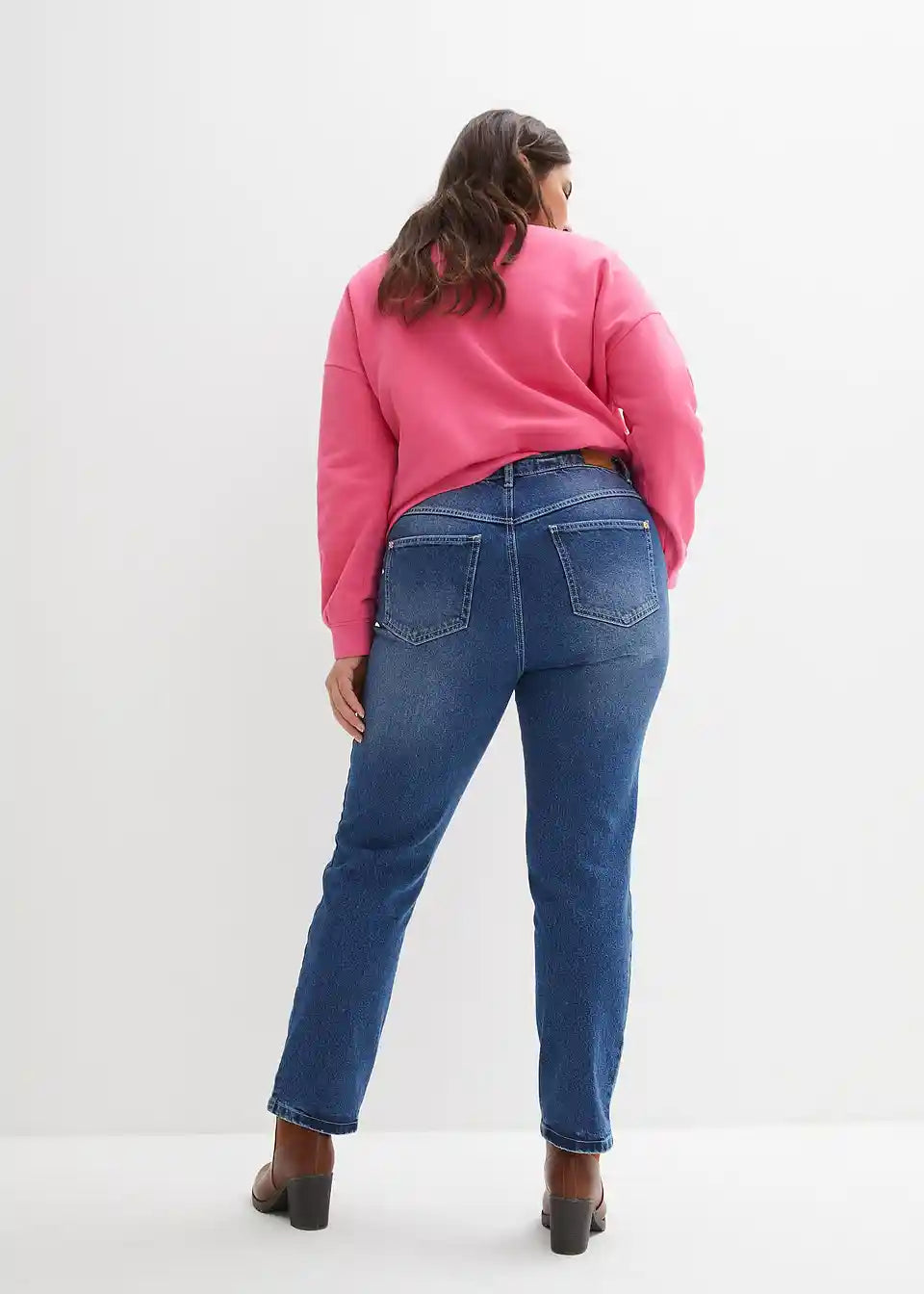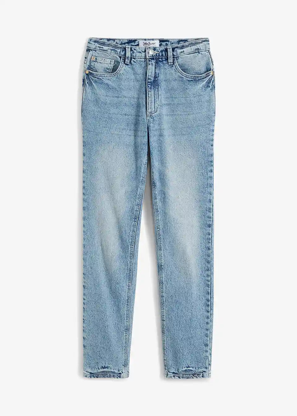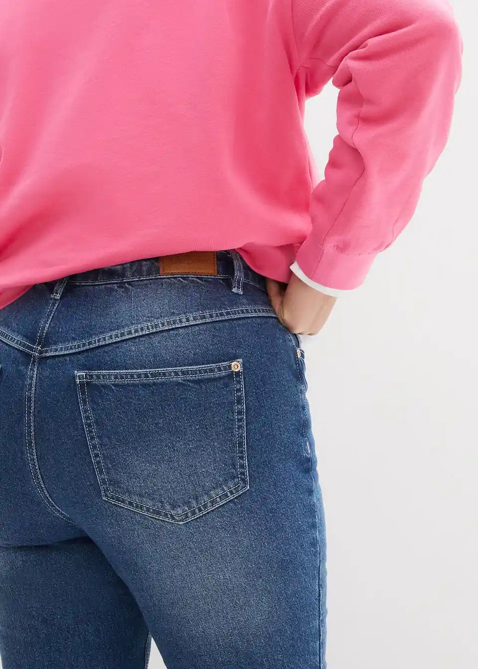 Ravne traperice s visokim strukom izrađene od čvrstog pamučnog trapera koji se u početku može činiti malo krutim, ali će čestim nošenjem postati mekše i opuštenije.