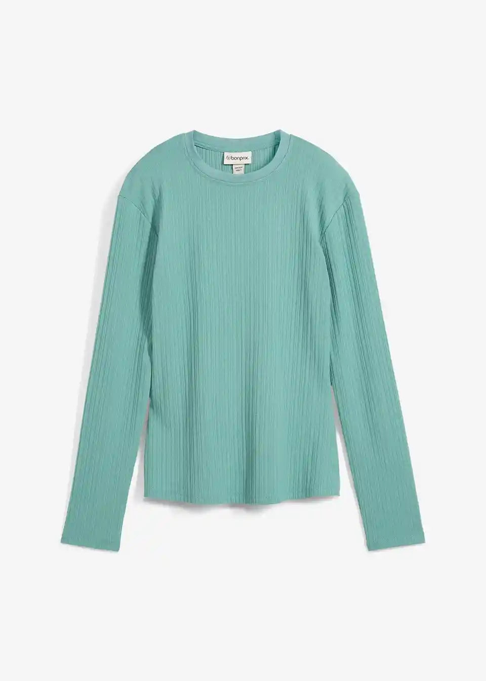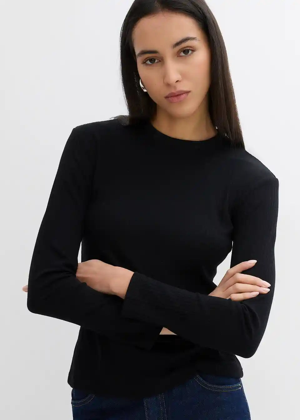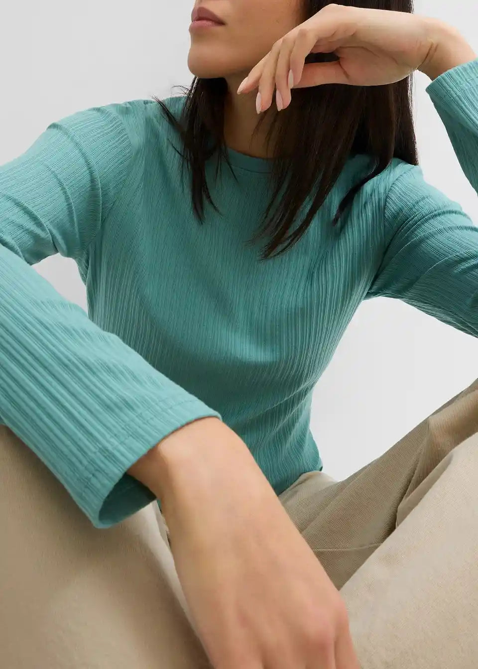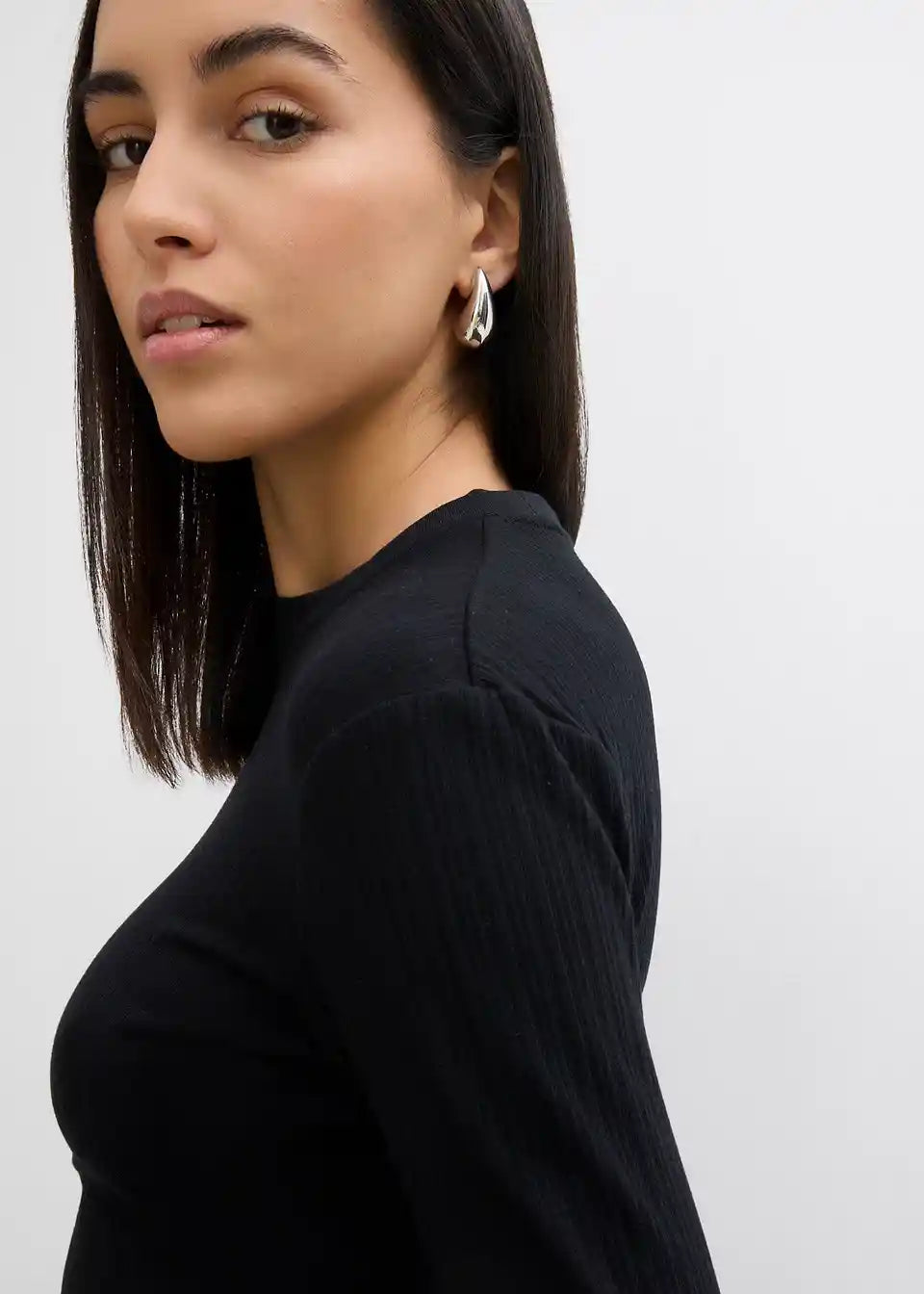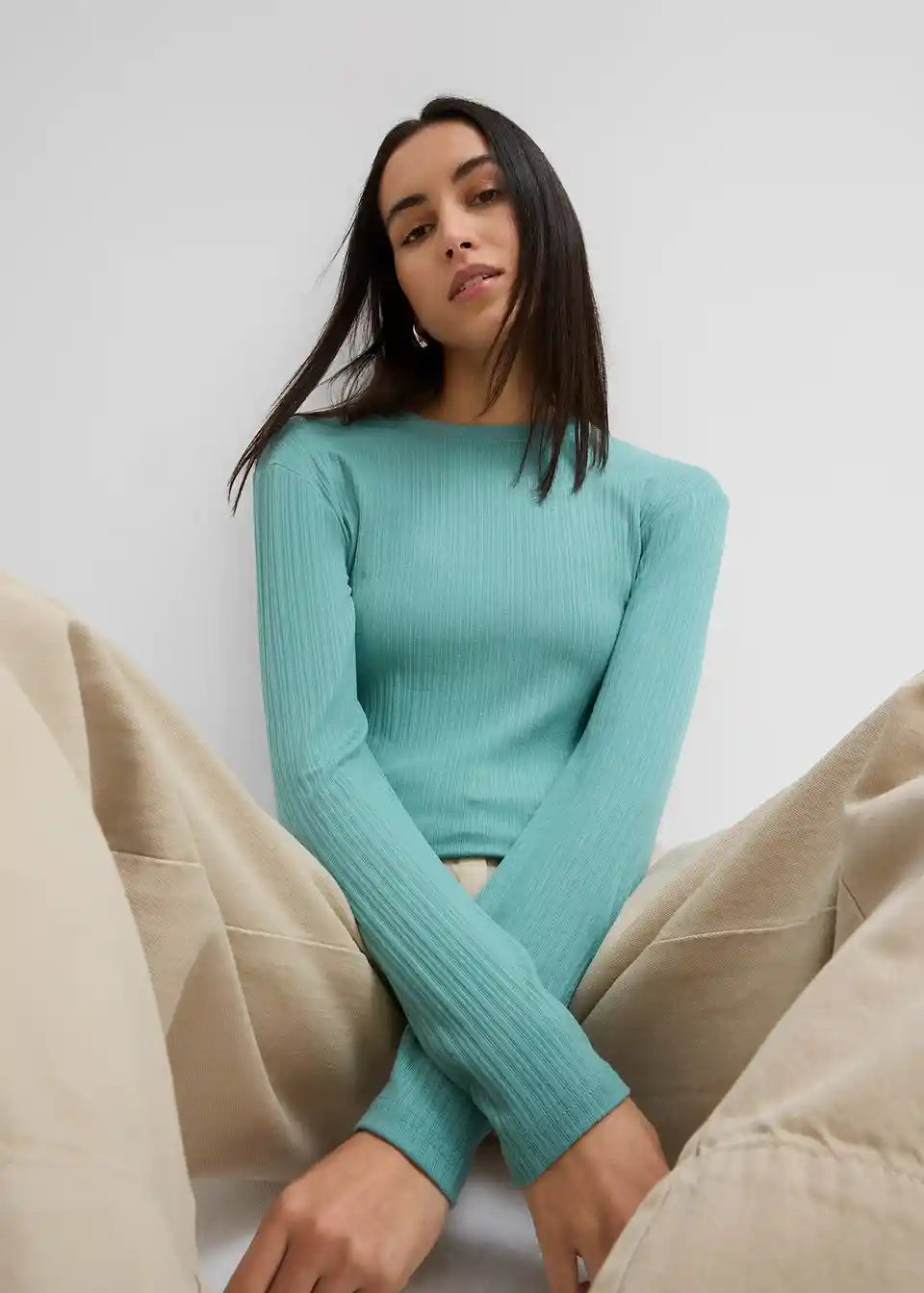 Rebrasta majica s dugim rukavima od materijala s udjelom viskoze