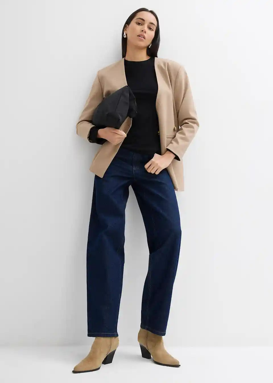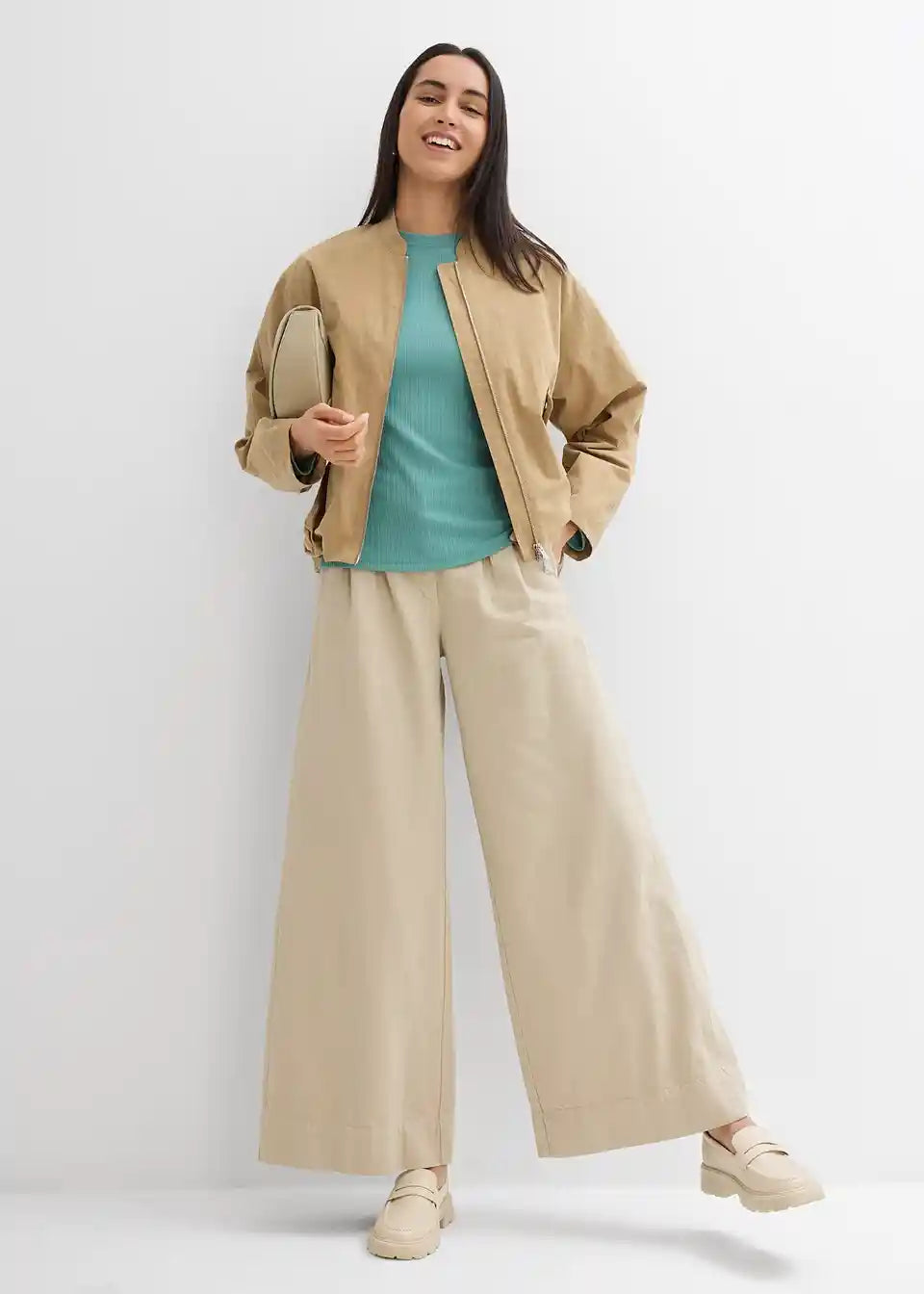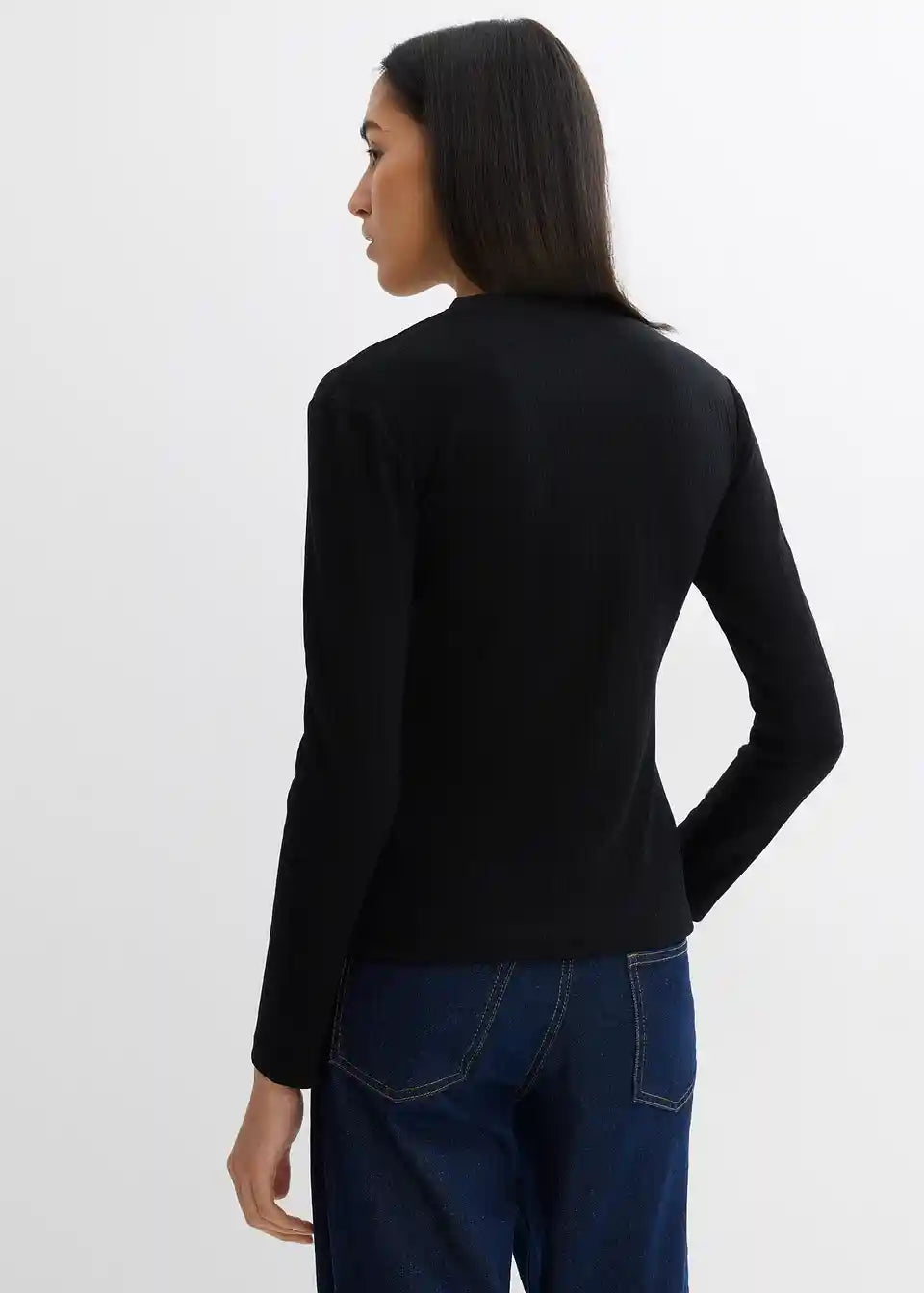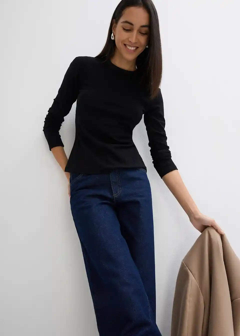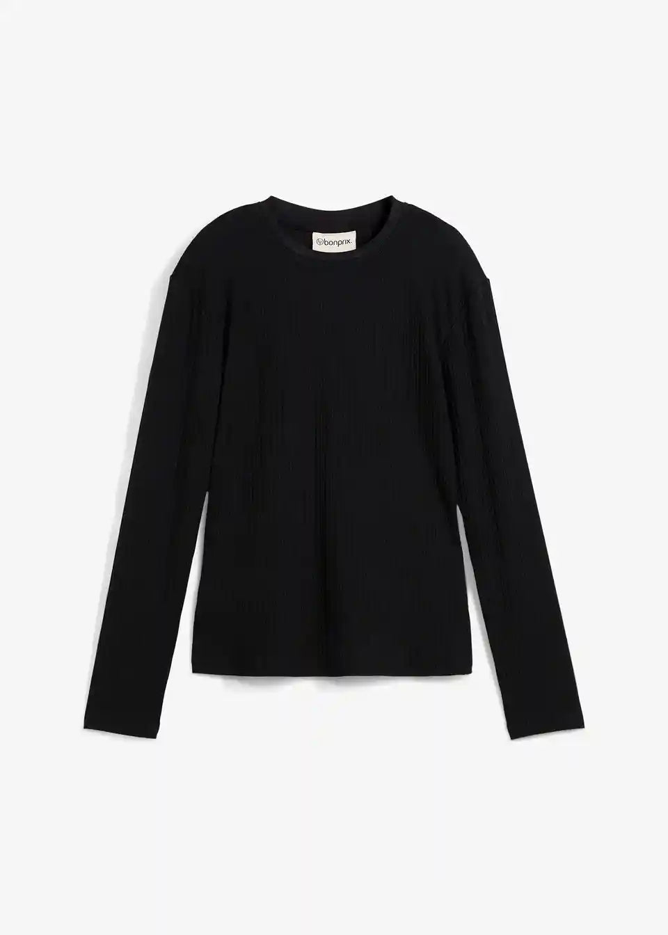 Rebrasta majica s dugim rukavima od materijala s udjelom viskoze