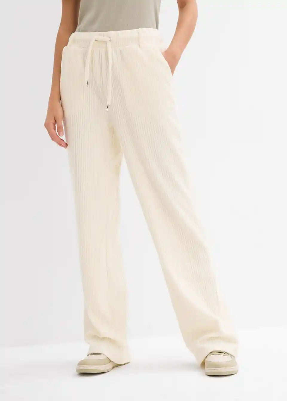 Ležerne rebraste hlače s vezicom i džepovima