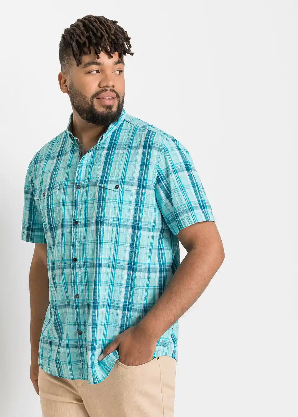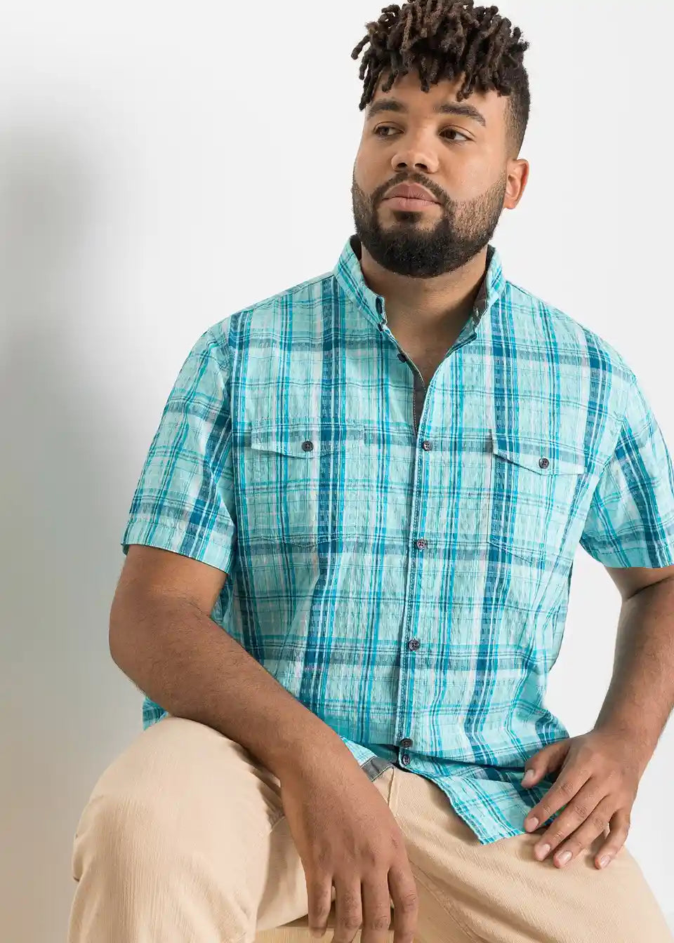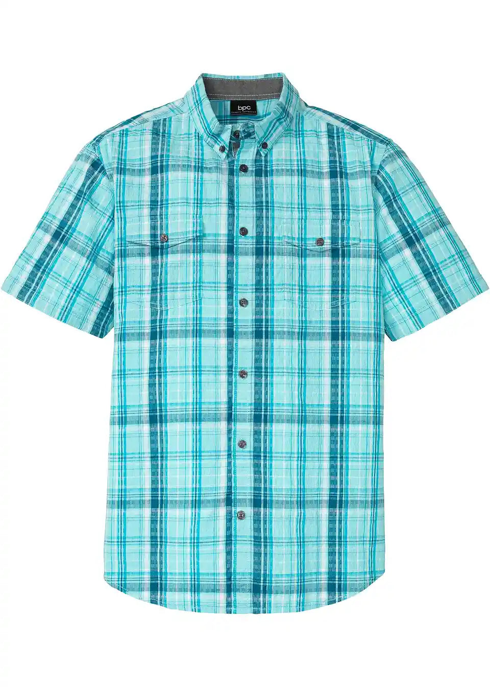 Ova muška Seersucker košulja s kockastim uzorkom Regular Fit kroja savršeno pristaje uz ležerne odjevne kombinacije. Kratka košulja marke bpc ističe se upečatljivim kariranim uzorkom i posebnom Seersucker strukturom. Sprijeda je košulja ukrašena Button Down ovratnikom i dvama džepovima na prsima s preklopom i dugmetom. Kontrastni elementi na unutarnjoj traci gumba i unutarnjem ovratniku upotpunjuju dizajn ove svakodnevne košulje.
