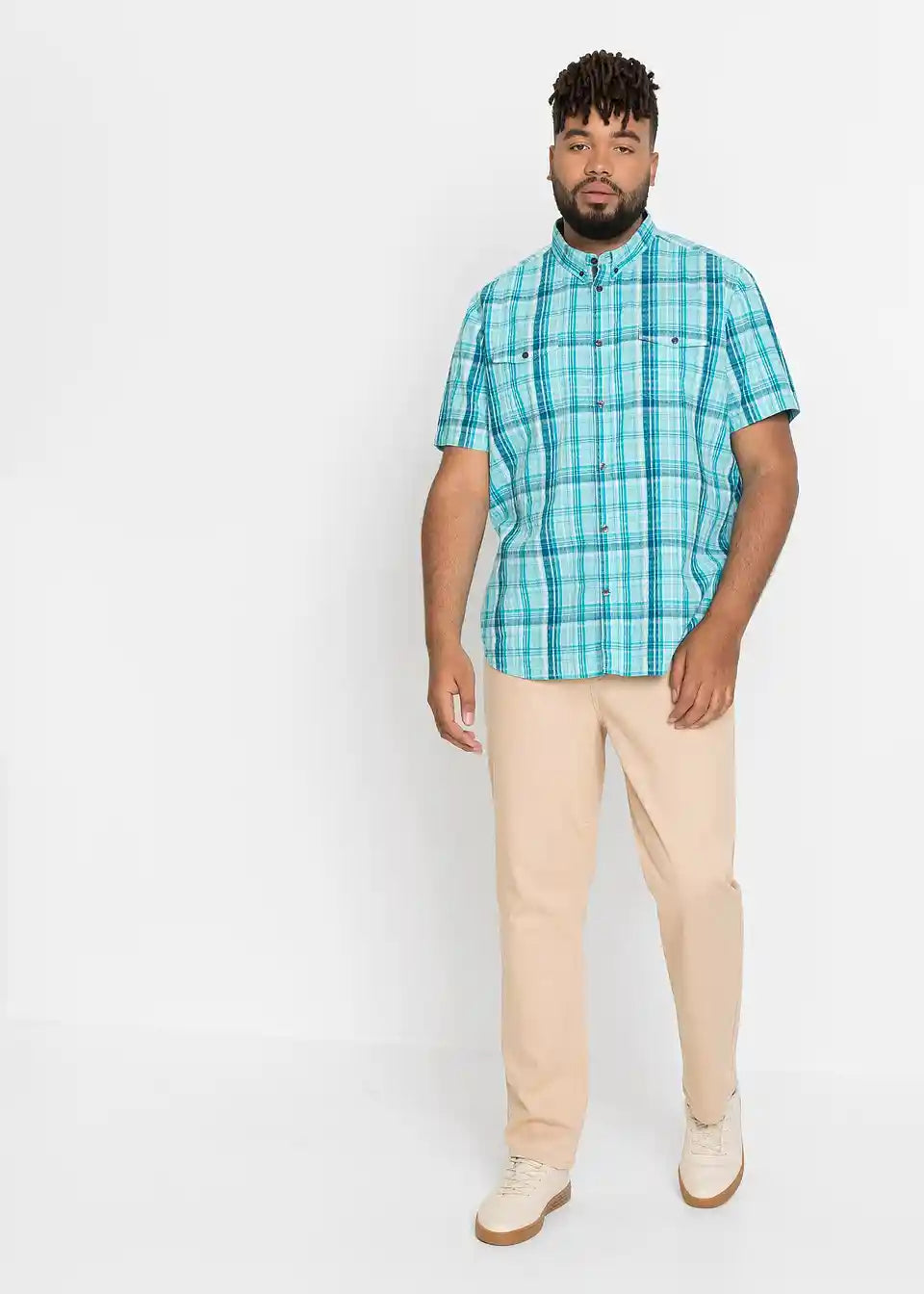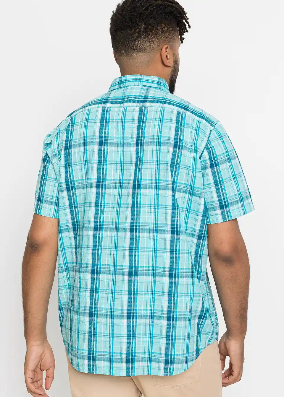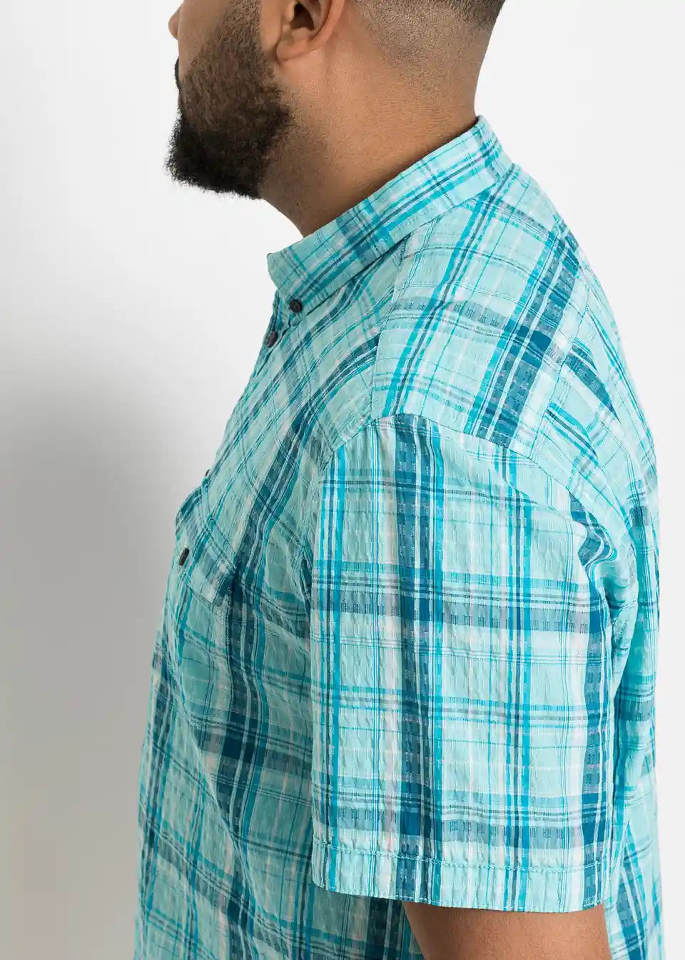 Ova muška Seersucker košulja s kockastim uzorkom Regular Fit kroja savršeno pristaje uz ležerne odjevne kombinacije. Kratka košulja marke bpc ističe se upečatljivim kariranim uzorkom i posebnom Seersucker strukturom. Sprijeda je košulja ukrašena Button Down ovratnikom i dvama džepovima na prsima s preklopom i dugmetom. Kontrastni elementi na unutarnjoj traci gumba i unutarnjem ovratniku upotpunjuju dizajn ove svakodnevne košulje.