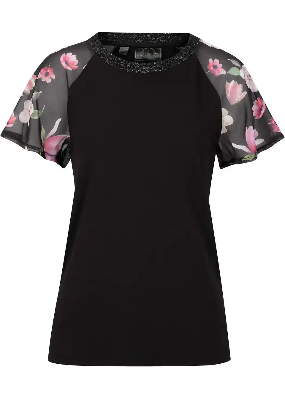 Ova lijepa majica s posebnim Chiffon rukavima šarmantno se slaže s lijepim trapericama iz bpc selection premium kolekcije te ženstvenim cipelama i sjajnom torbom.
