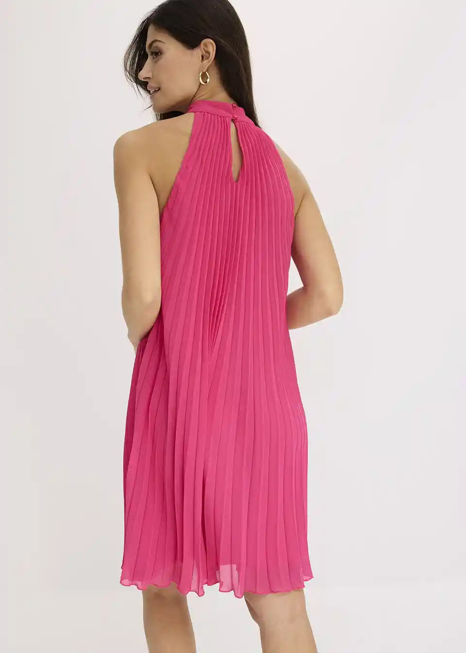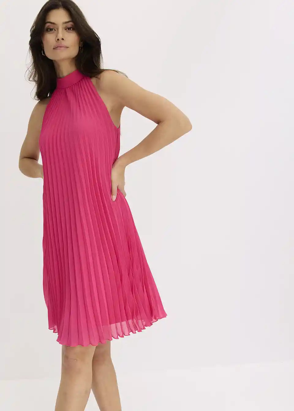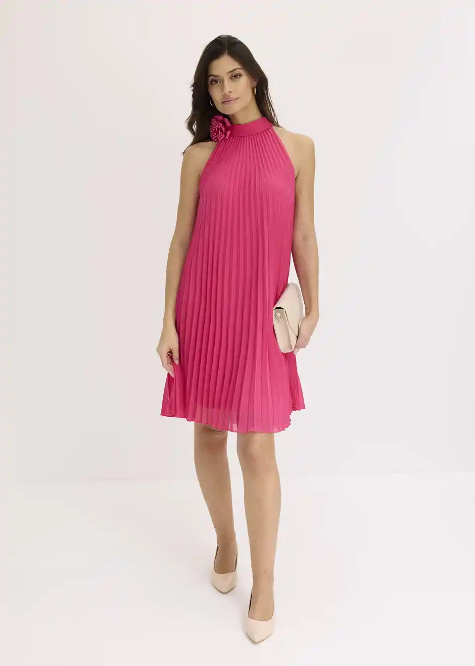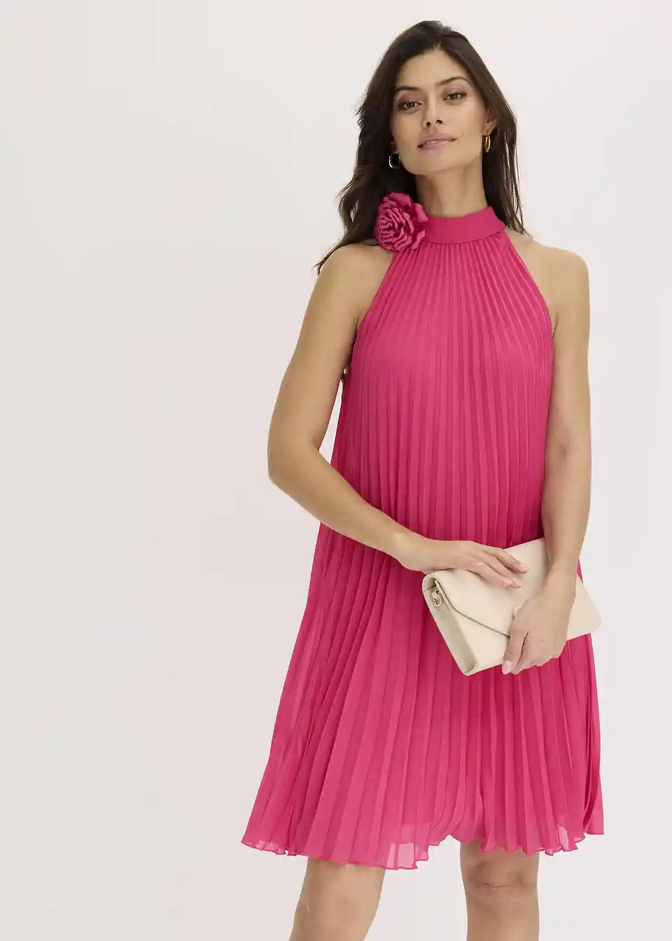 Moderno i ženstveno: plisirana mini haljina sa stajaćim ovratnikom i cvjetnom aplikacijom