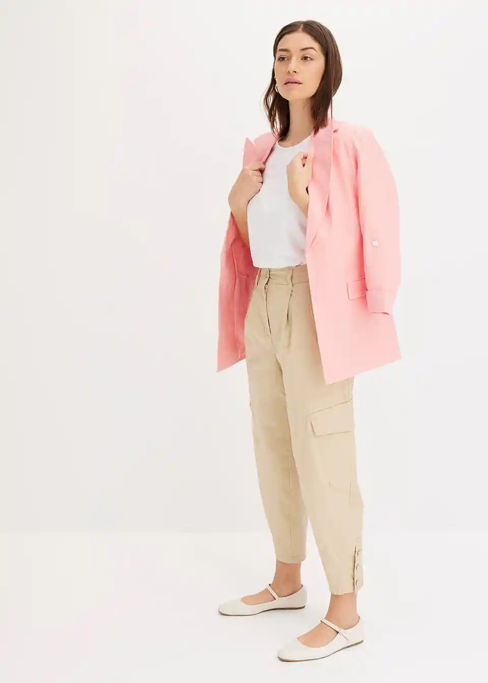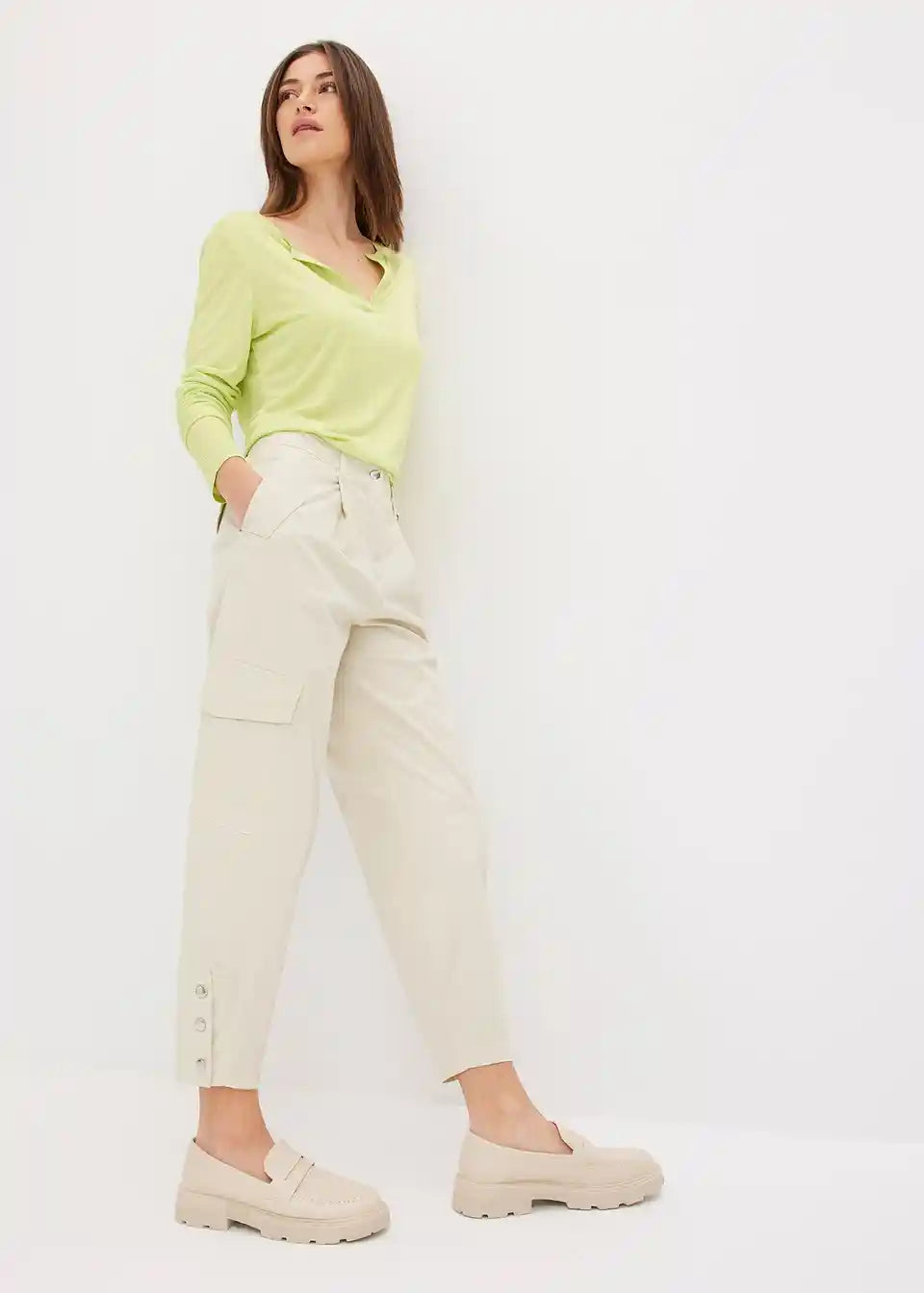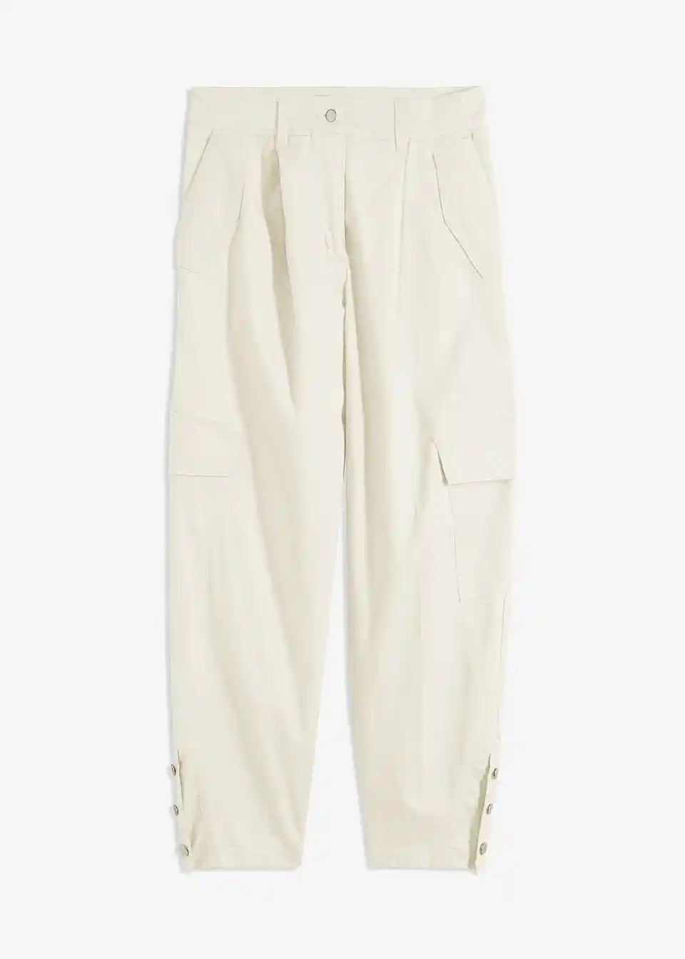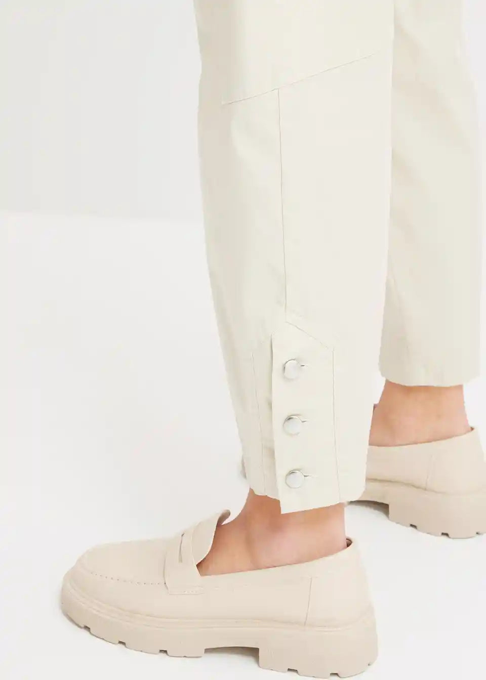 Široke hlače opuštenog kroja s modernim detaljem gumba na rubu nogavica
