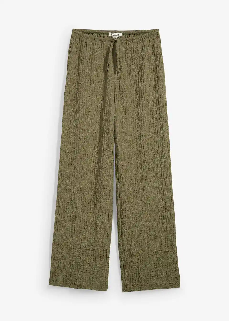 Ležerne Wide Leg hlače od strukturiranog krepa s detaljem za vezanje