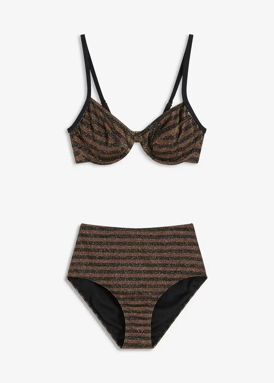 Sjajni bikini s košaricama s žicom s prugastim dizajnom
