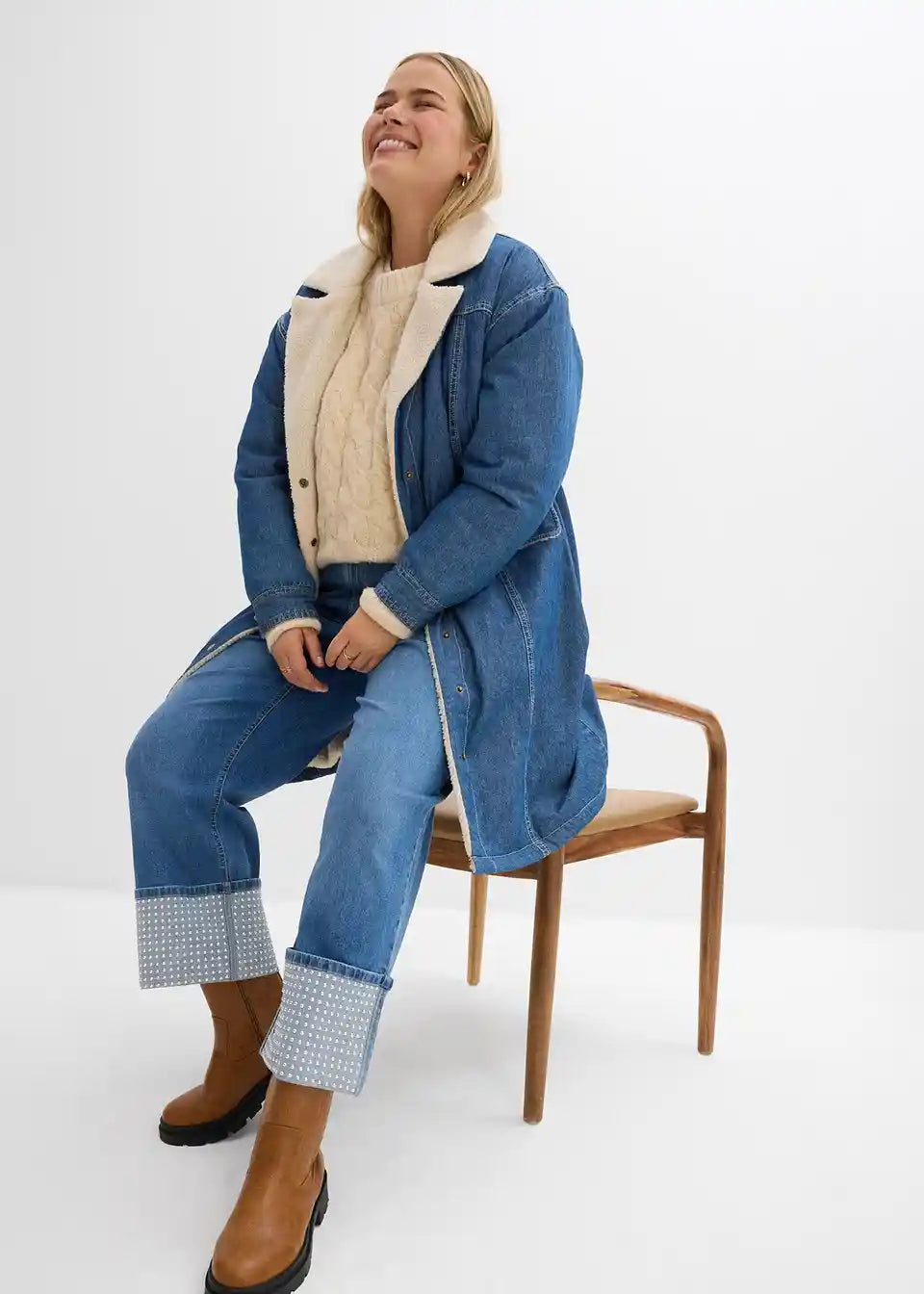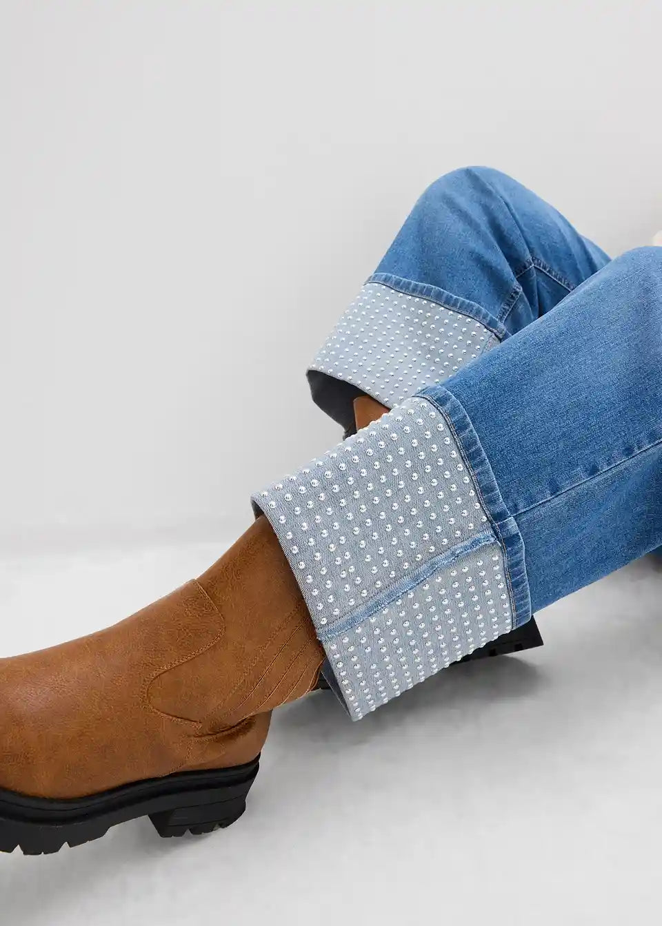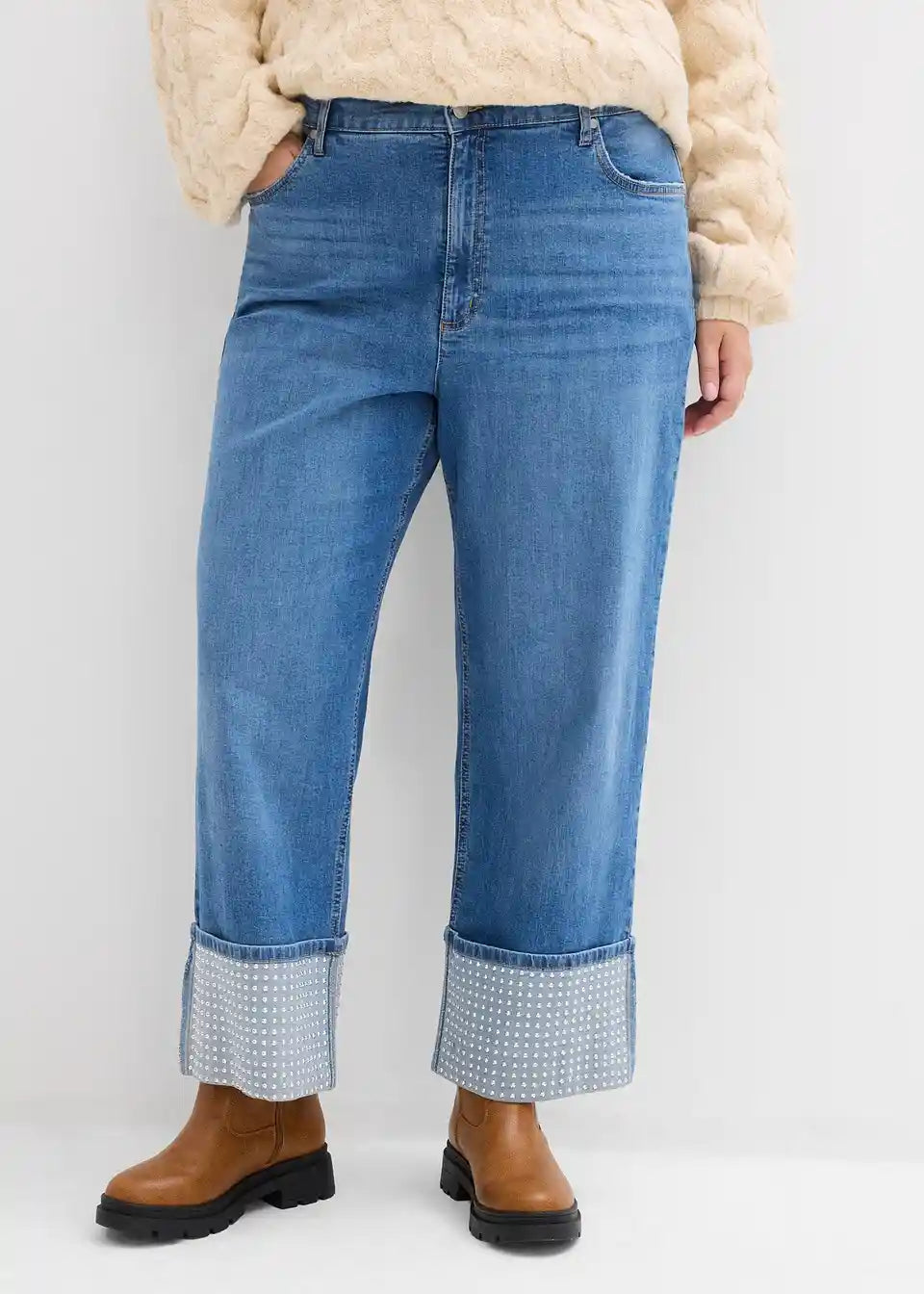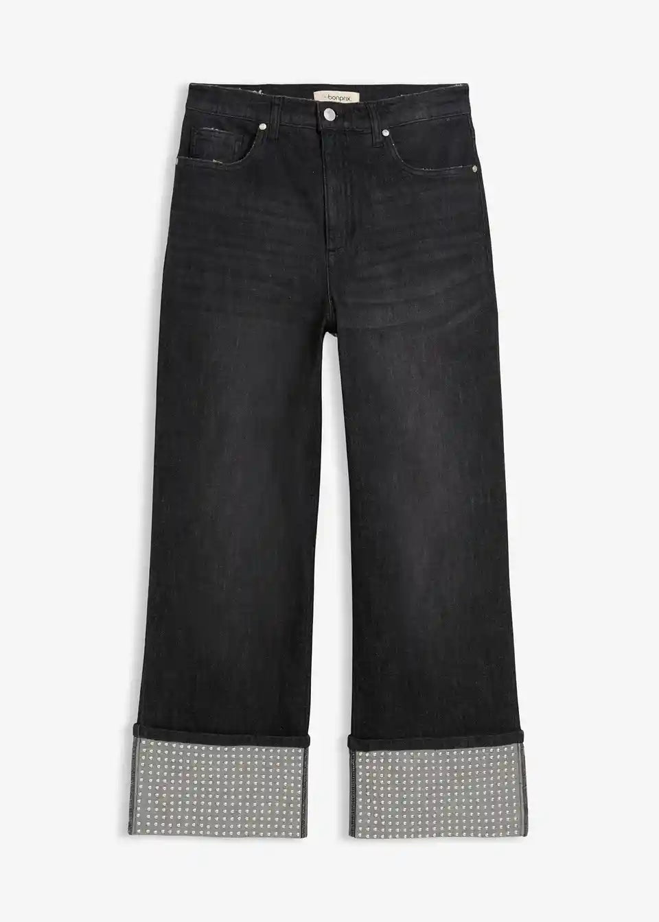 Straight-Jeans High Waist s ukrasom od kristala na Turn Up-u