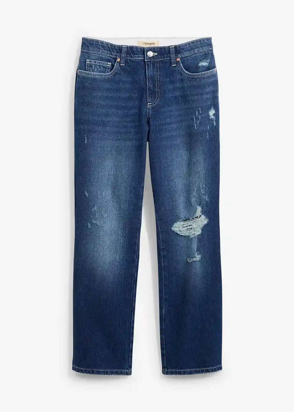 Klasične 5-Pocket traperice izrađene od čvrstog pamučnog trapera, koji je na početku nešto krut, ali nošenjem postaje mekši i udobniji. Srednja visina struka s elastičnim udobnim pojasom i skraćenom duljinom. Unutarnja dužina nogavice u veličini 42 cca 73,5 cm, perivo u perilici rublja