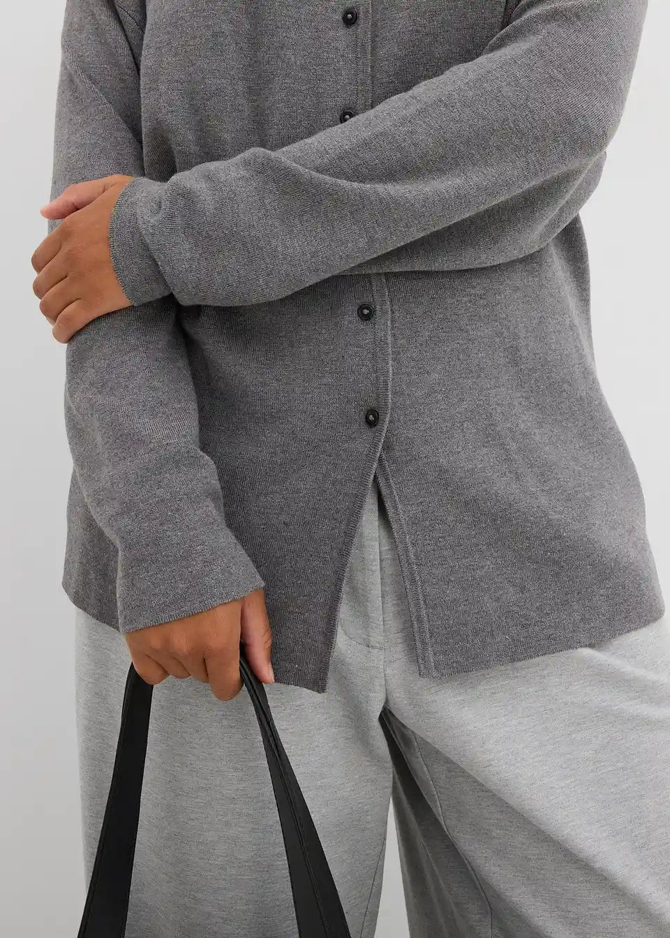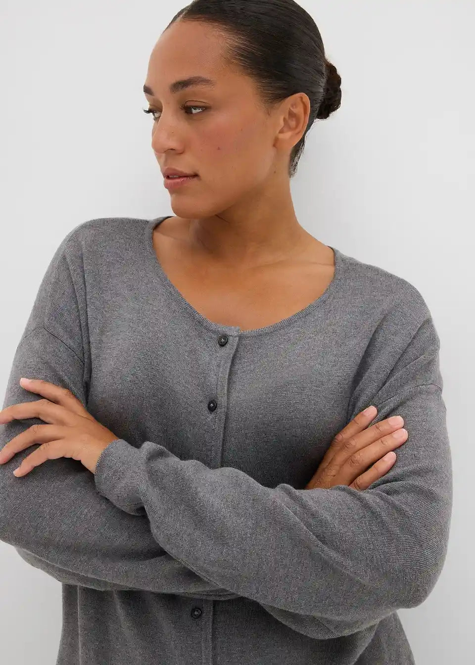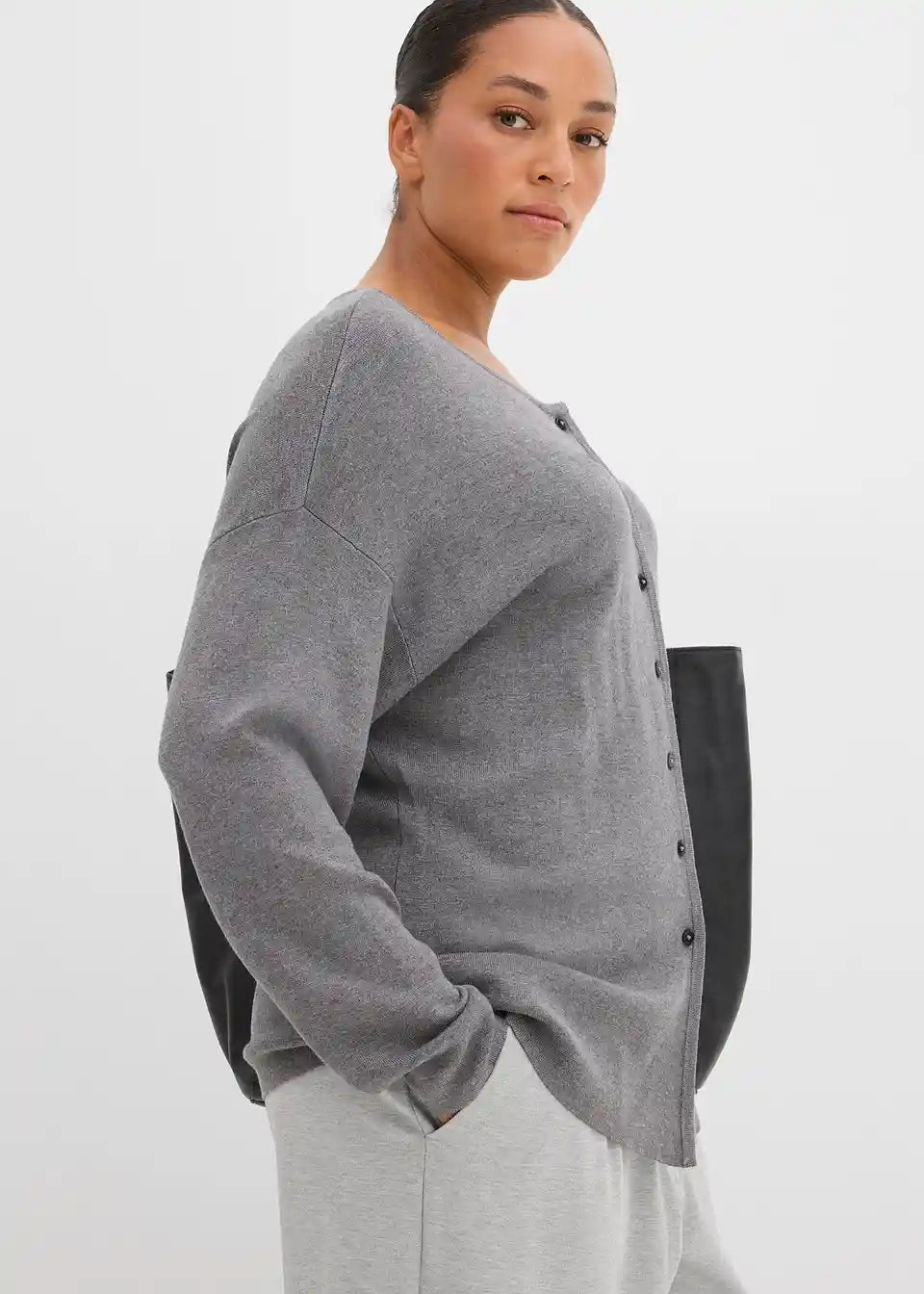 Strukirani kardigan s dugim rukavima i bojom usklađenom prednjom dugmadi