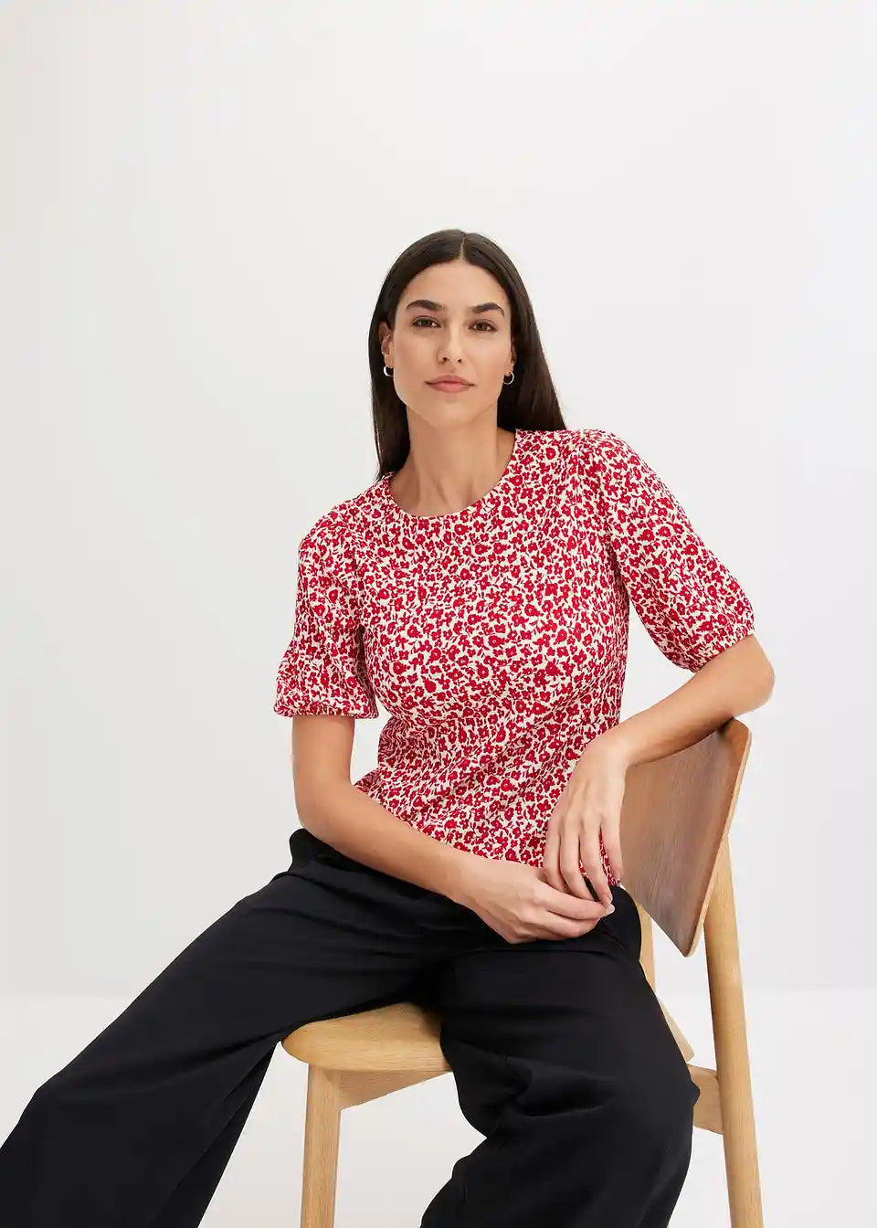 Majica sa strukturom i balon rukavima