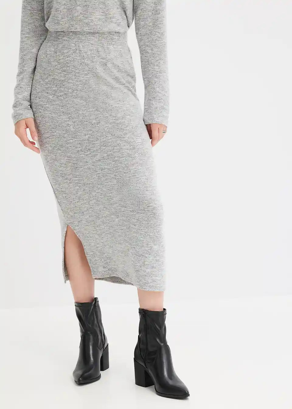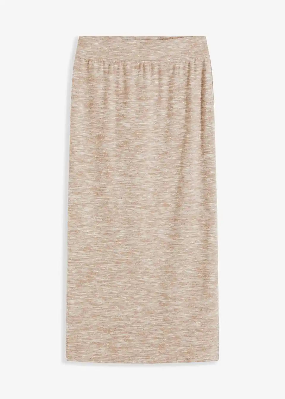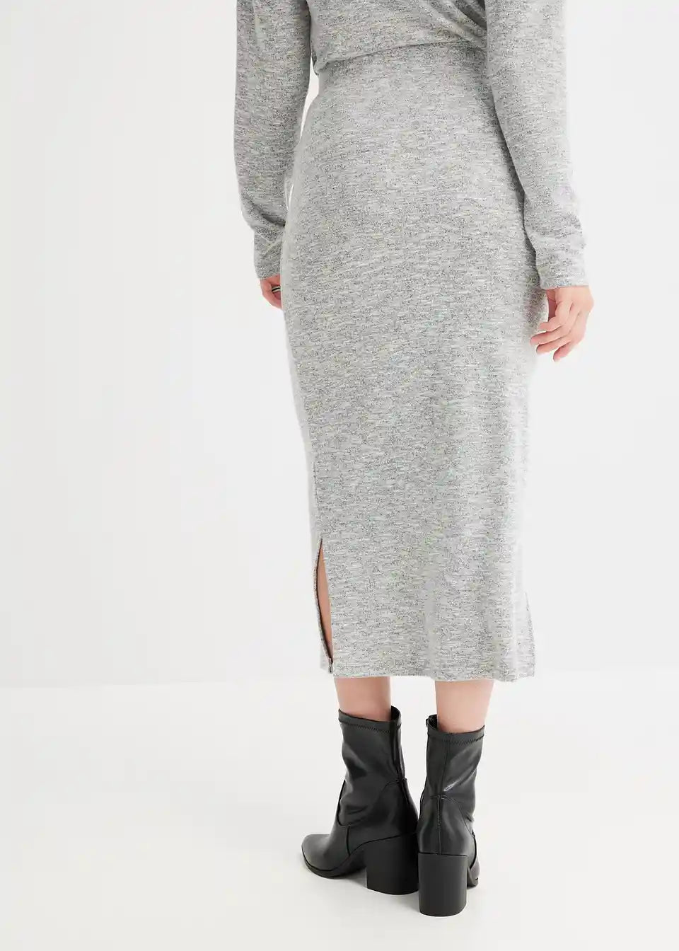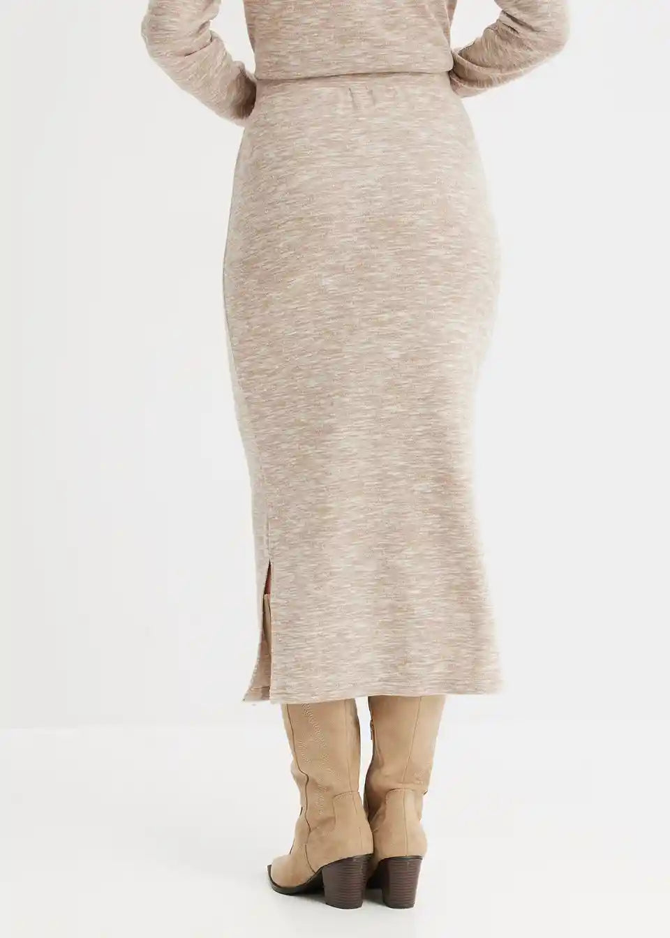 Moderna midi suknja u pletivo izgledu s prorezom