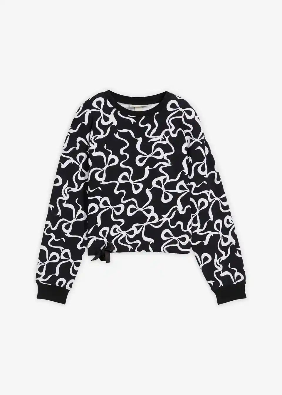 Ovaj trendi sweatshirt od čiste organske pamuke savršen je za ležeran izgled! S okruglim izrezom i dugim, ušivenim rukavima pruža udobno pristajanje i završava u kratkoj duljini. Ravan rub ima tunel s fiksiranom crnom satenskom vrpcom, koja se bočno može zavezati u mašnu. Izrada osigurava da je vrpca sigurna i prikladna za djecu. Idealan za svaki dan ili posebne prigode – samo odjenuti i osjećati se dobro!