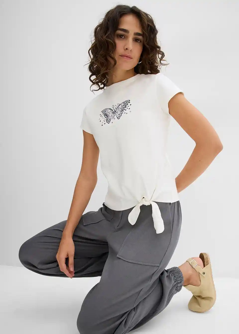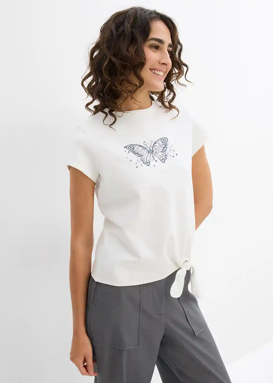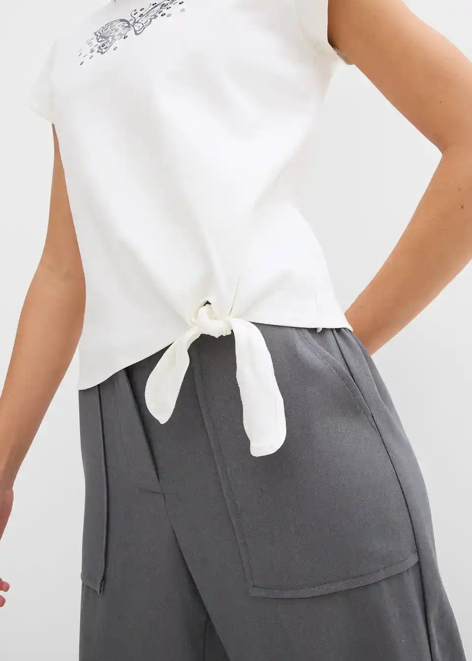 Kratki T-Shirt od čistog pamuka s detaljem čvora i printom