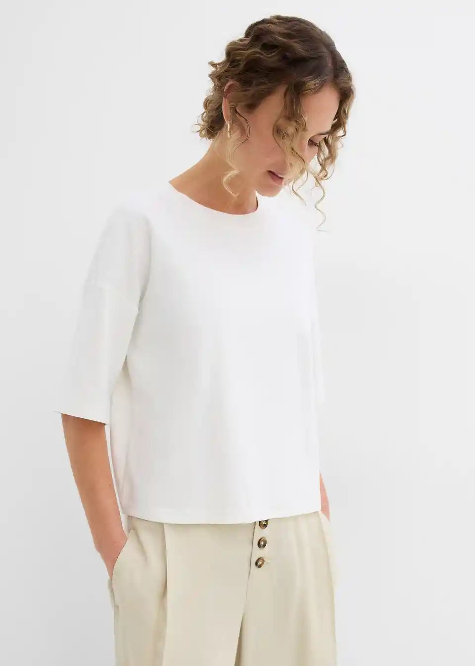 Ležerno krojeni T-Shirt okruglog izreza s tročetvrt rukavima od organskog pamuka