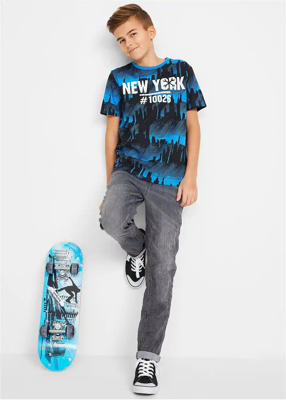 Ležerna T-Shirt majica marke bpc savršeno se uklapa u sportske kombinacije za školu i slobodno vrijeme. Udoban kroj s okruglim izrezom i jednostavan za održavanje pamučni materijal čine ovu dječju majicu dobrim izborom za razne prilike. U pakiranju dolaze dvije T-Shirt majice, od kojih je jedna s printom, a druga jednobojna.