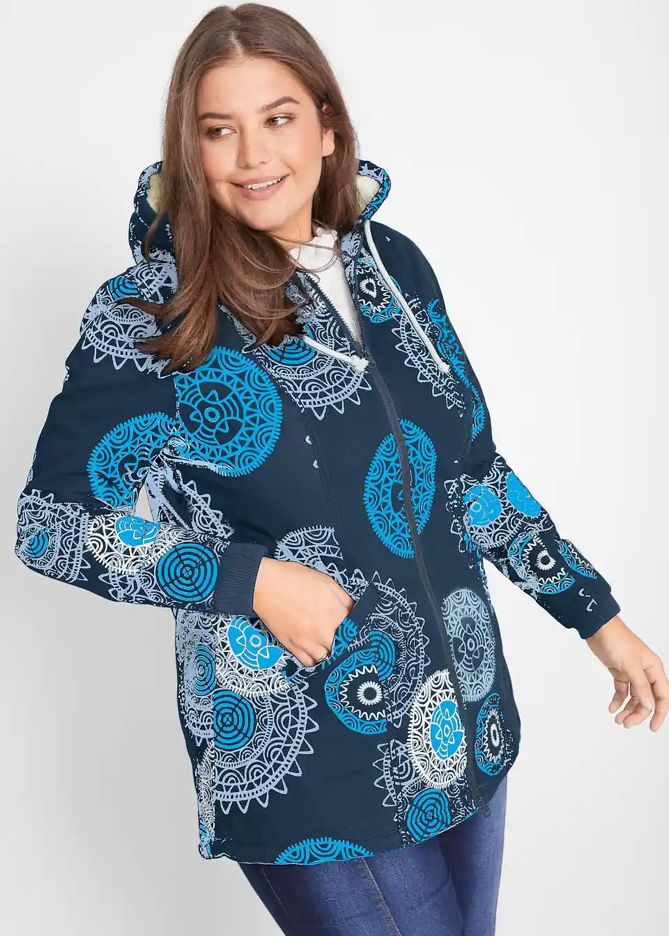Pamučna parka s kapuljačom i uzorkom