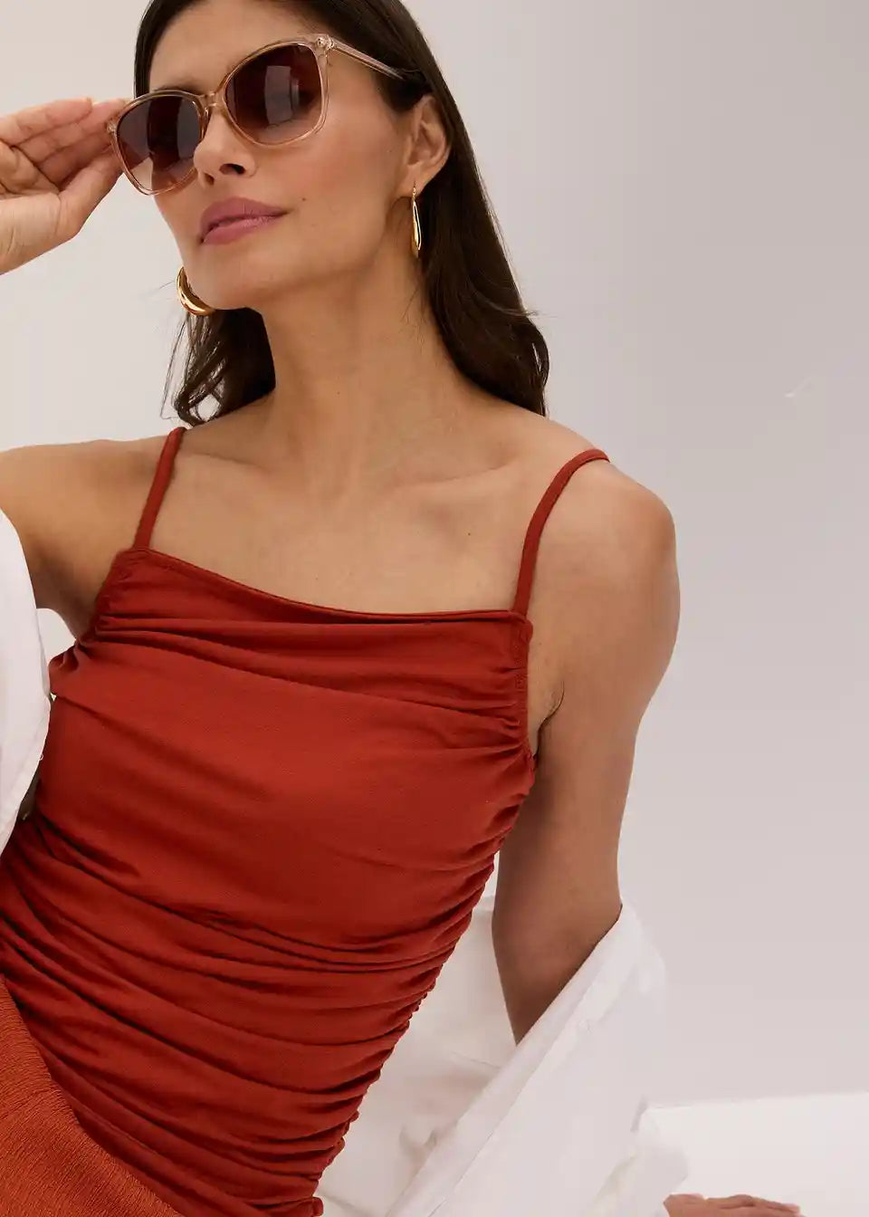 Majica bez rukava s tankim naramenicama i naborima